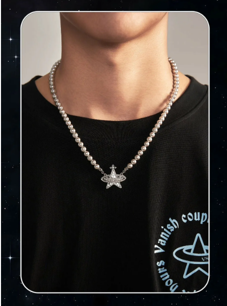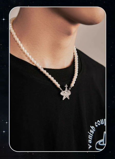 項鍊採用了一整串珍珠的形式作為鏈條,
