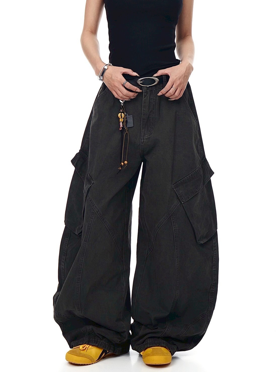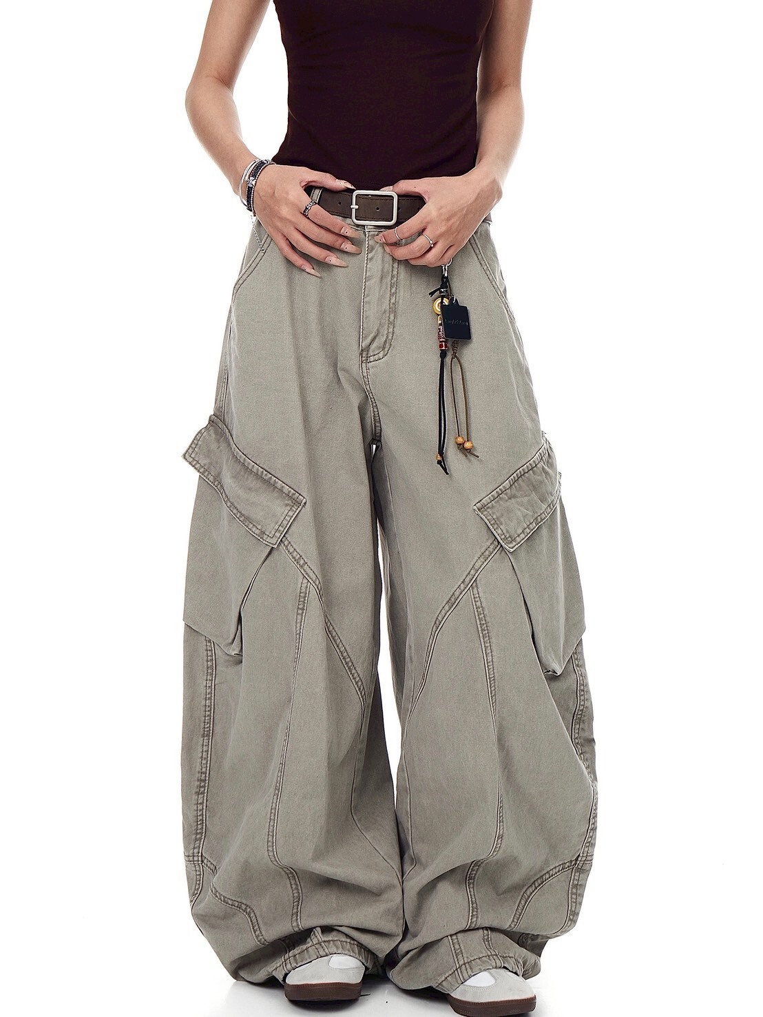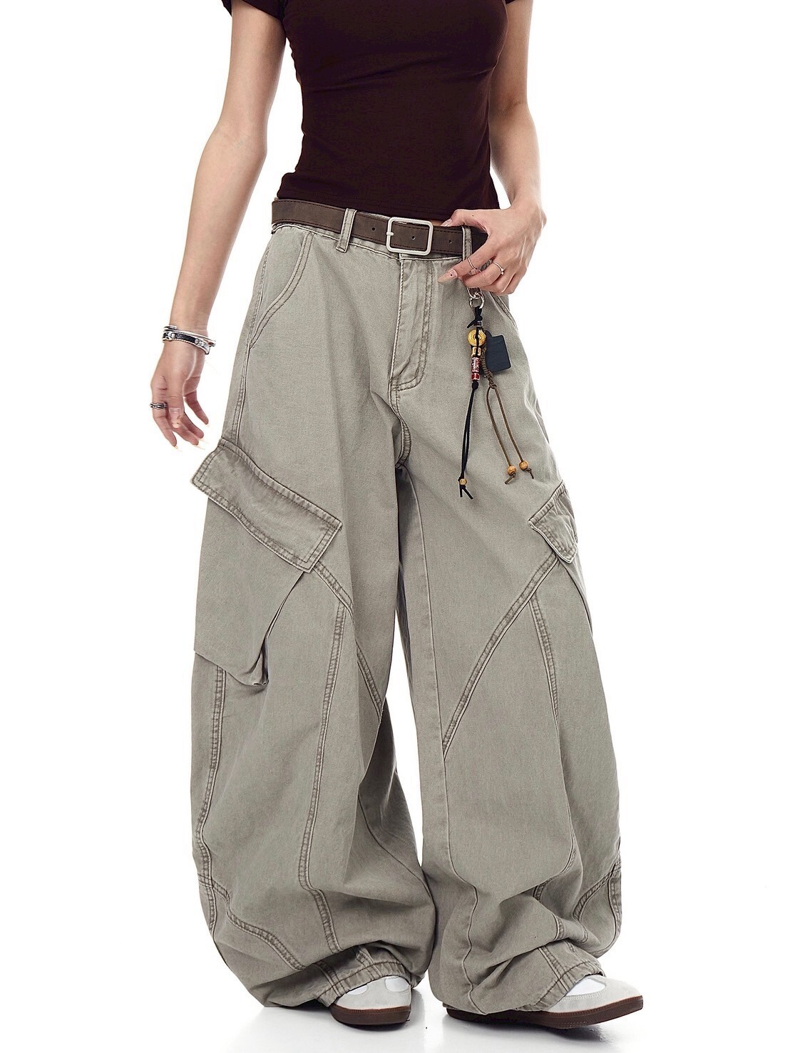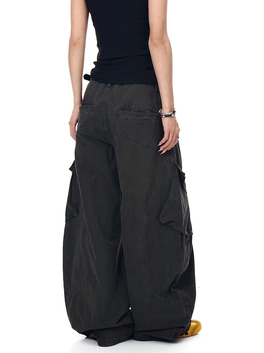 美式 復古 特殊抓皺 擴腿傘兵褲