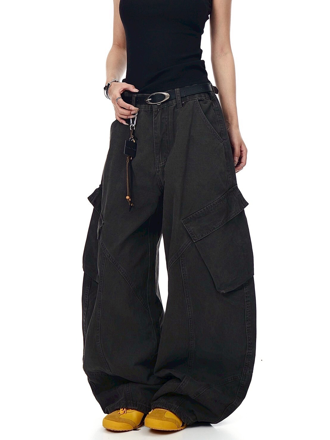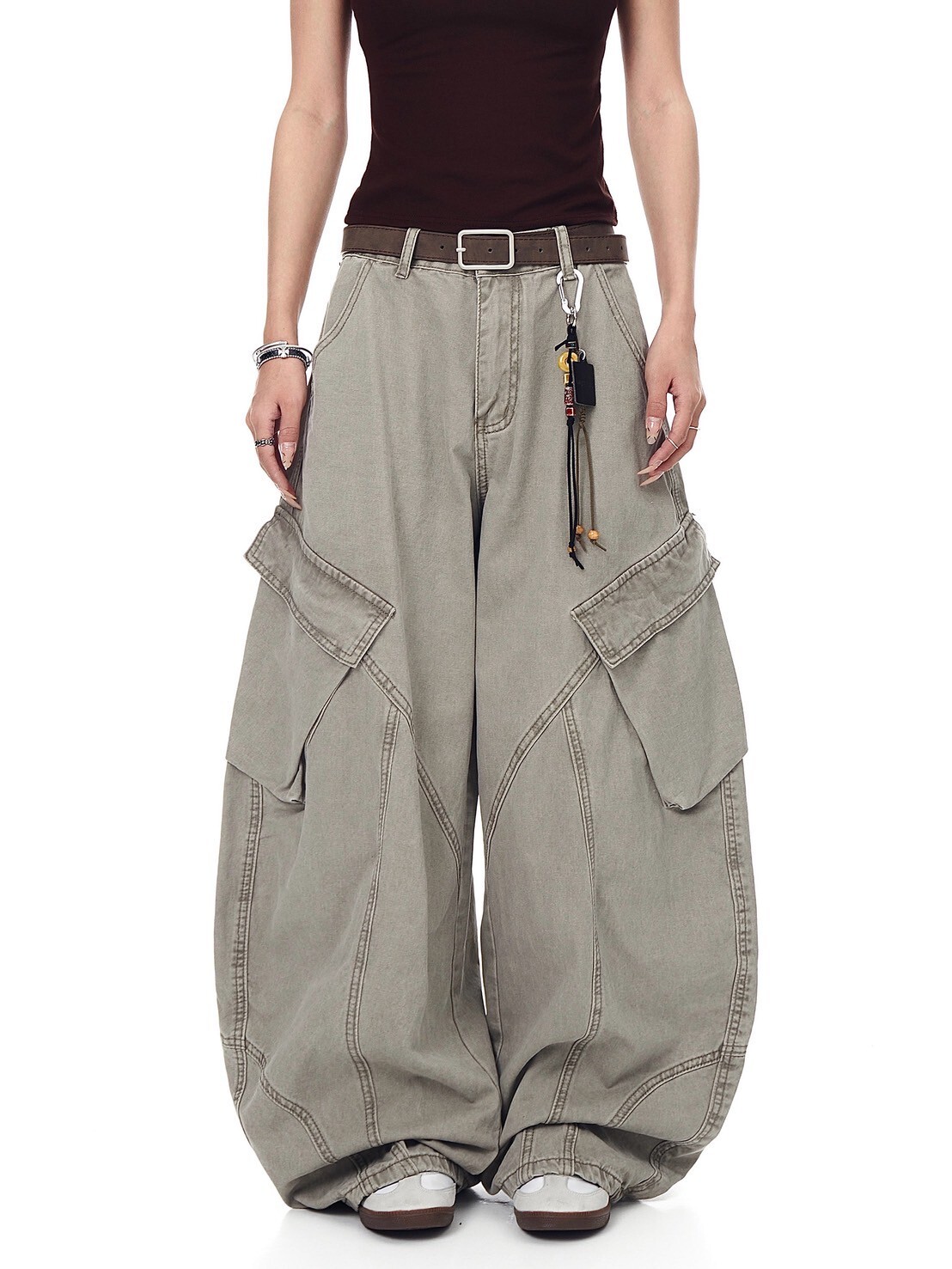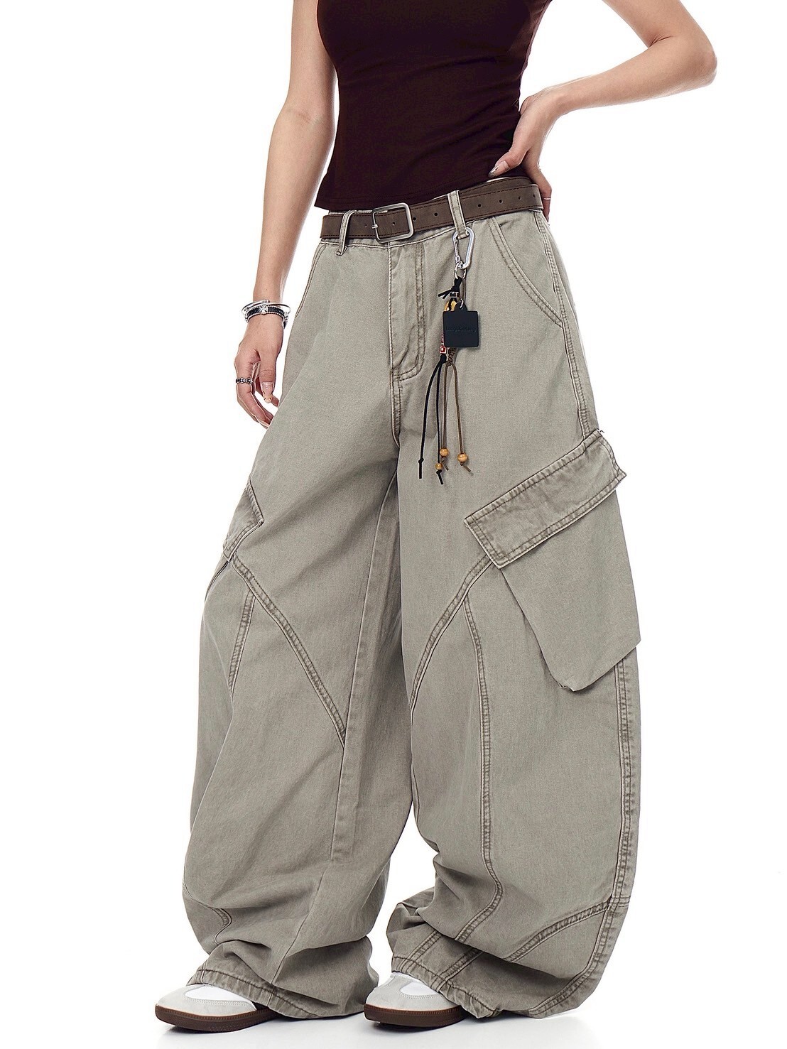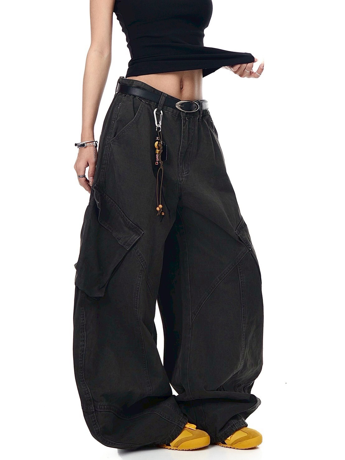 美式 復古 特殊抓皺 擴腿傘兵褲