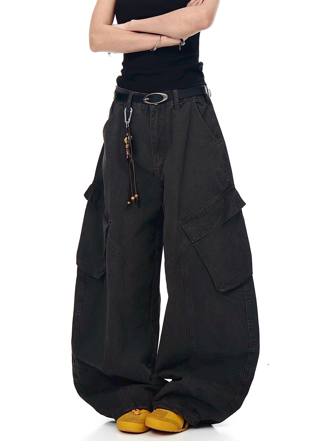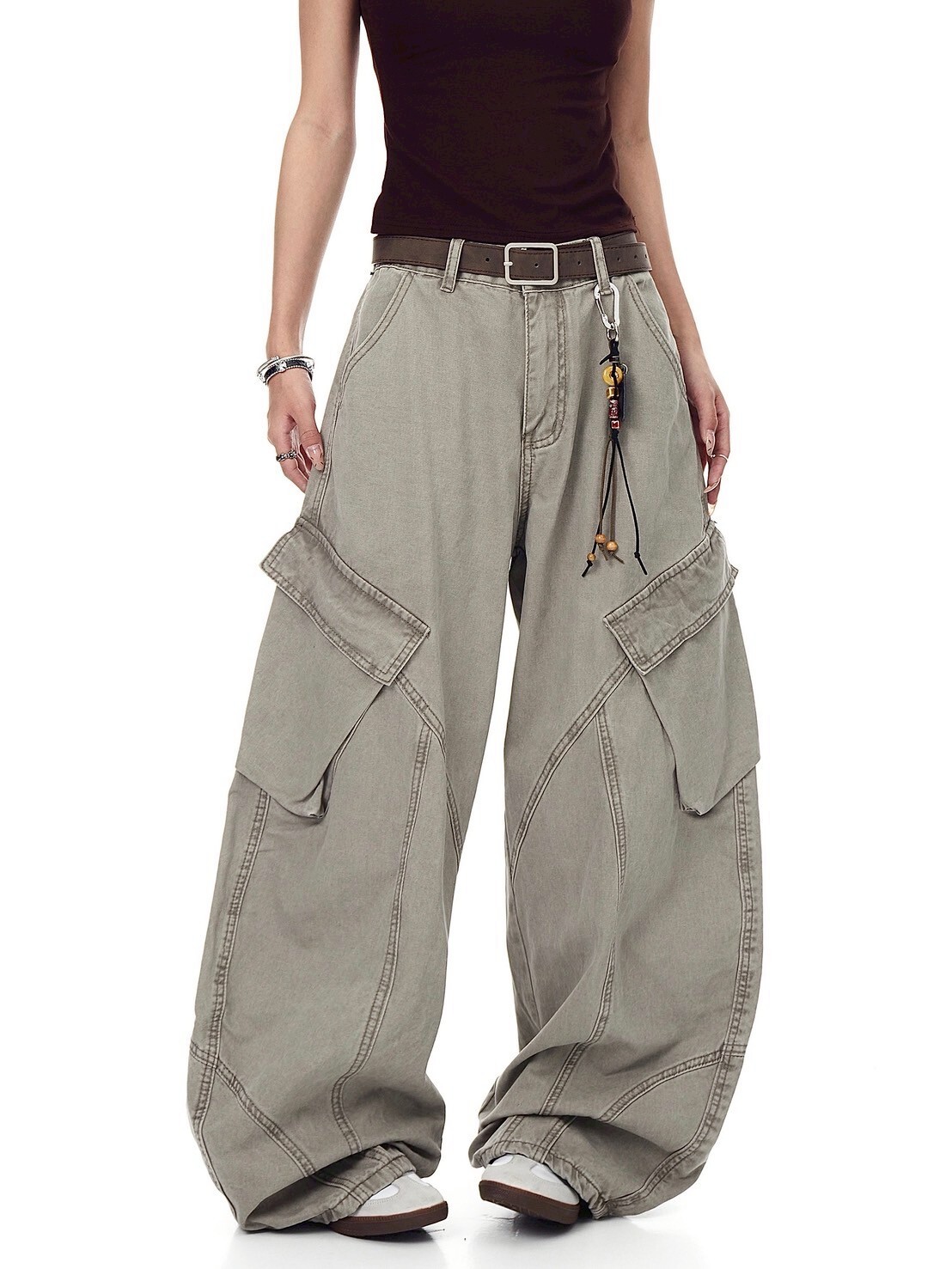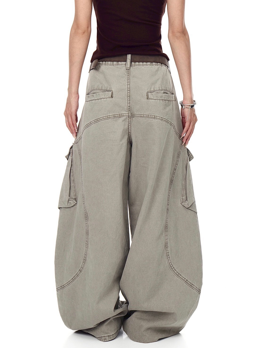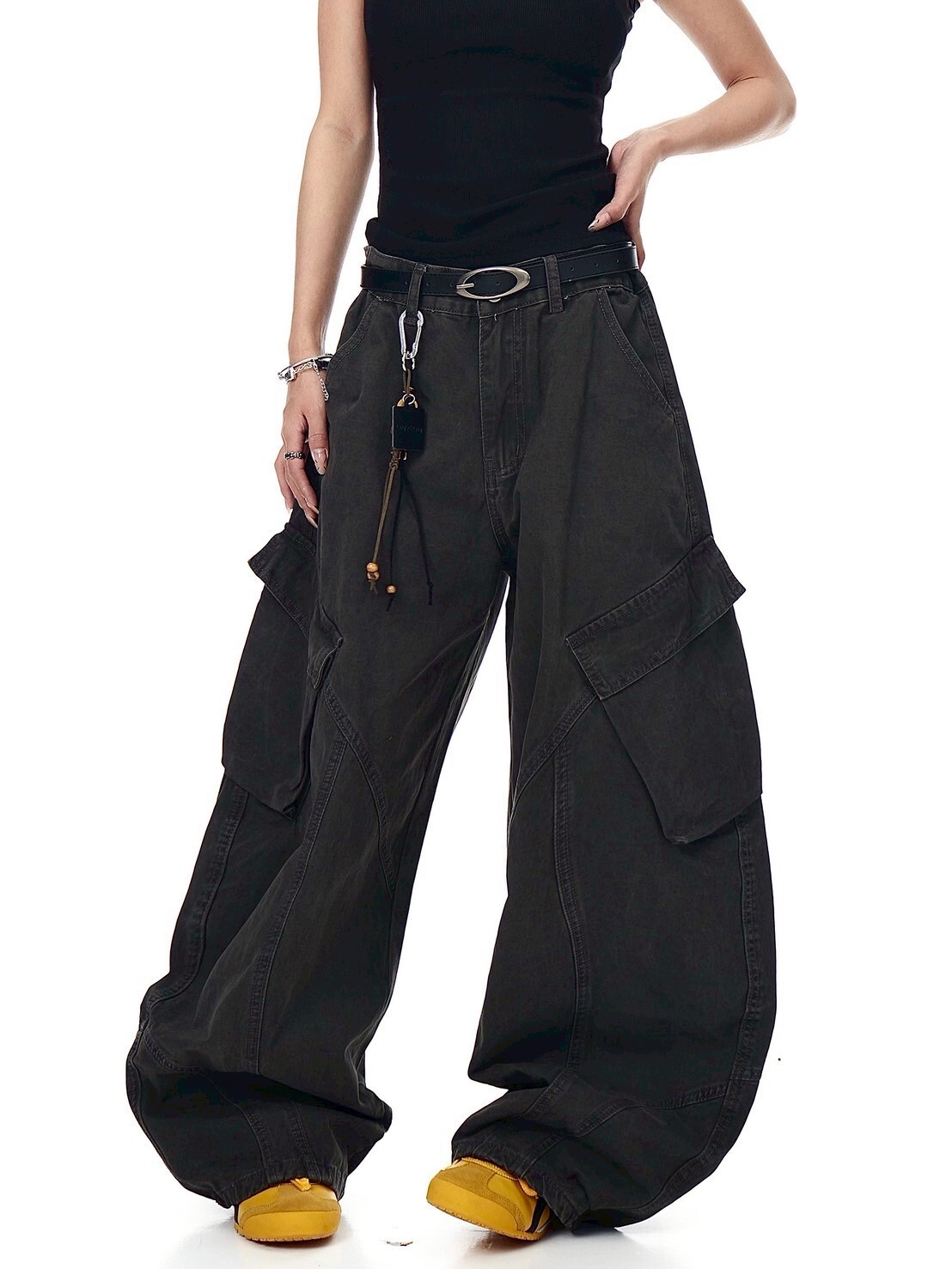 美式 復古 特殊抓皺 擴腿傘兵褲
