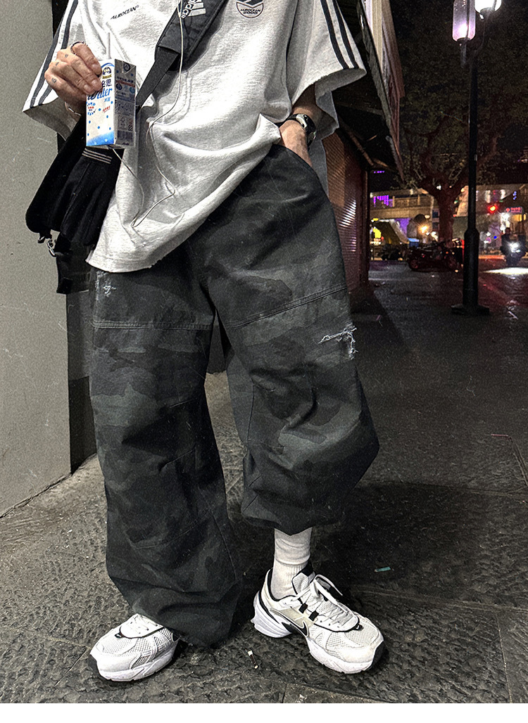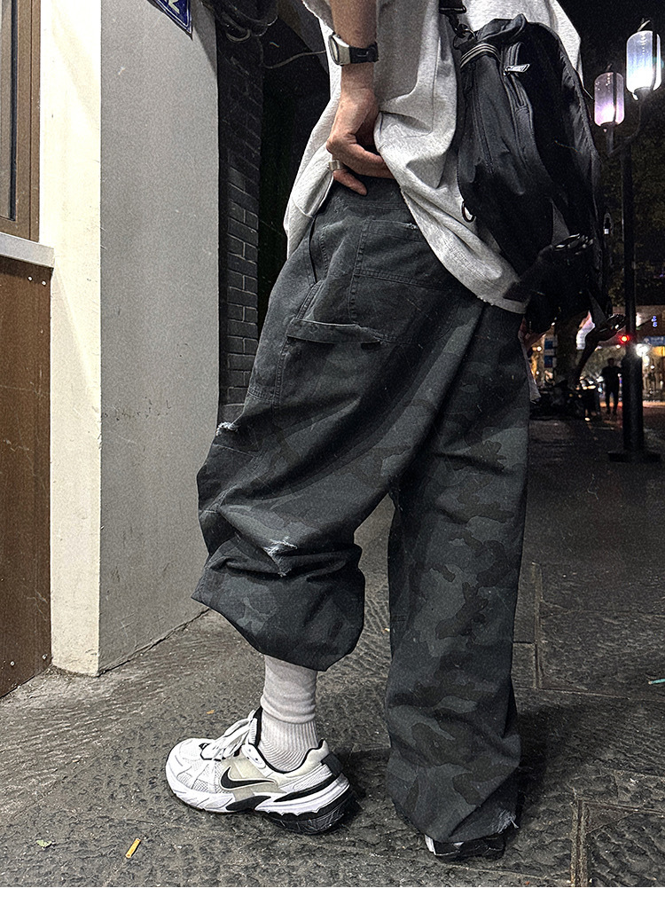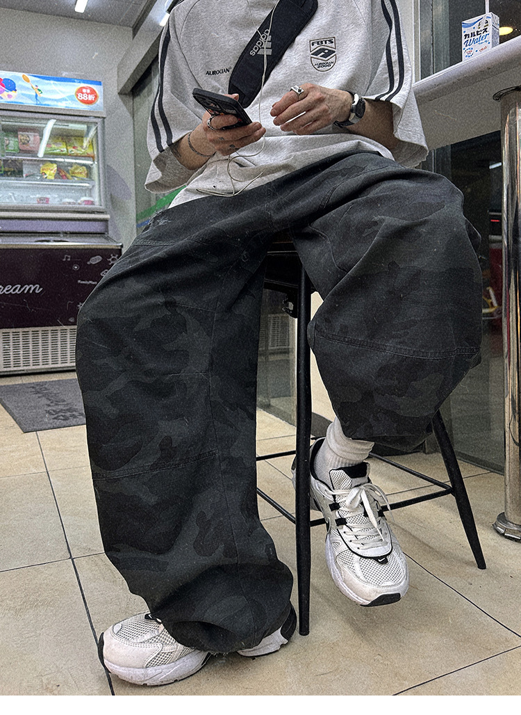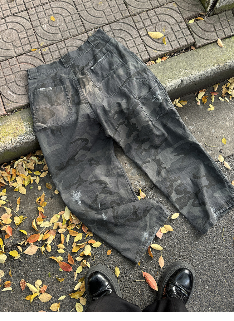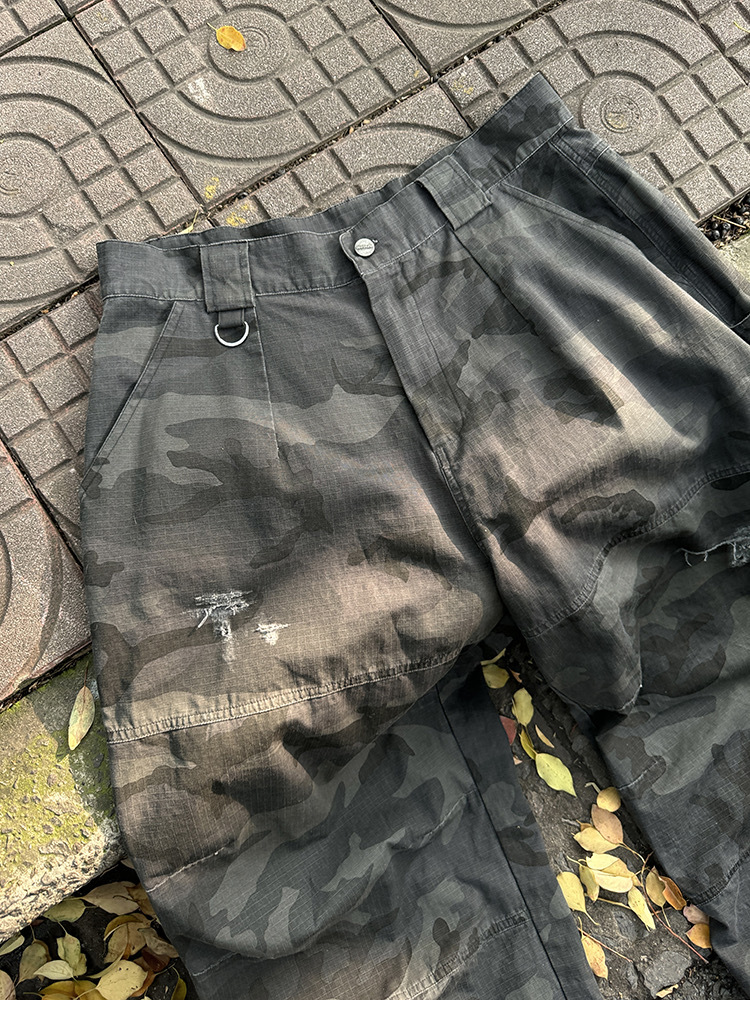 Aurocean 迷彩 做舊 工裝長褲