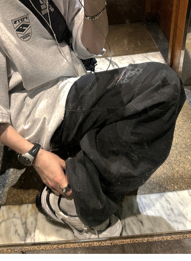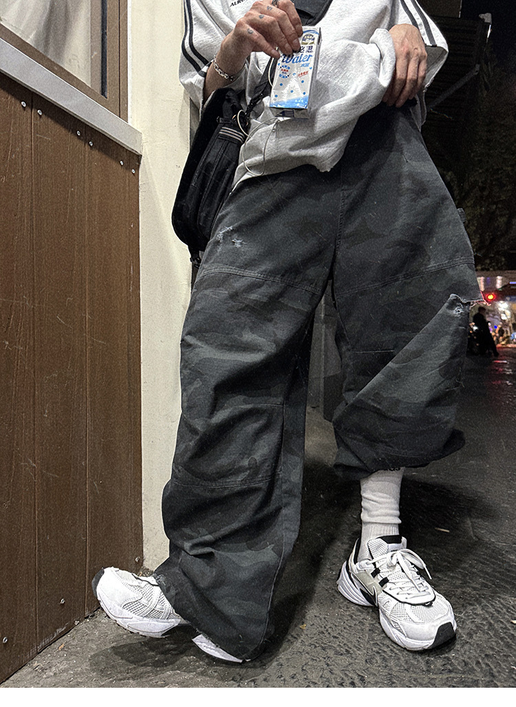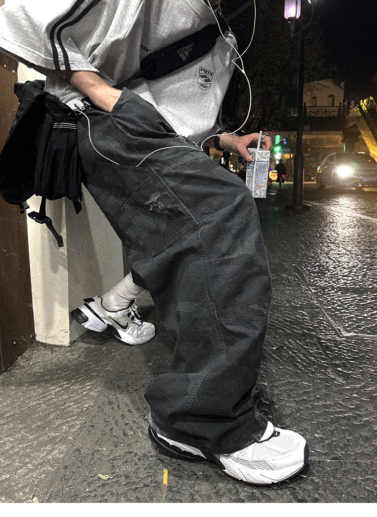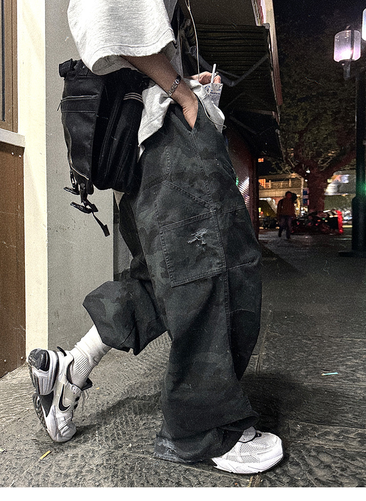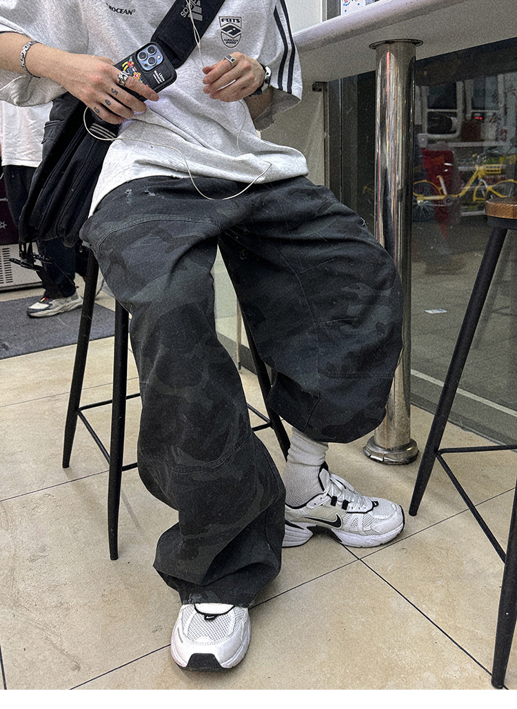 Aurocean 迷彩 做舊 工裝長褲