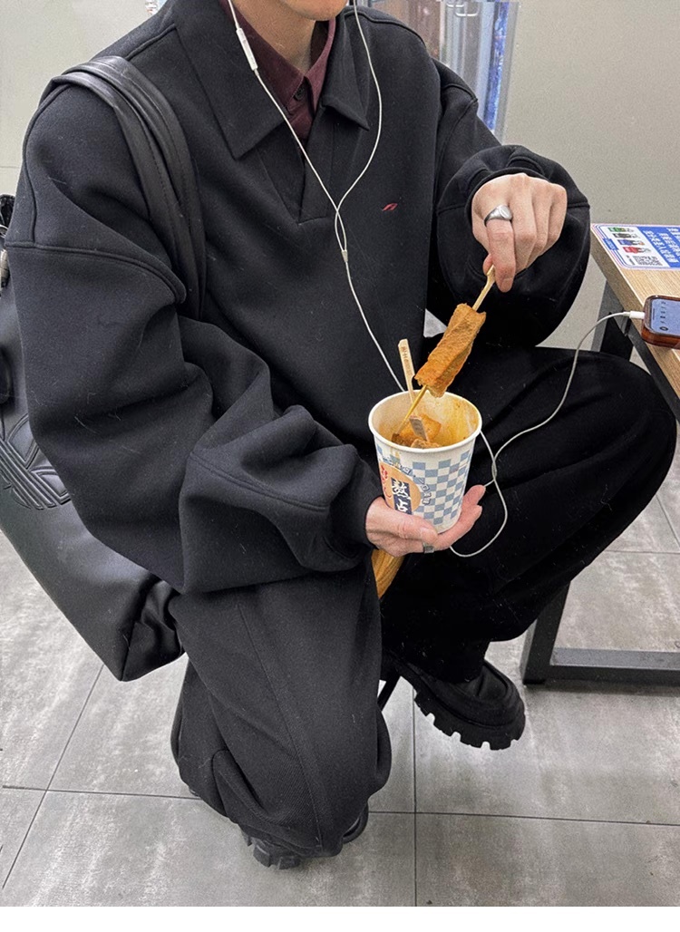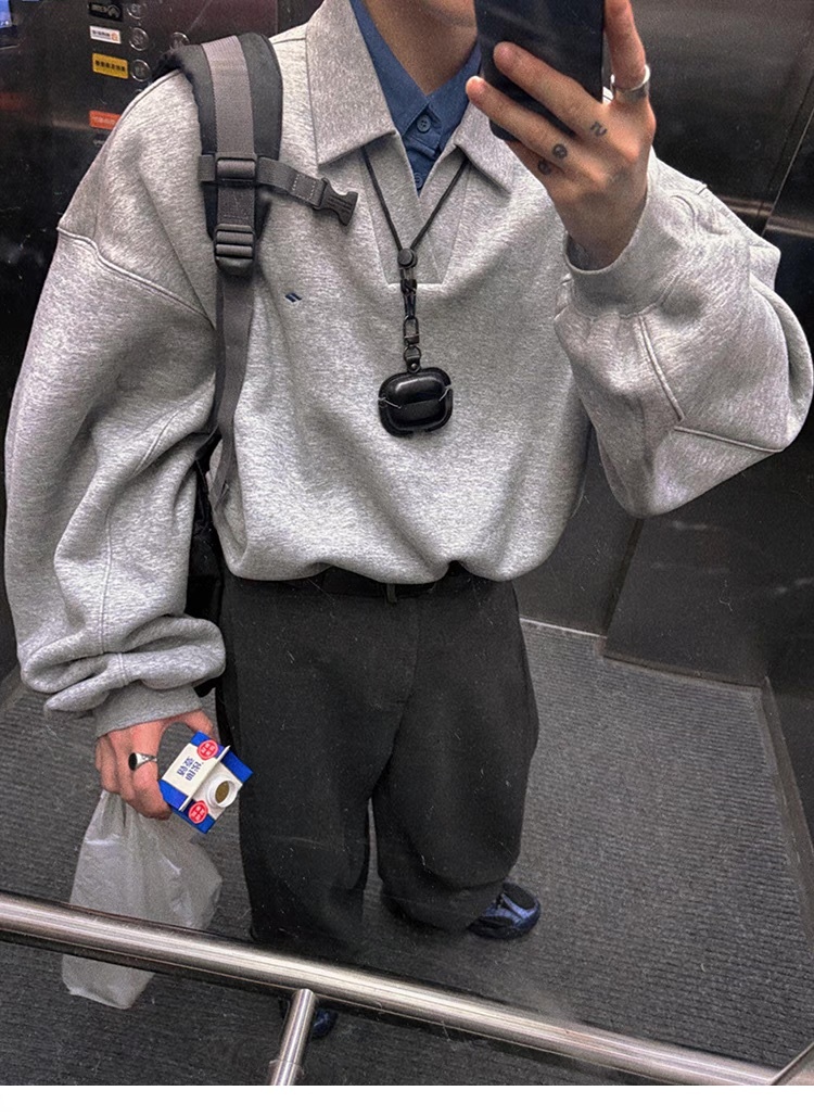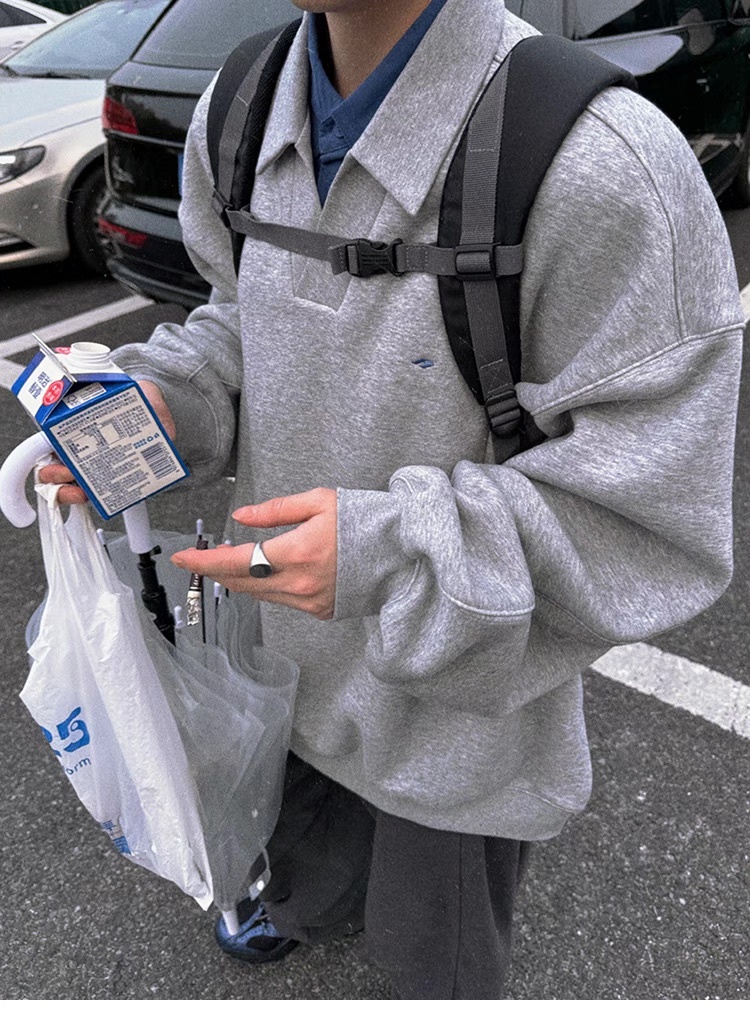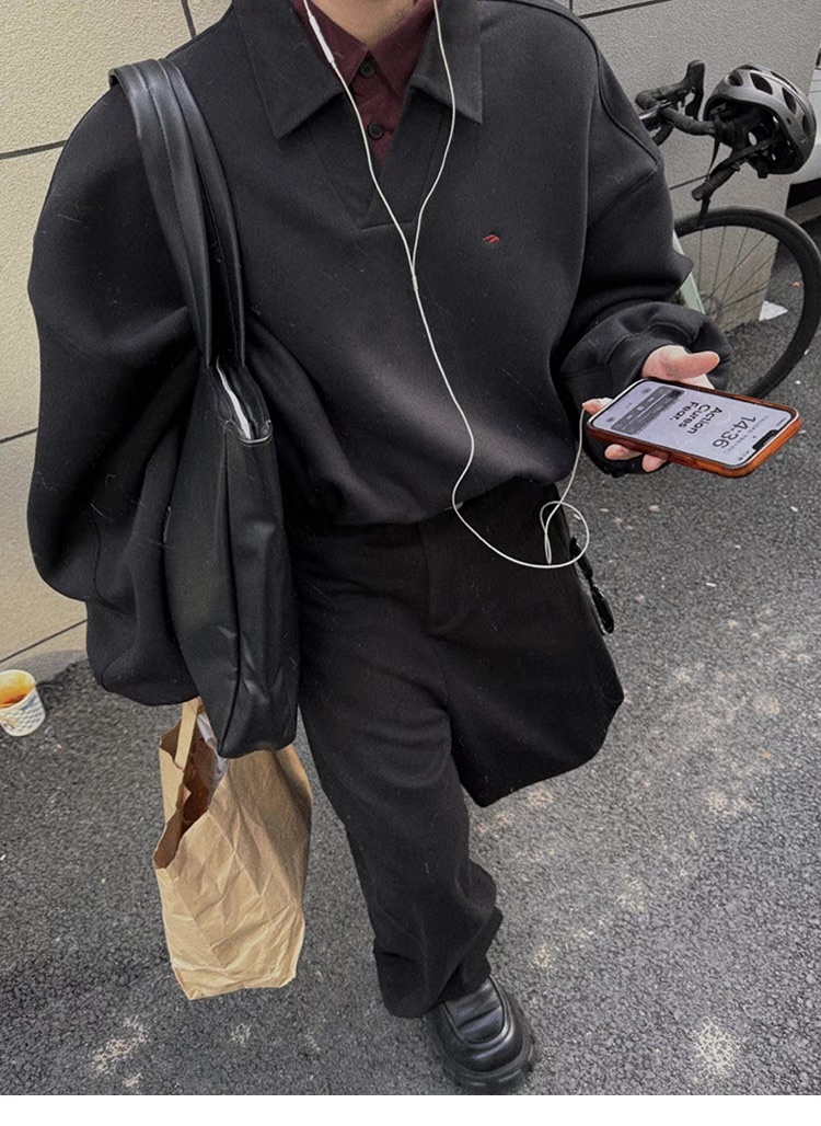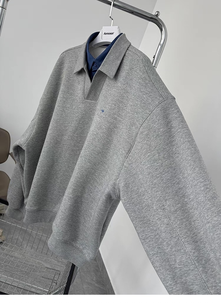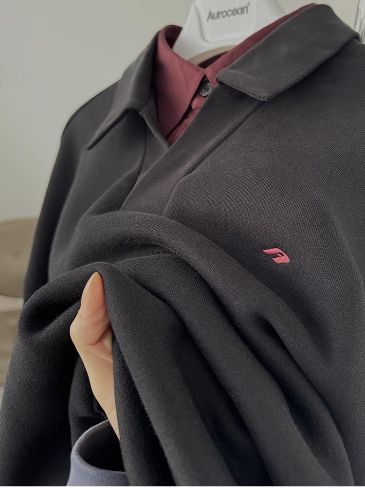 Aurocean 重磅 假兩件 刺繡 加絨 Polo衫
