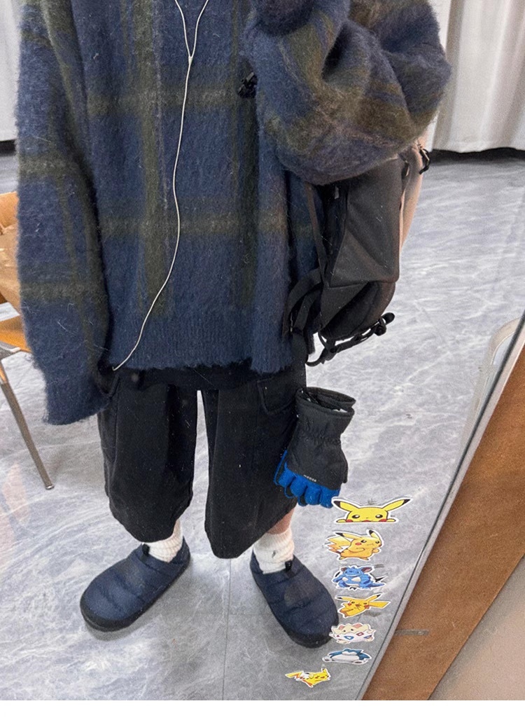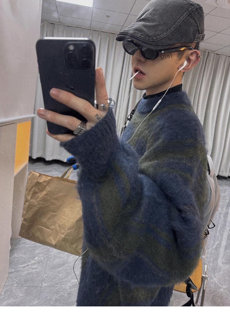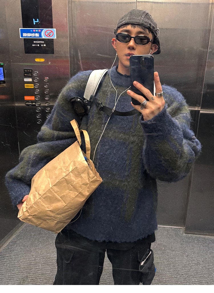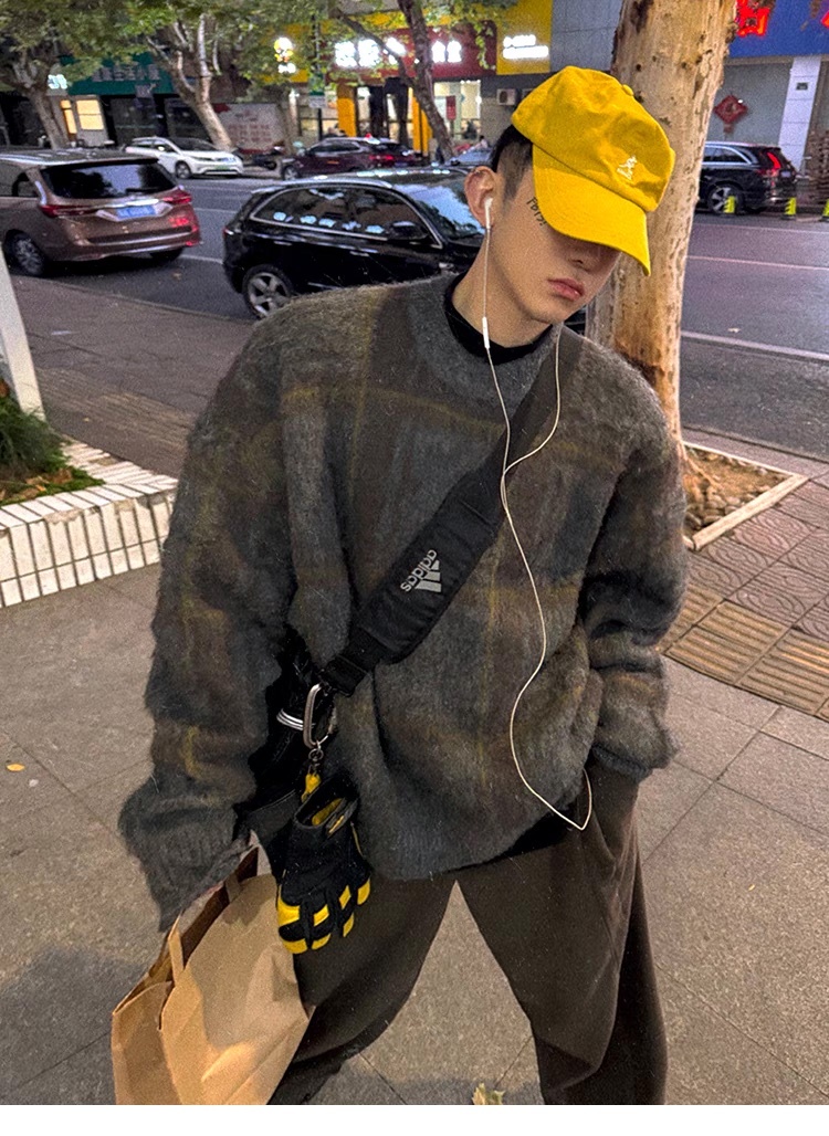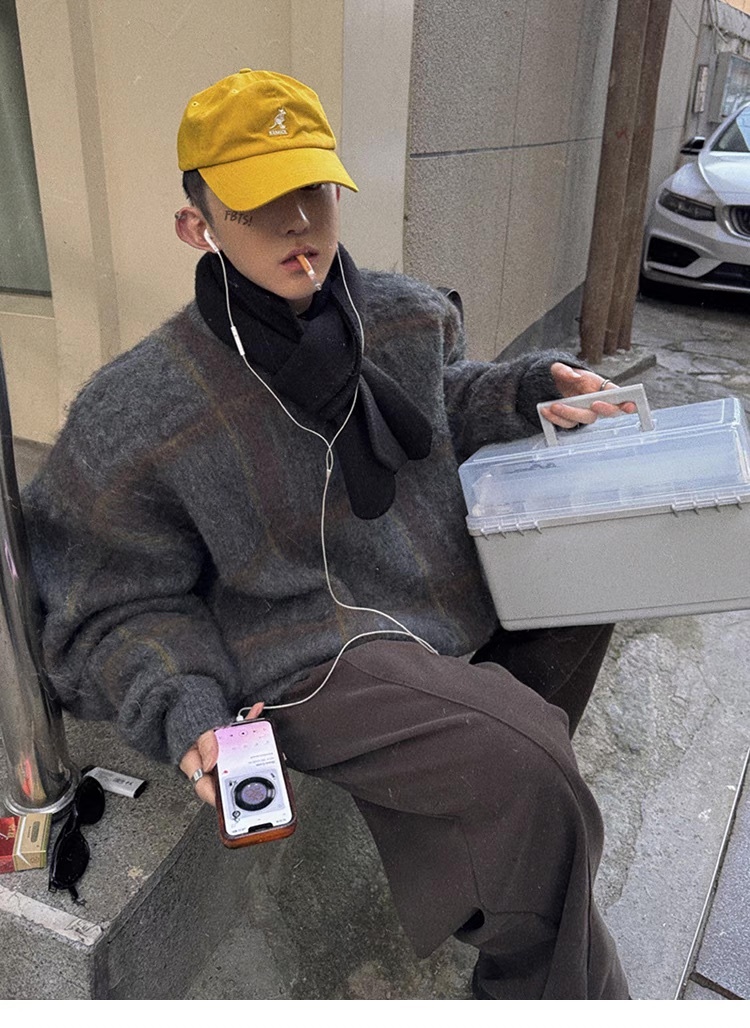 Aurocean 復古 撞色 格紋 馬海毛 針織毛衣
