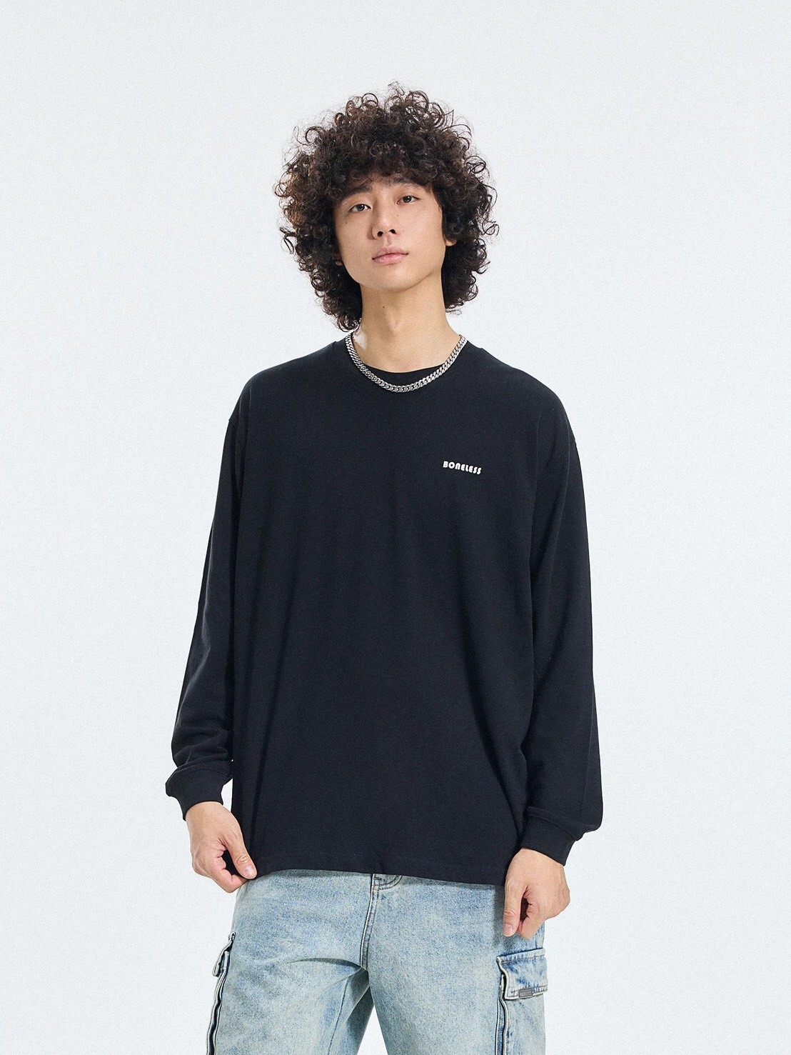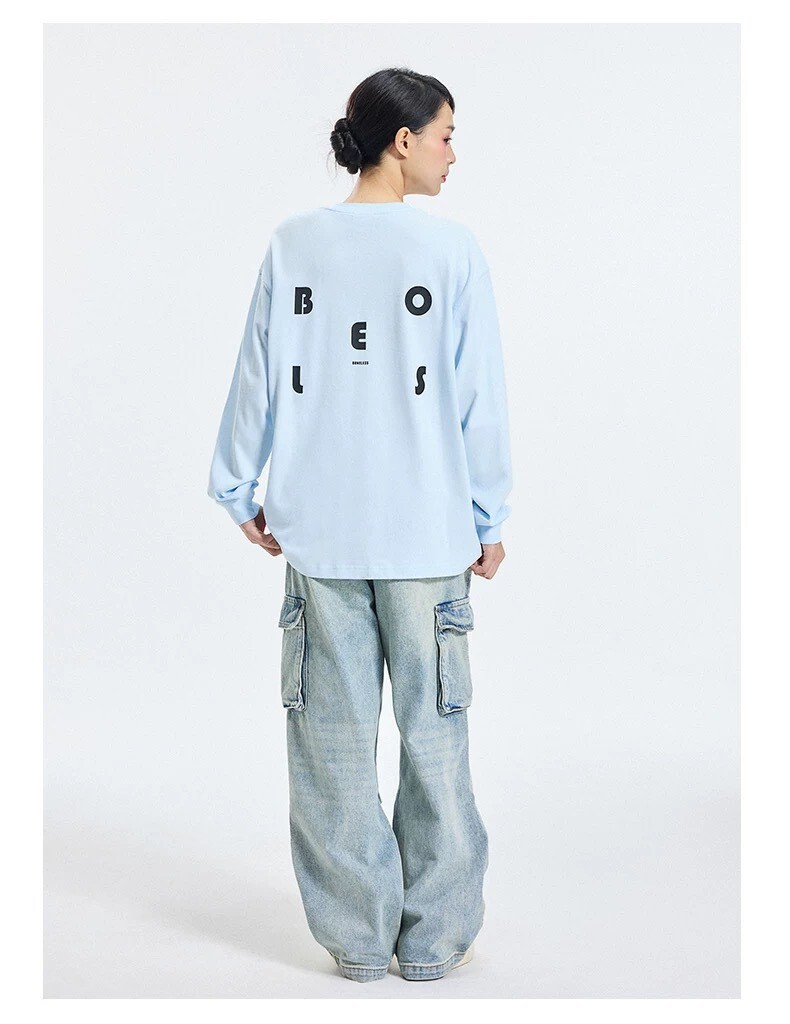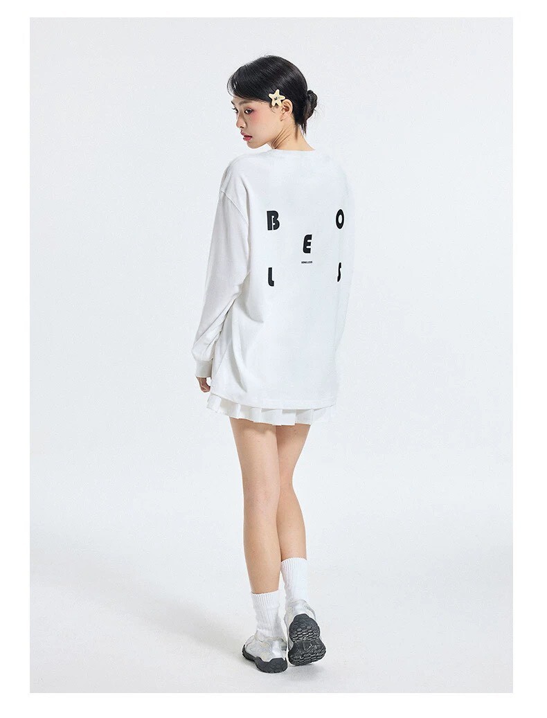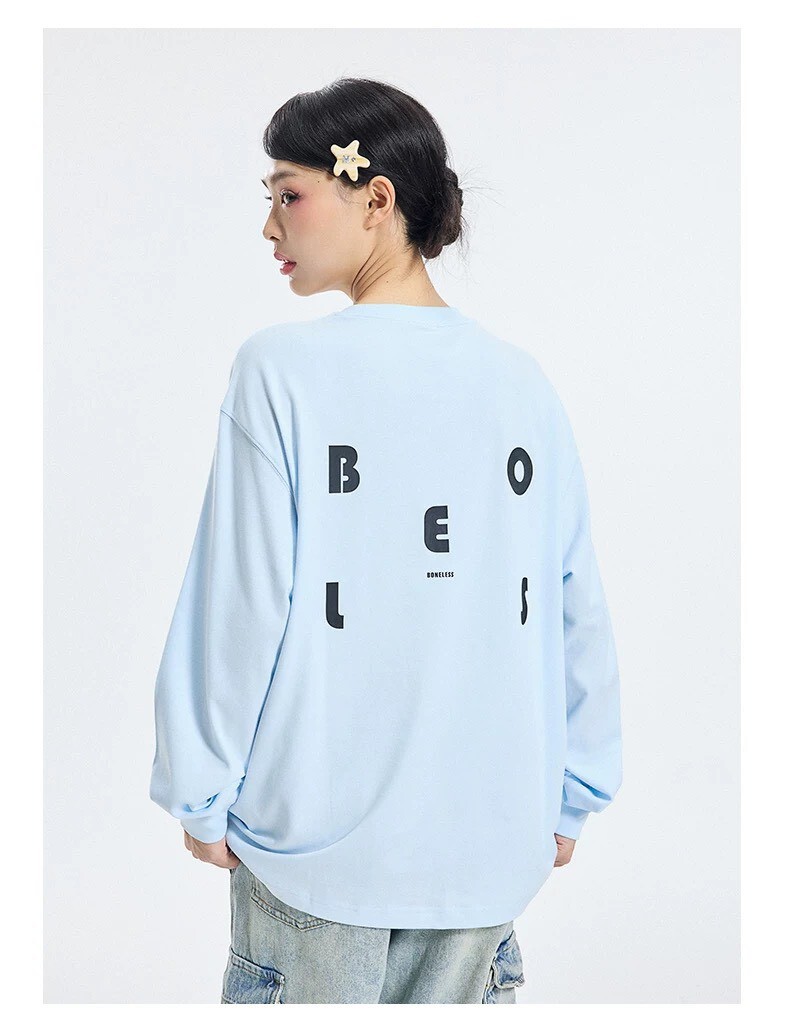 BONELESS日系簡約 字母印花 絨感 長袖