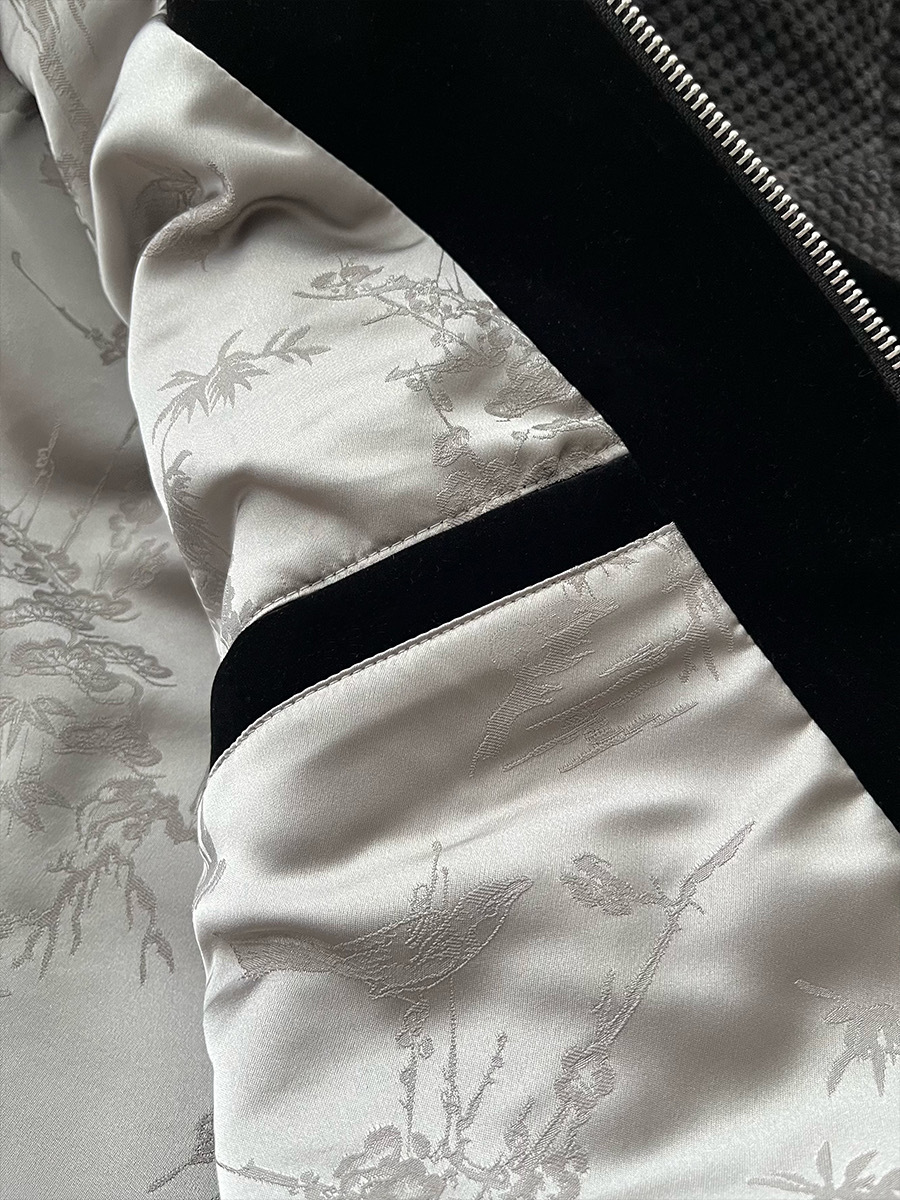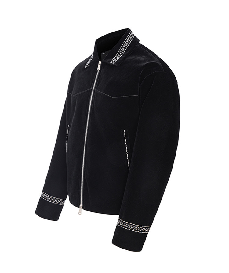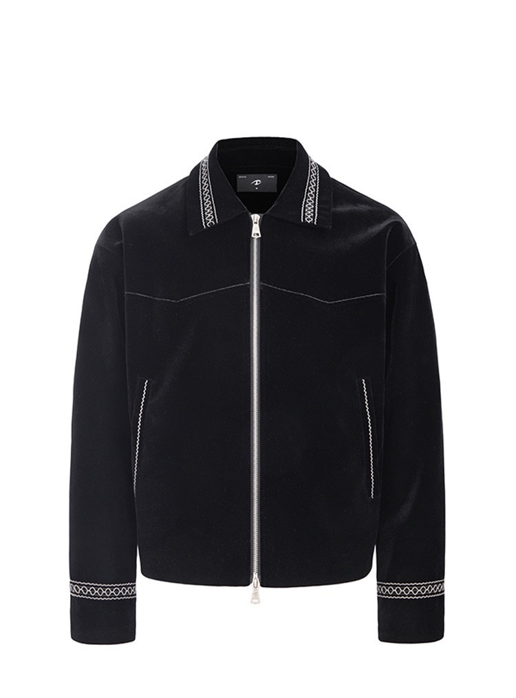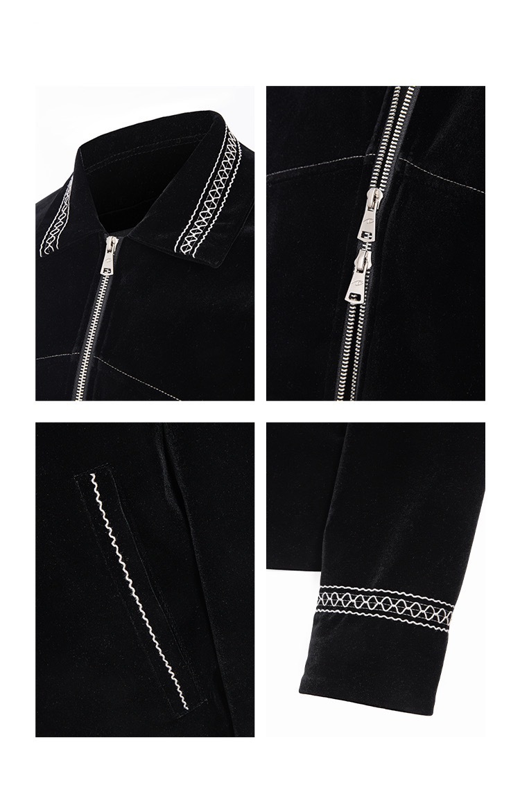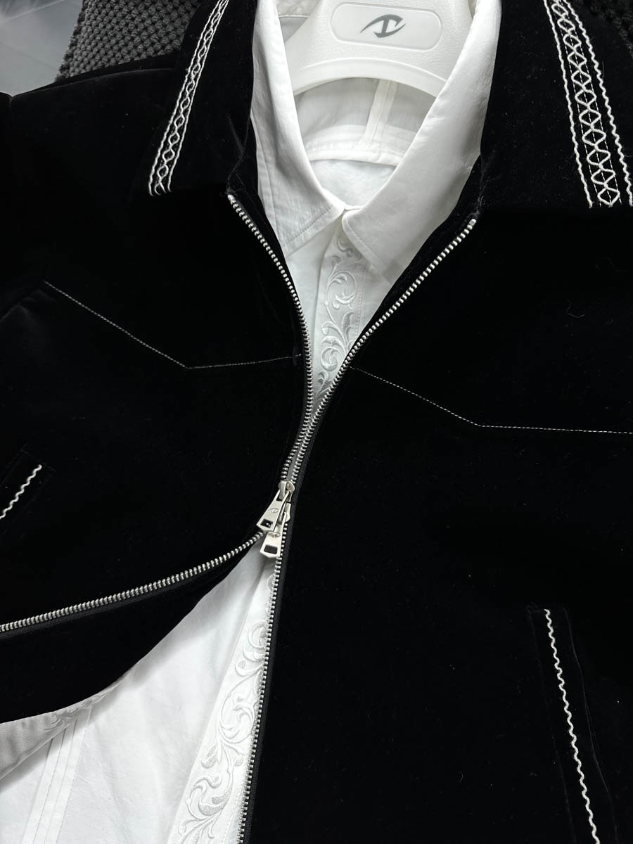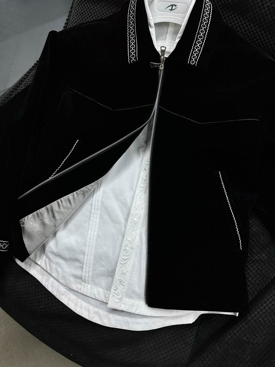 CATSSTAC 黑爵士 銀線刺繡 絲絨 翻領夾克