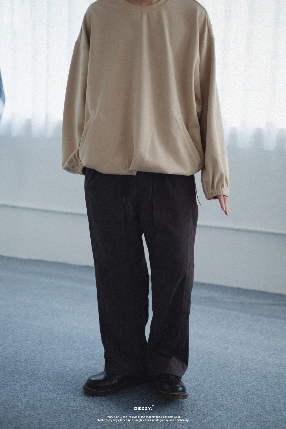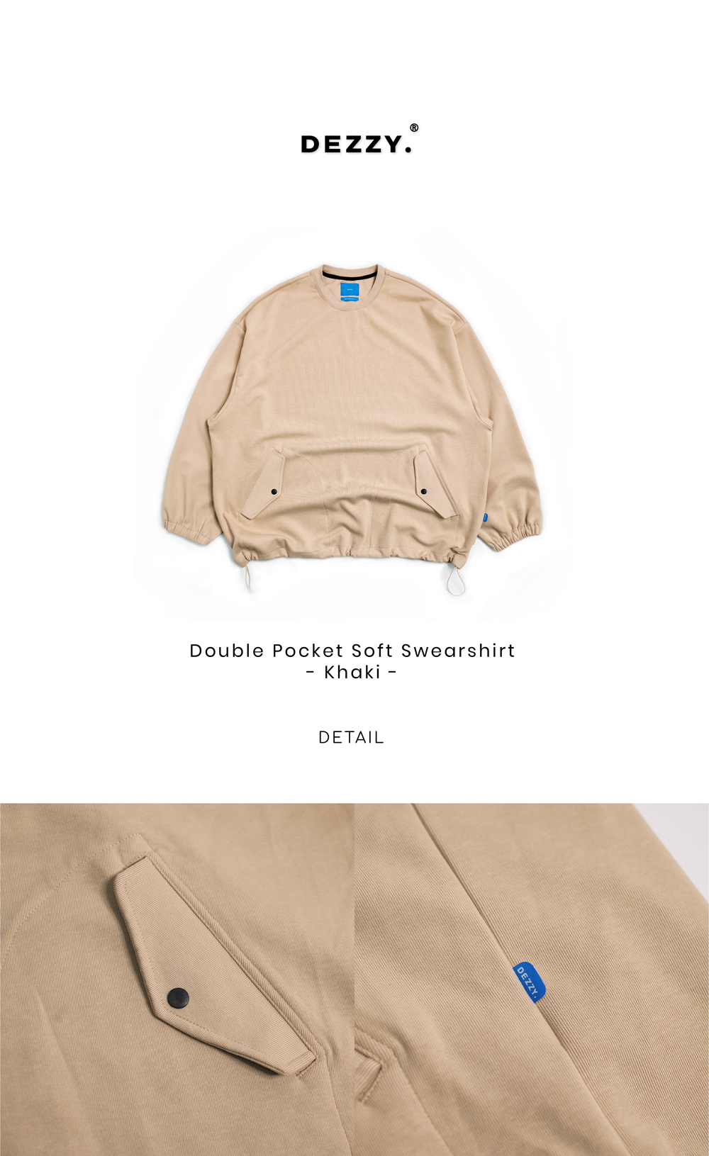 選用舒適且厚實的特殊針織柔軟面料,雙側壓扣造型口袋提供實用的置物空間。整體設計寬鬆隨性,結合可調節式下擺抽繩,搭配藍色主標點綴,輕鬆變化出理想中的垂墜造型。