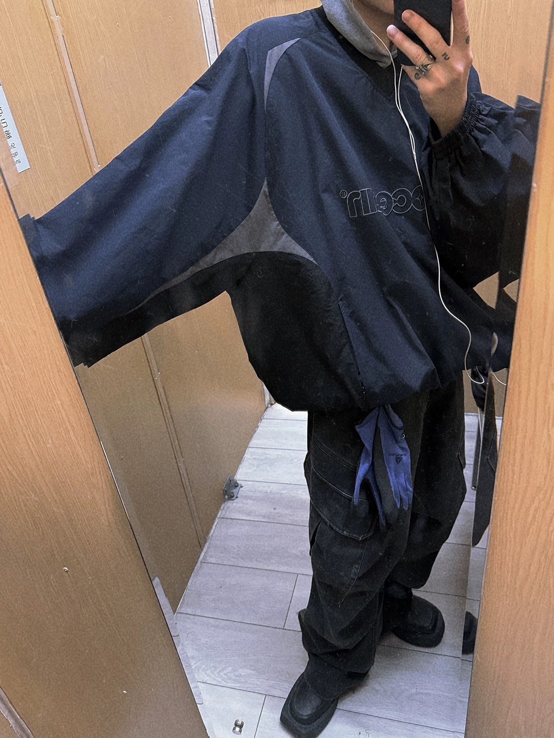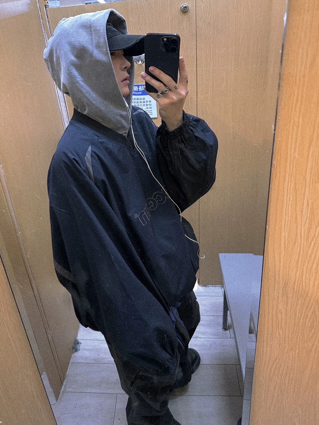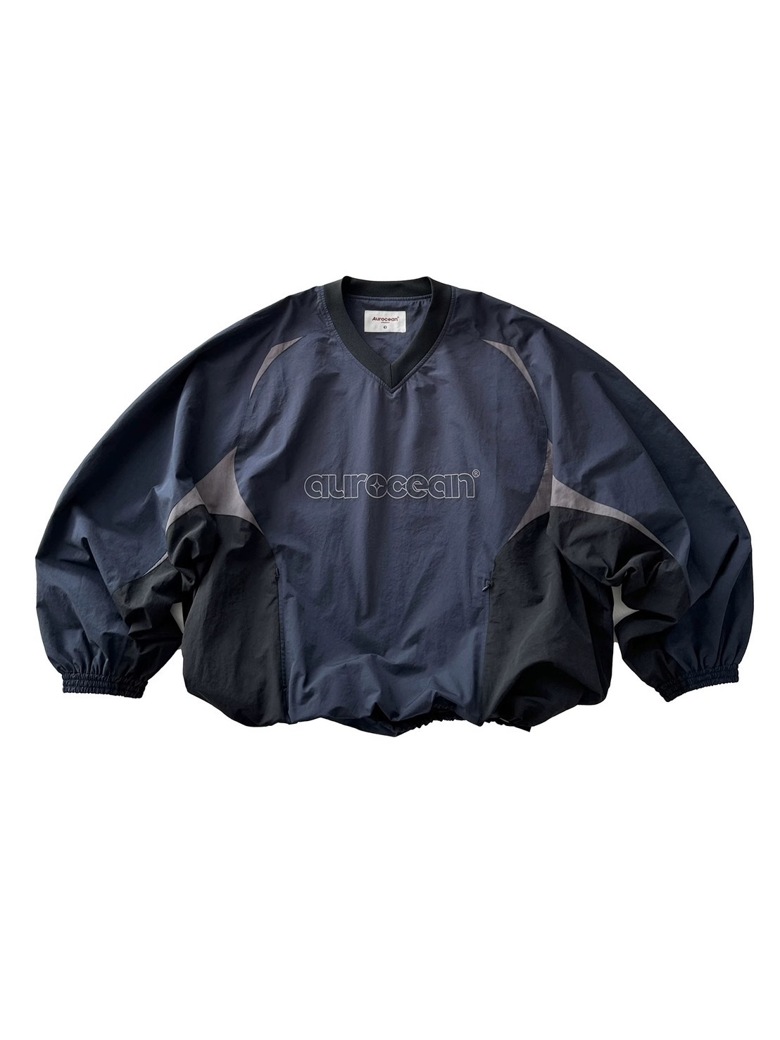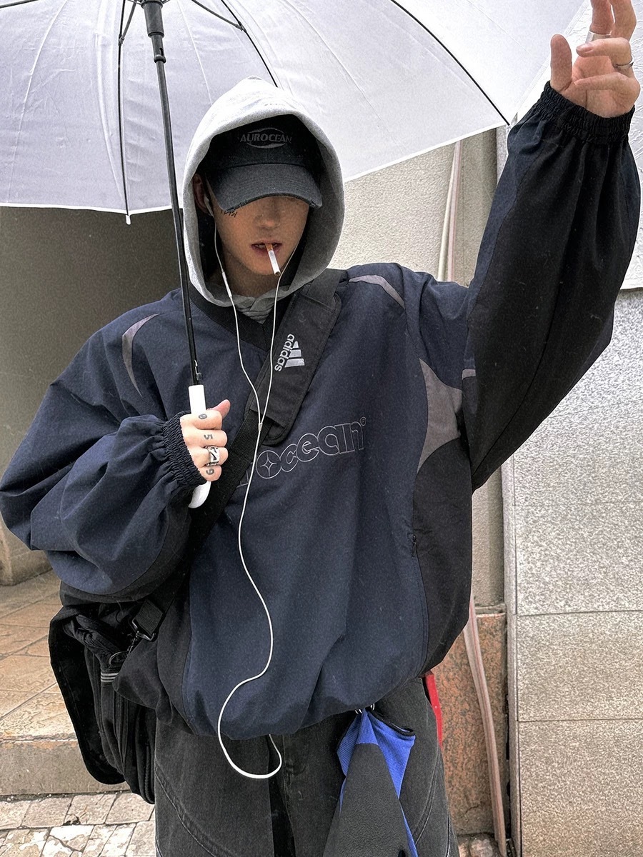 Aurocean 古著感尼龍拼接短版防風衛衣