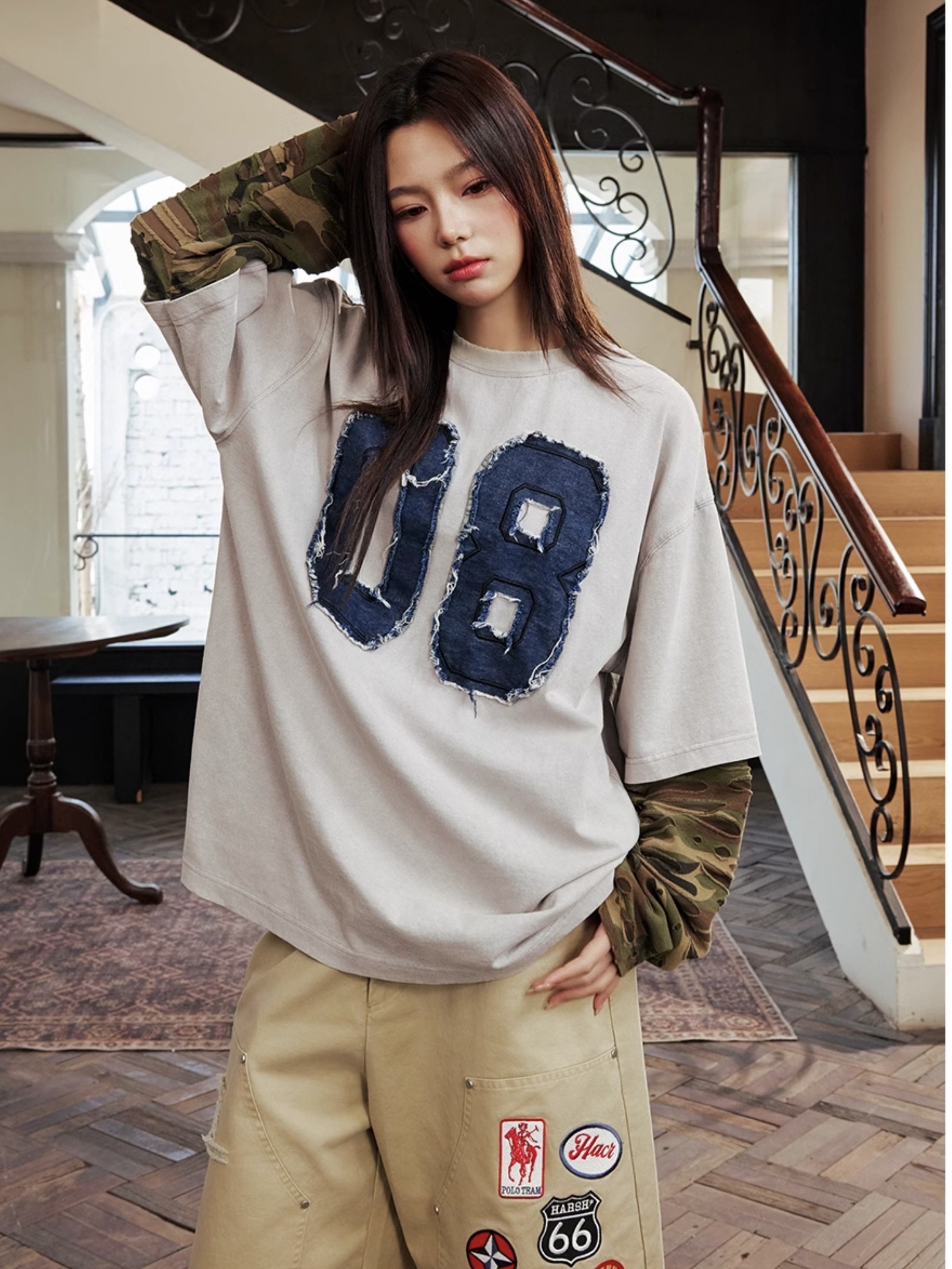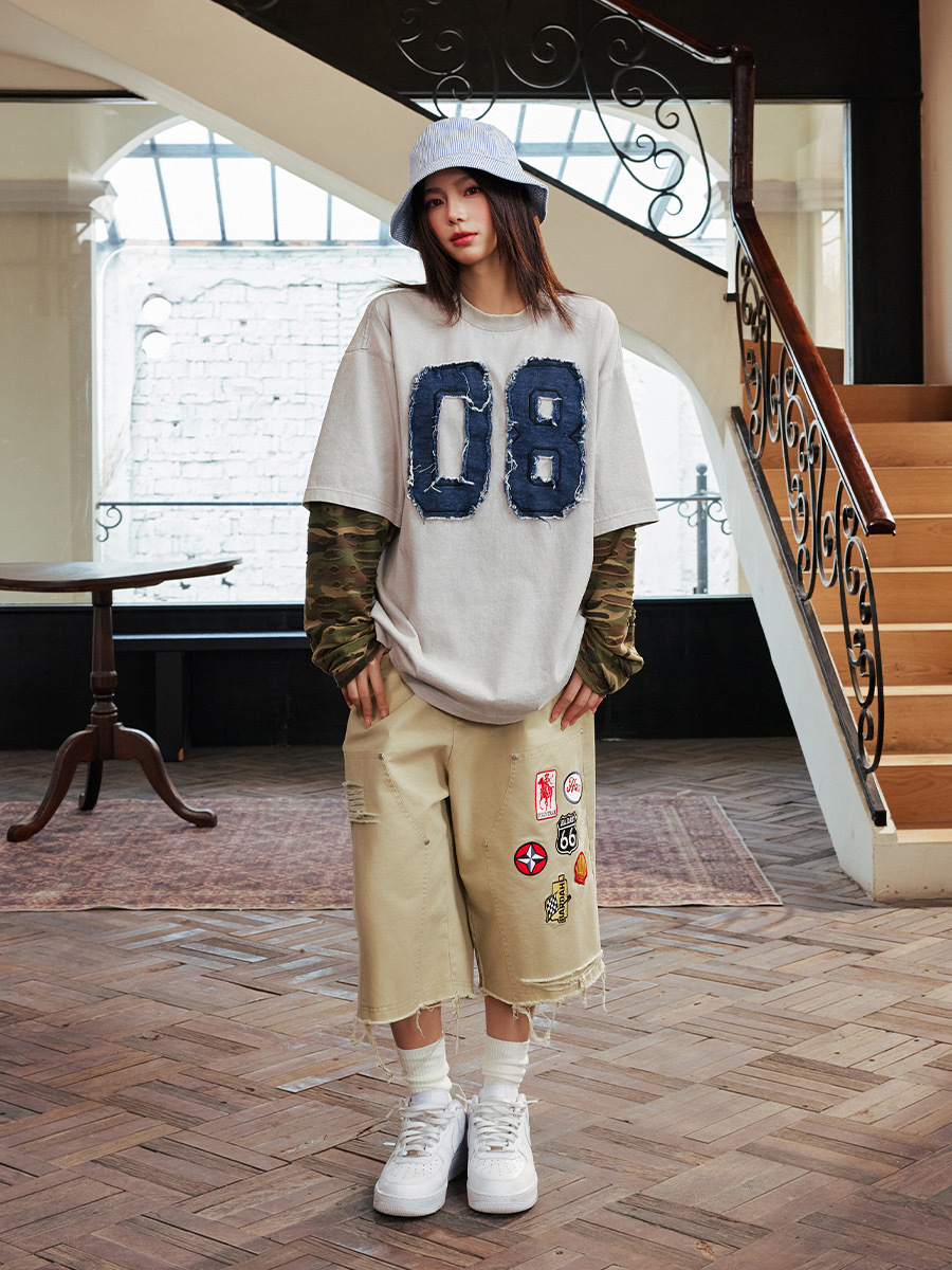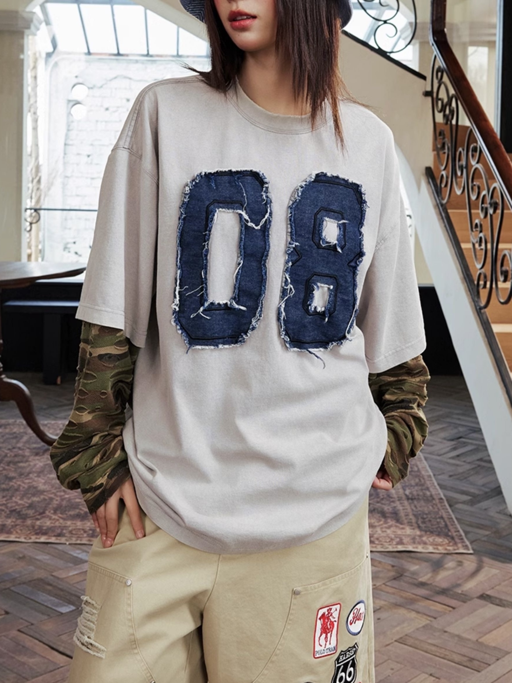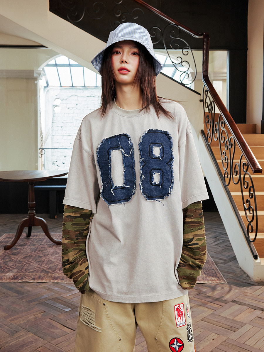 harsh and cruel 2025SS 美式做舊 假兩件 迷彩拼接 破壞貼布 長袖