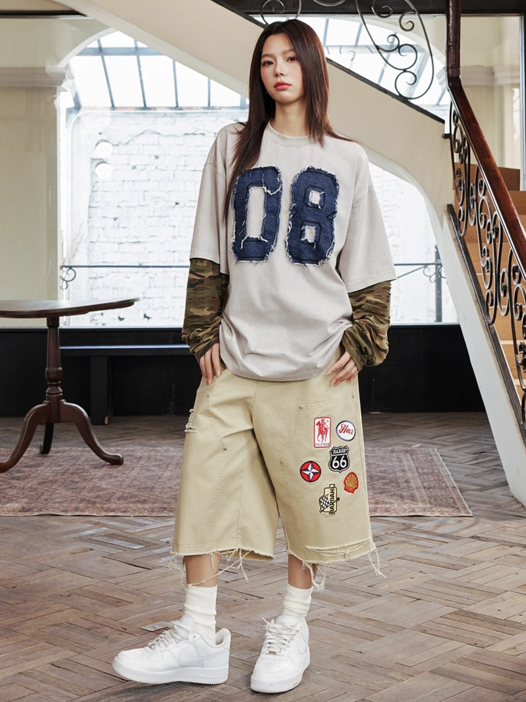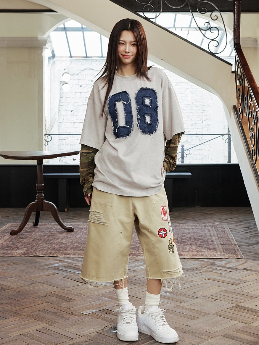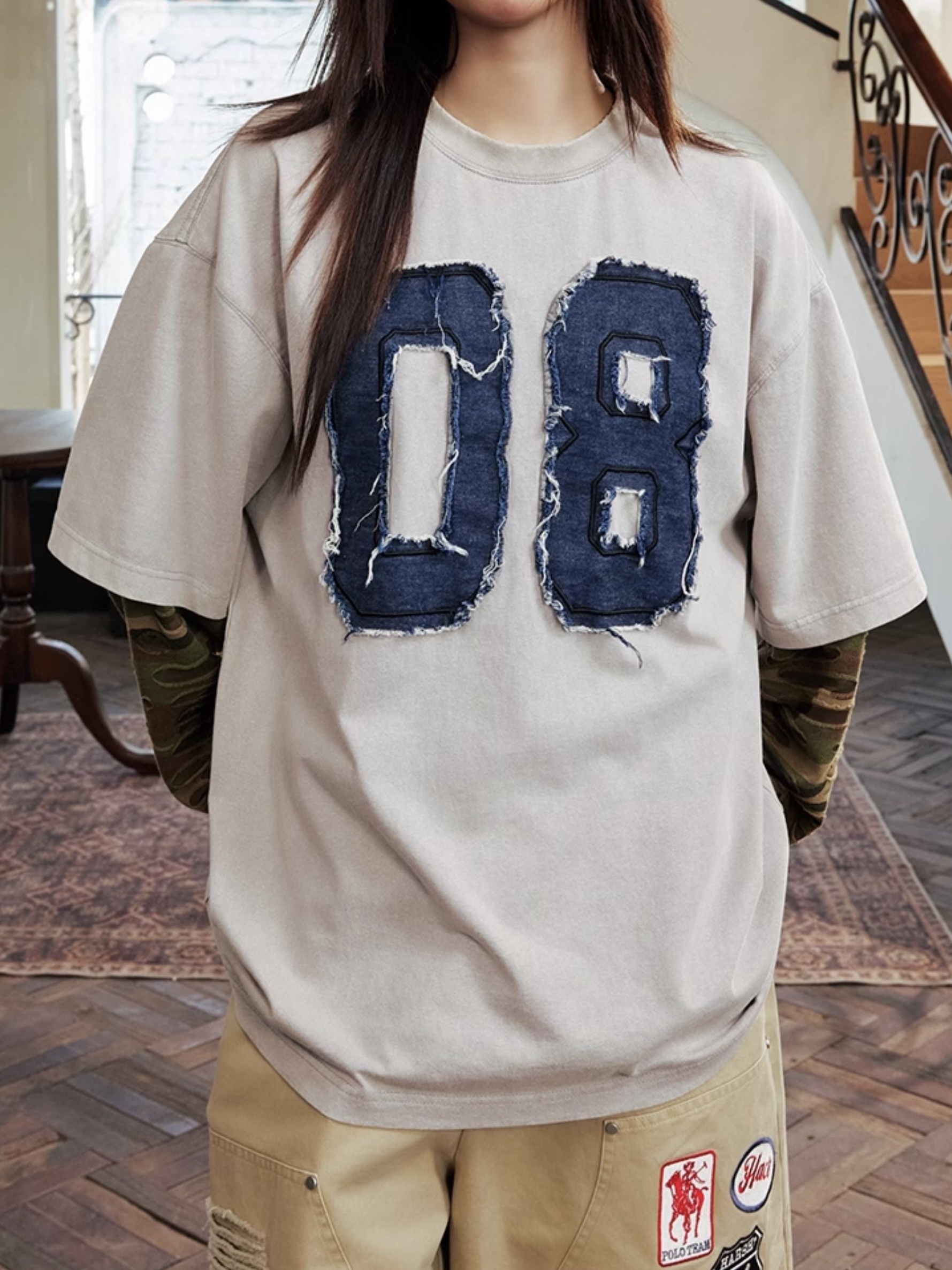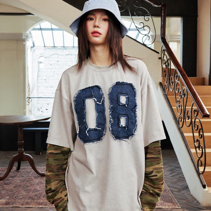 harsh and cruel 2025SS 美式做舊 假兩件 迷彩拼接 破壞貼布 長袖