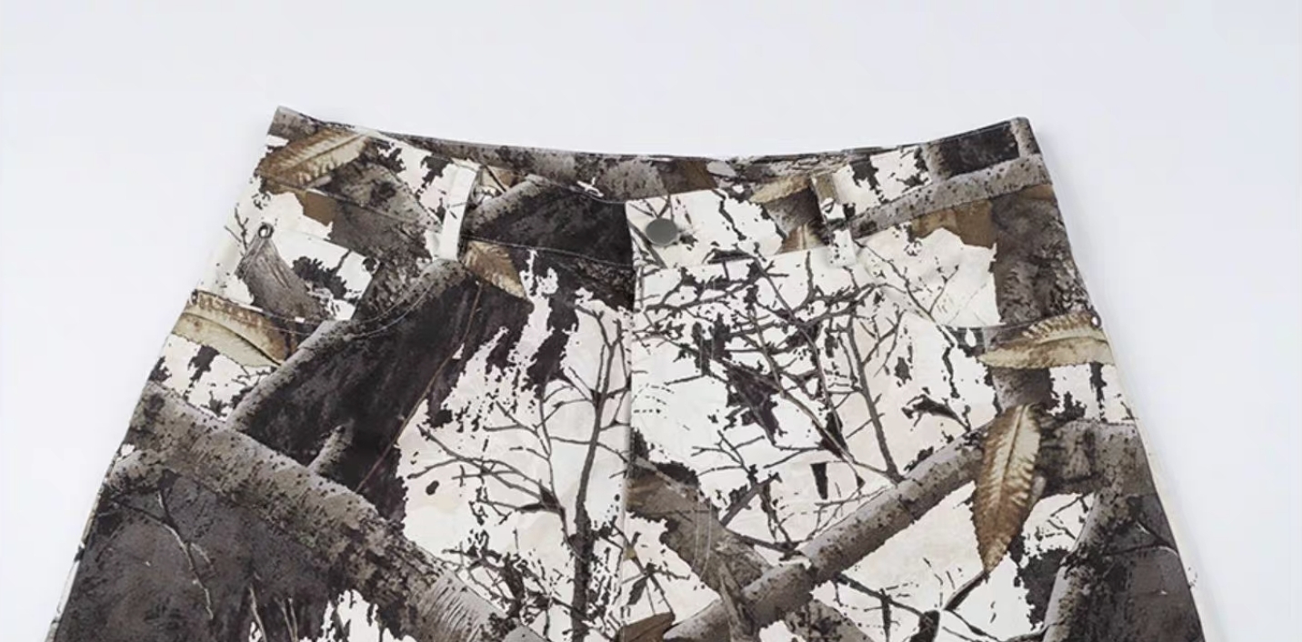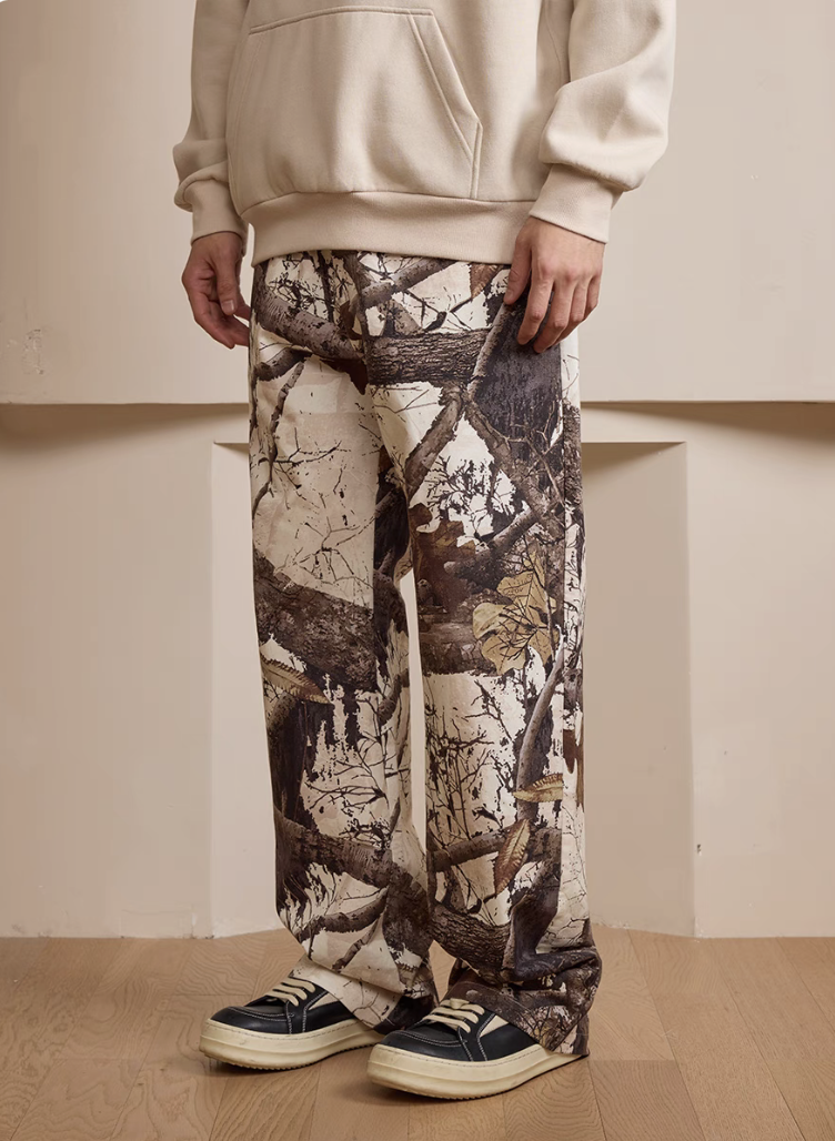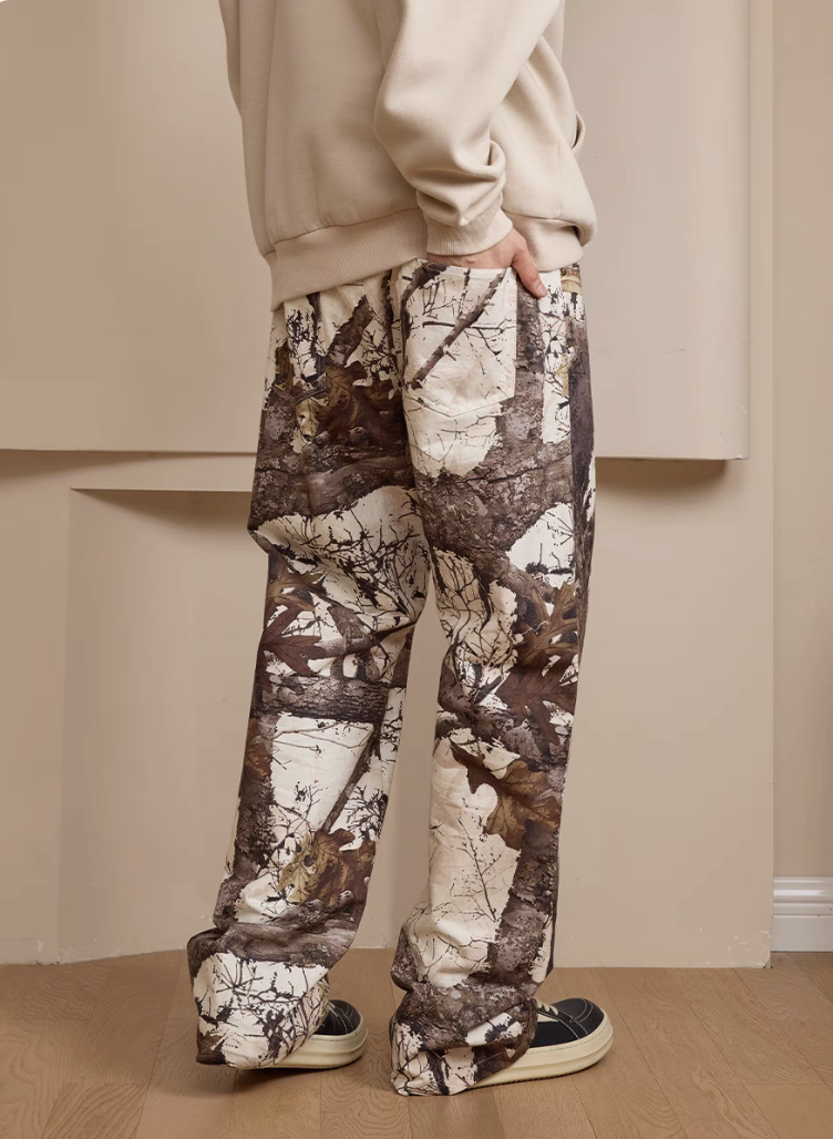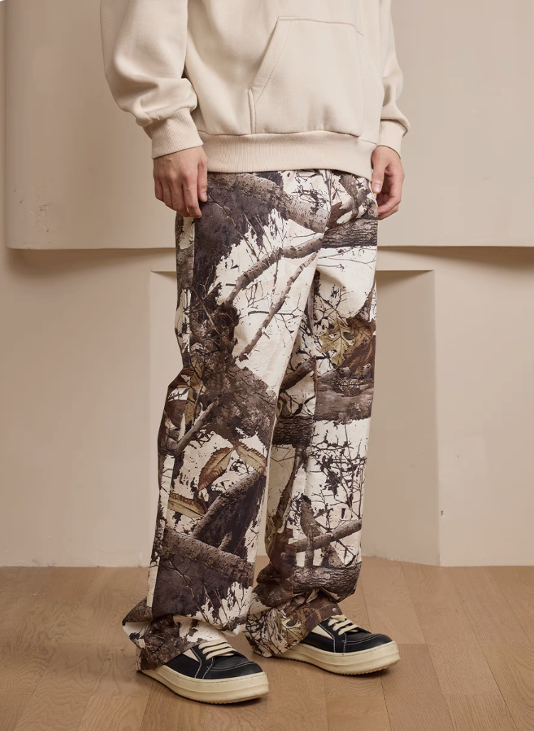 harsh and cruel 2025SS 美式 復古 枯葉樹枝 迷彩 Vibe 重磅直筒褲