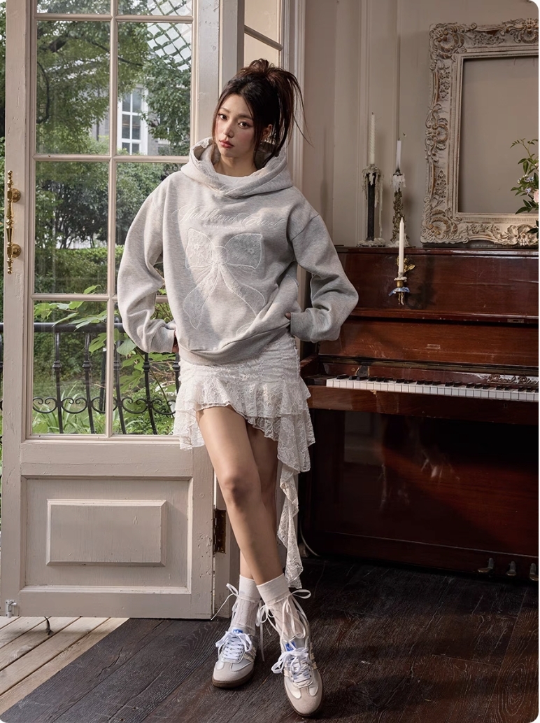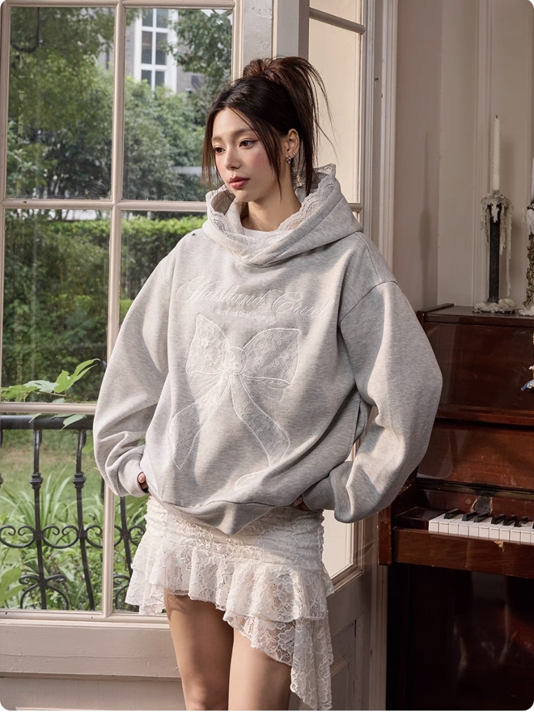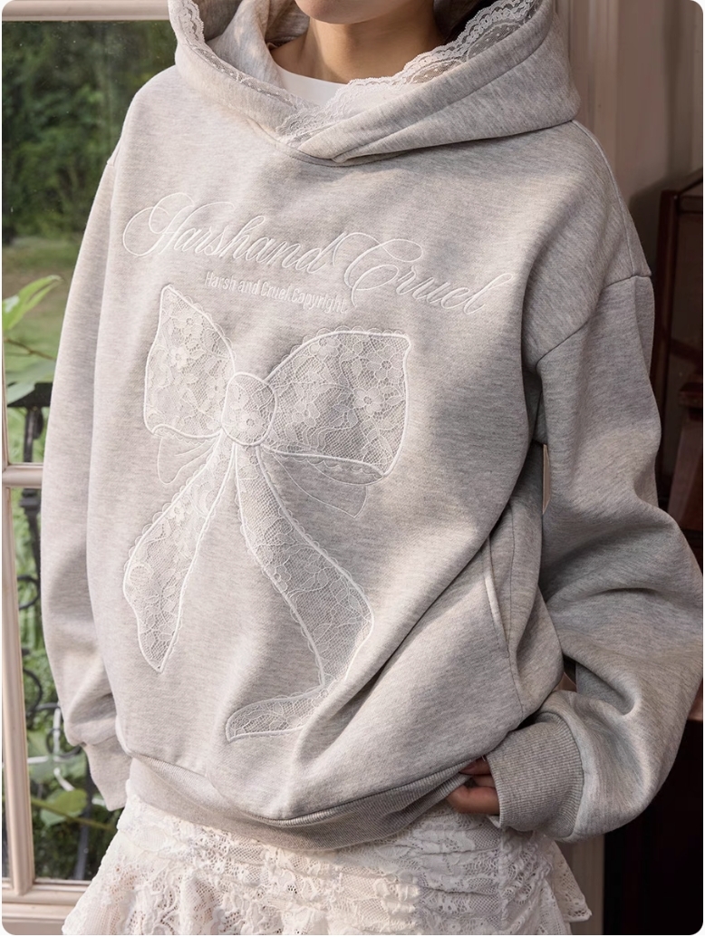 harsh and cruel 2025SS 芭蕾風 蕾絲 蝴蝶結 繡花 帽T