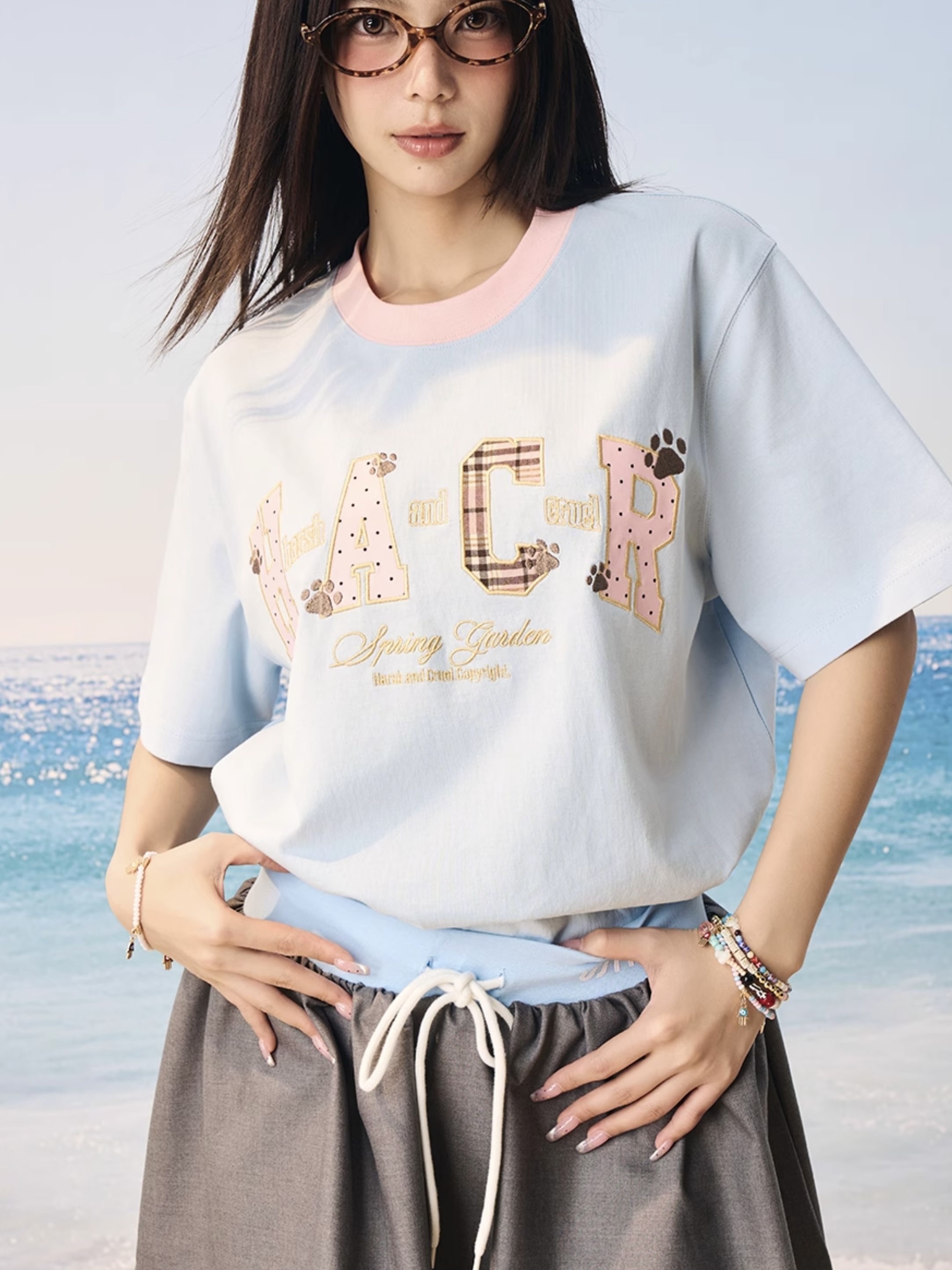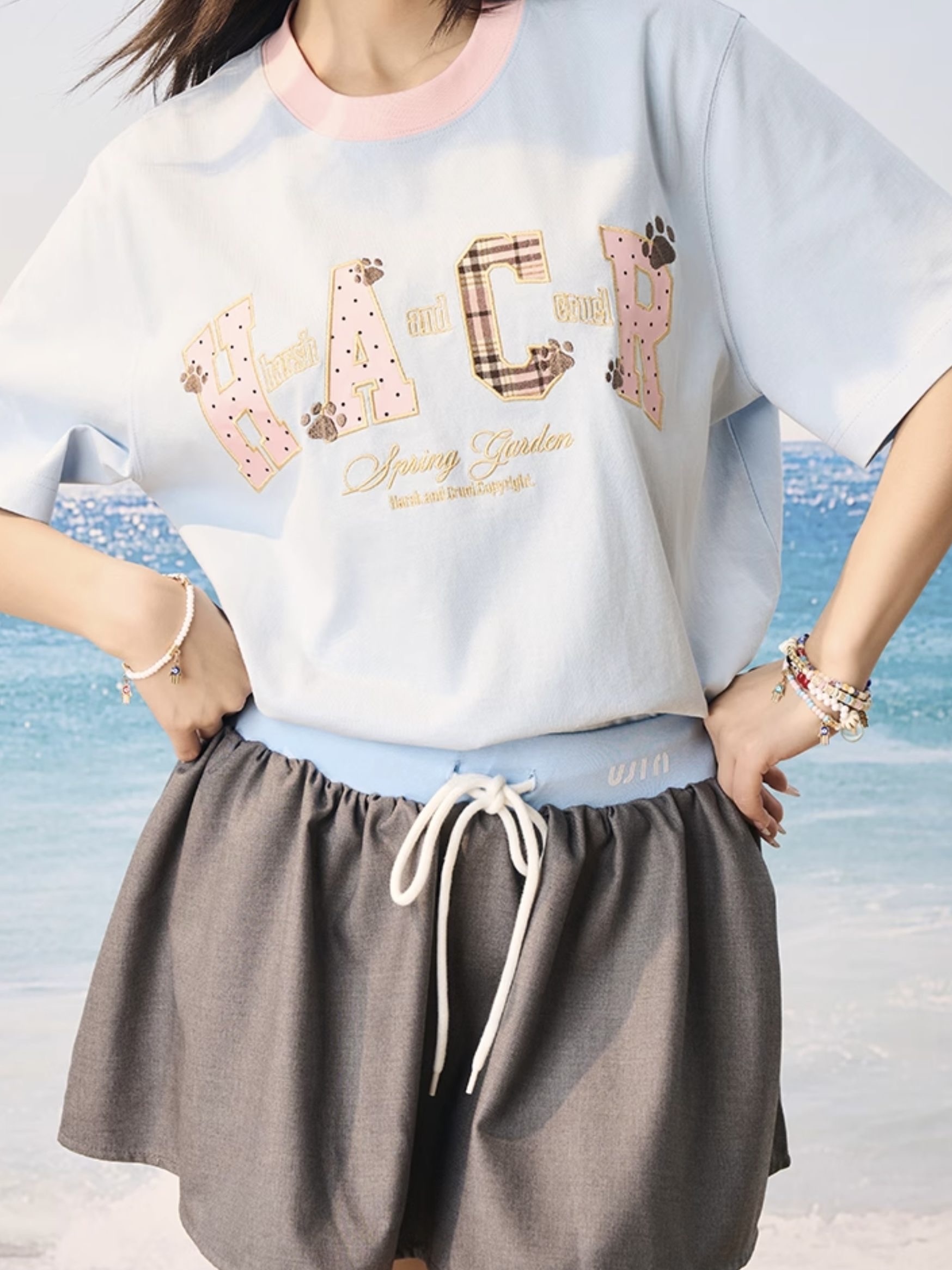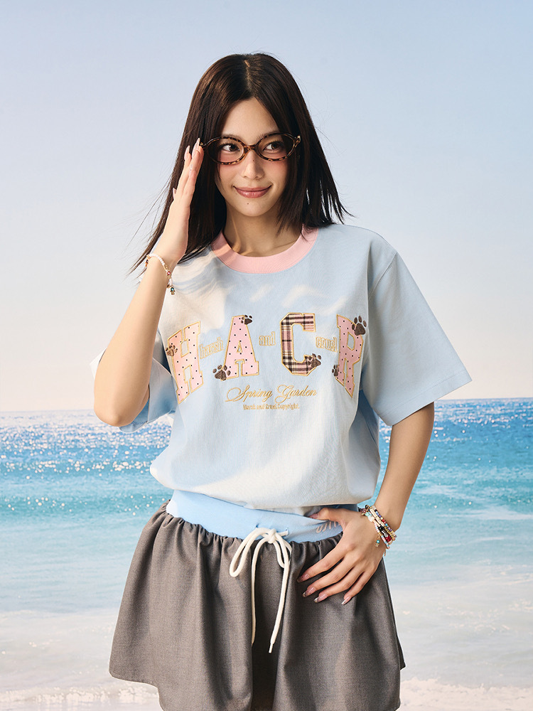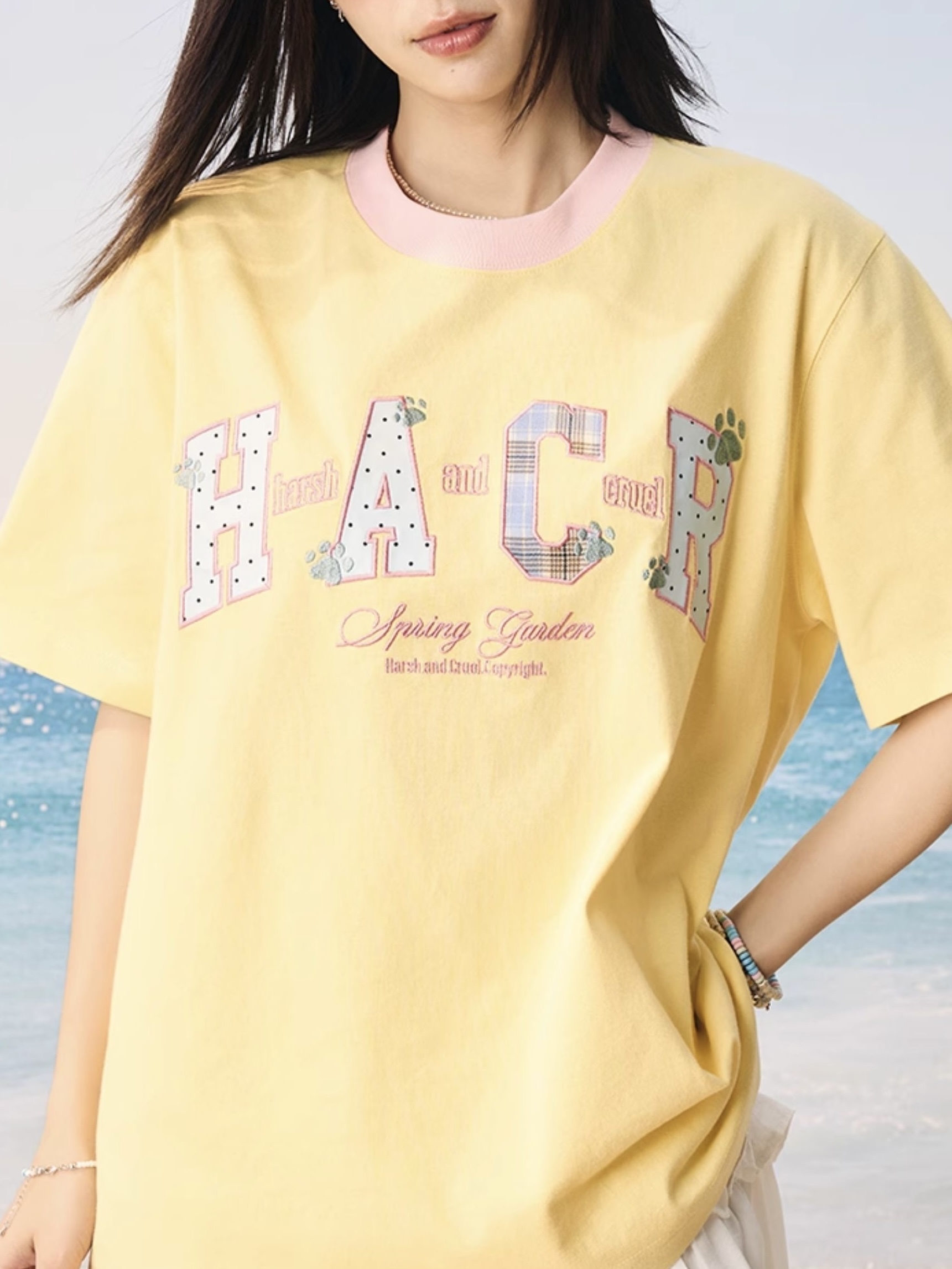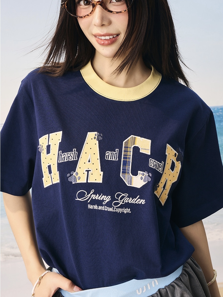 harsh and cruel 2025SS 涼感防曬 撞色格紋貼布 短袖