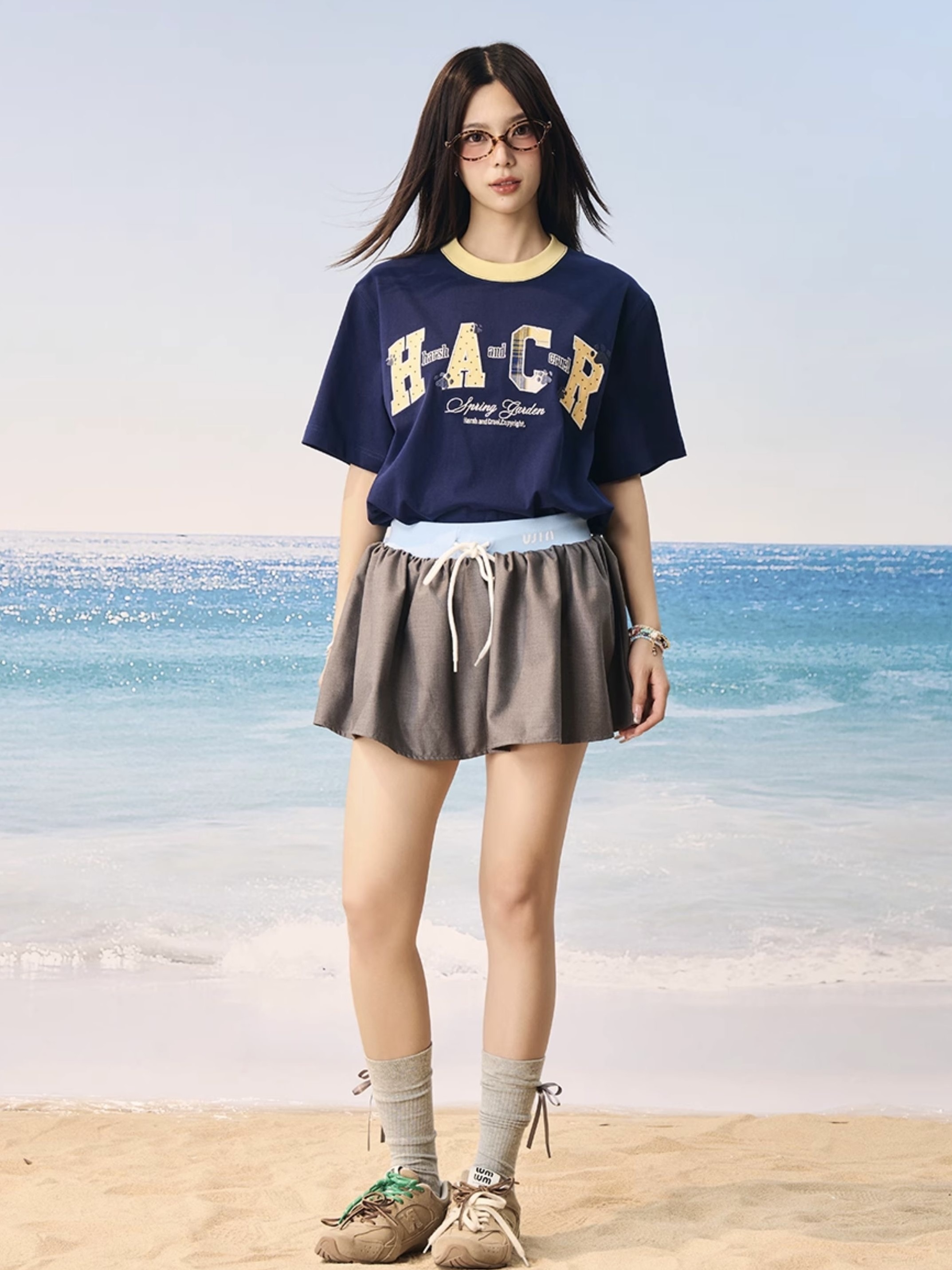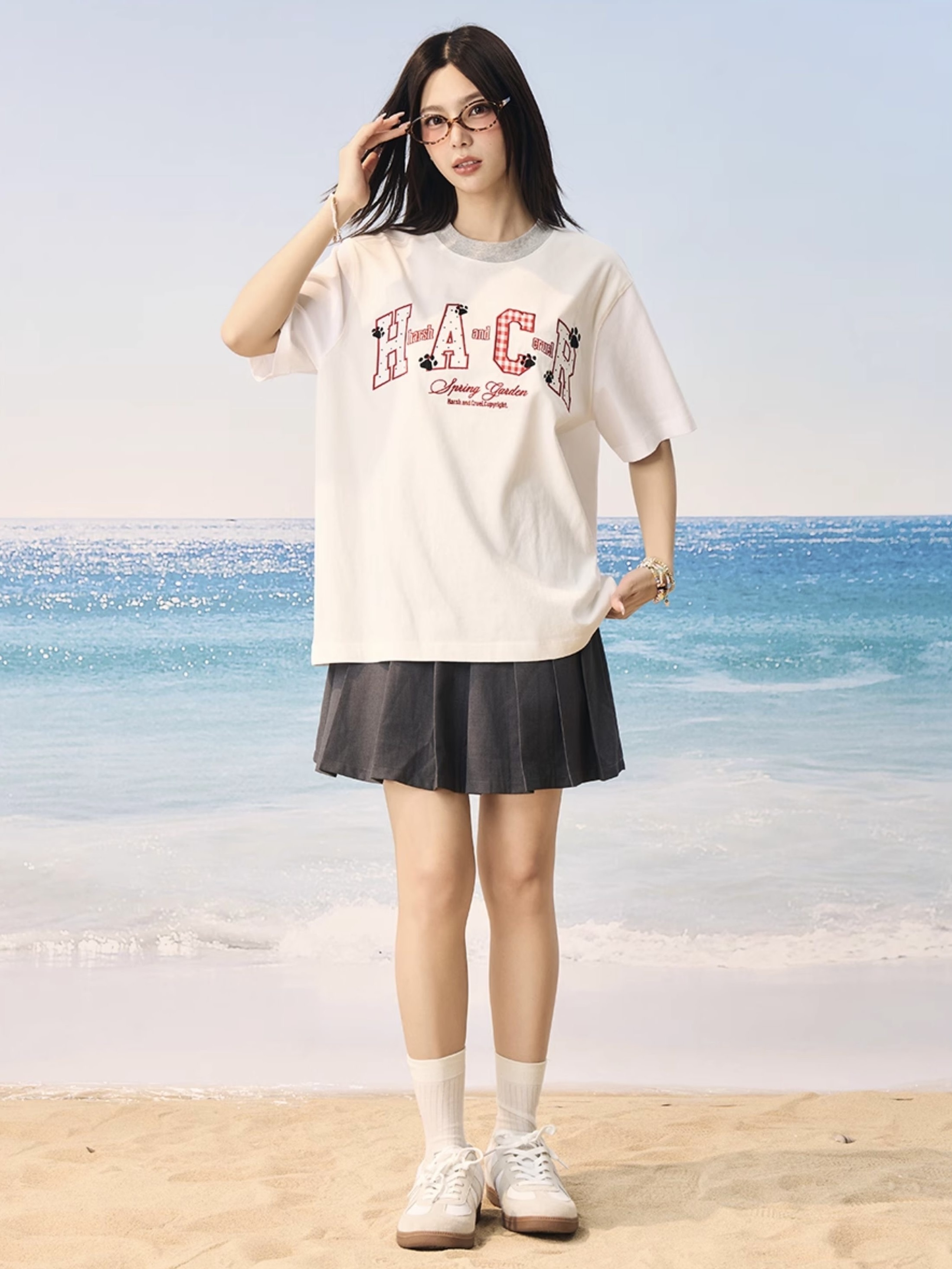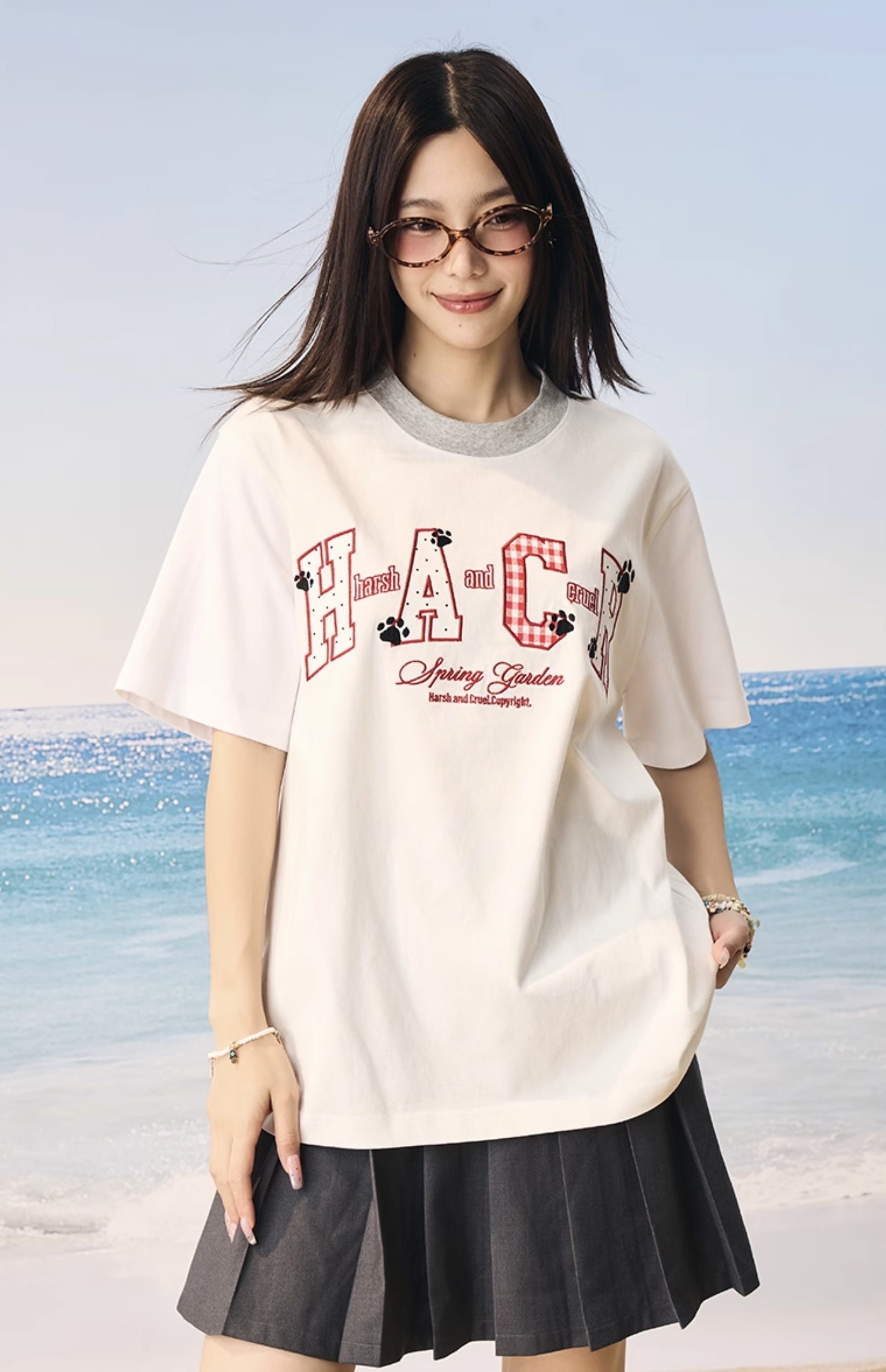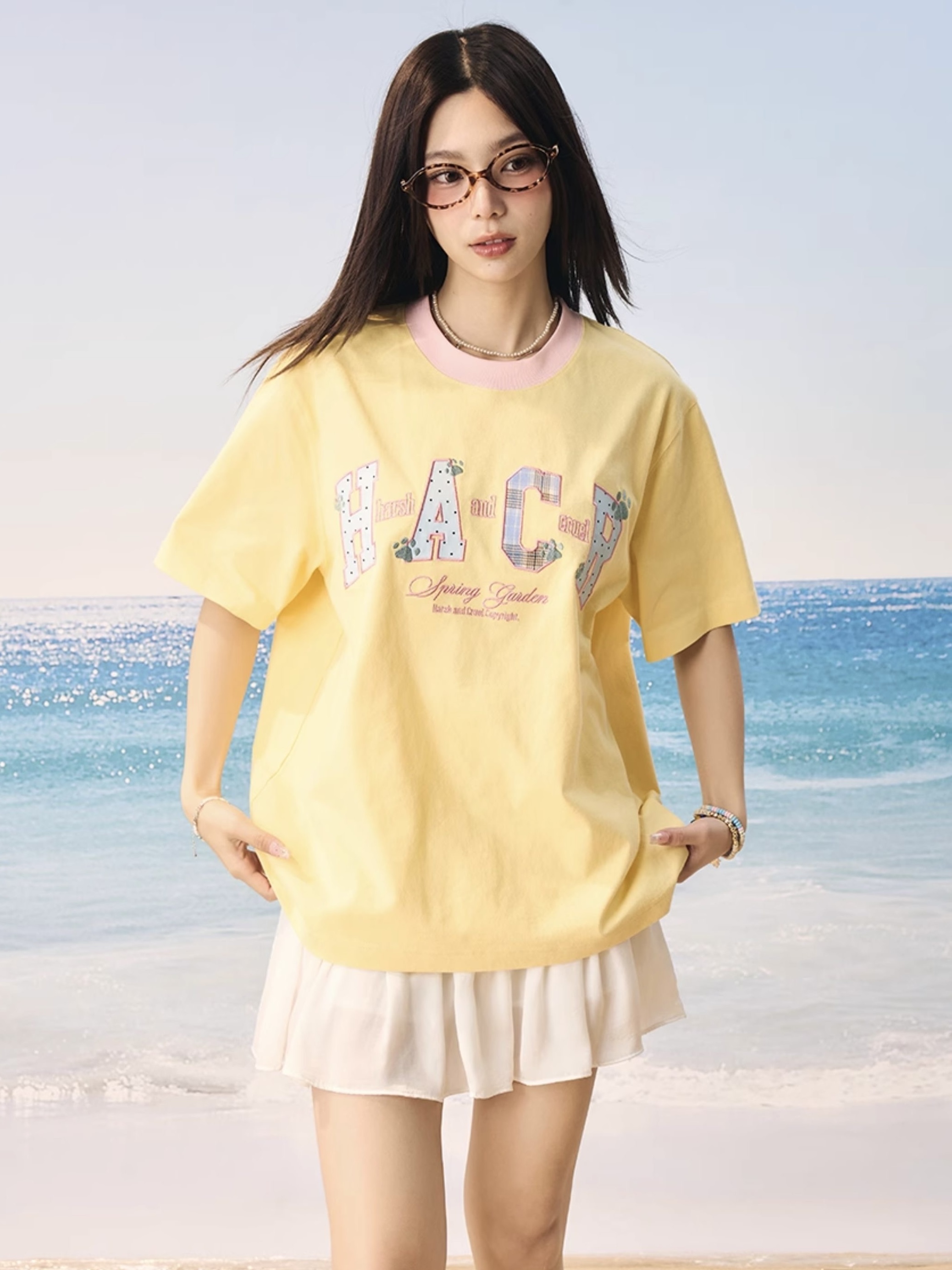 harsh and cruel 2025SS 涼感防曬 撞色格紋貼布 短袖