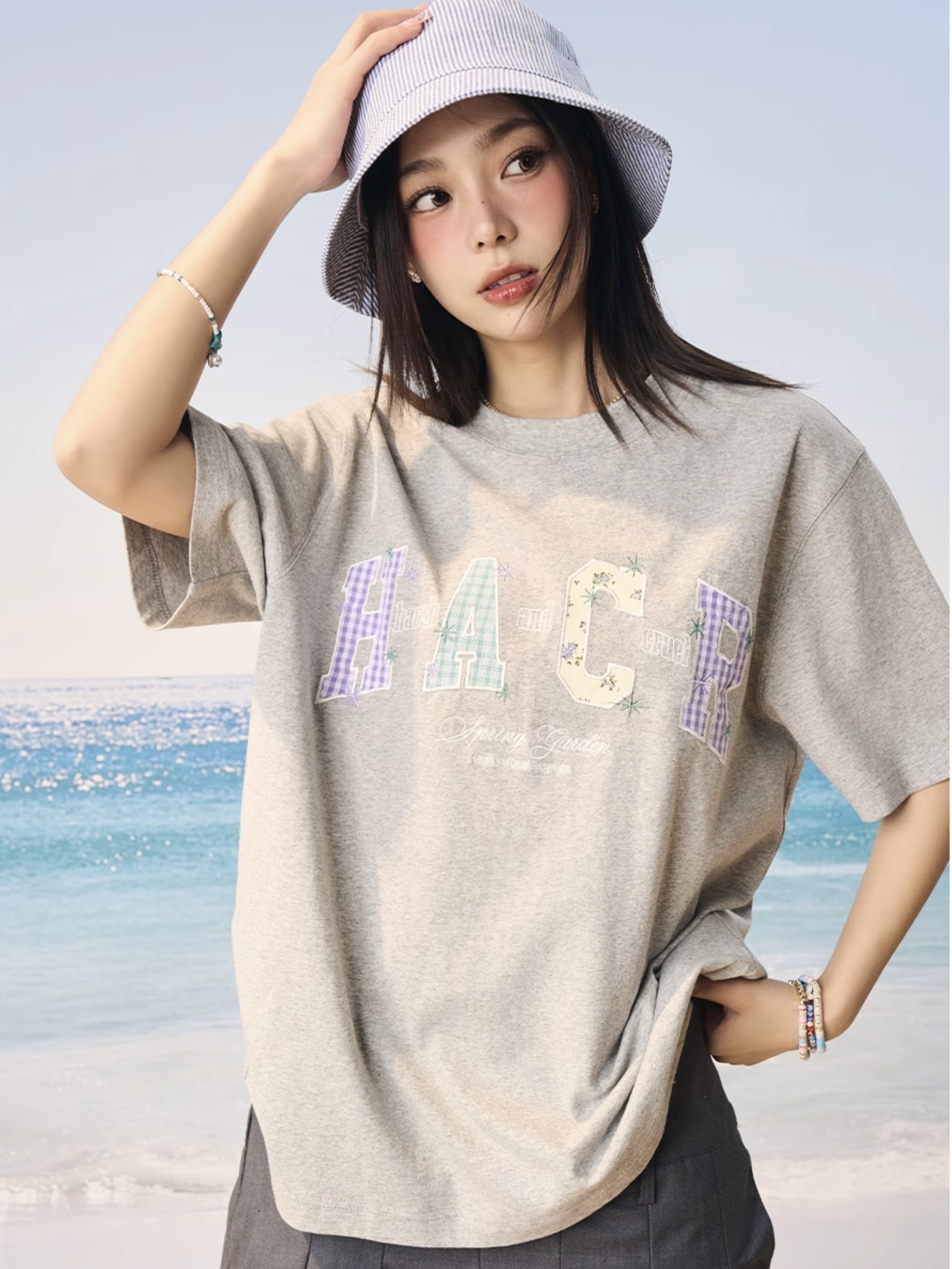 harsh and cruel 2025SS 涼感防曬 碎花格紋貼布 短袖
