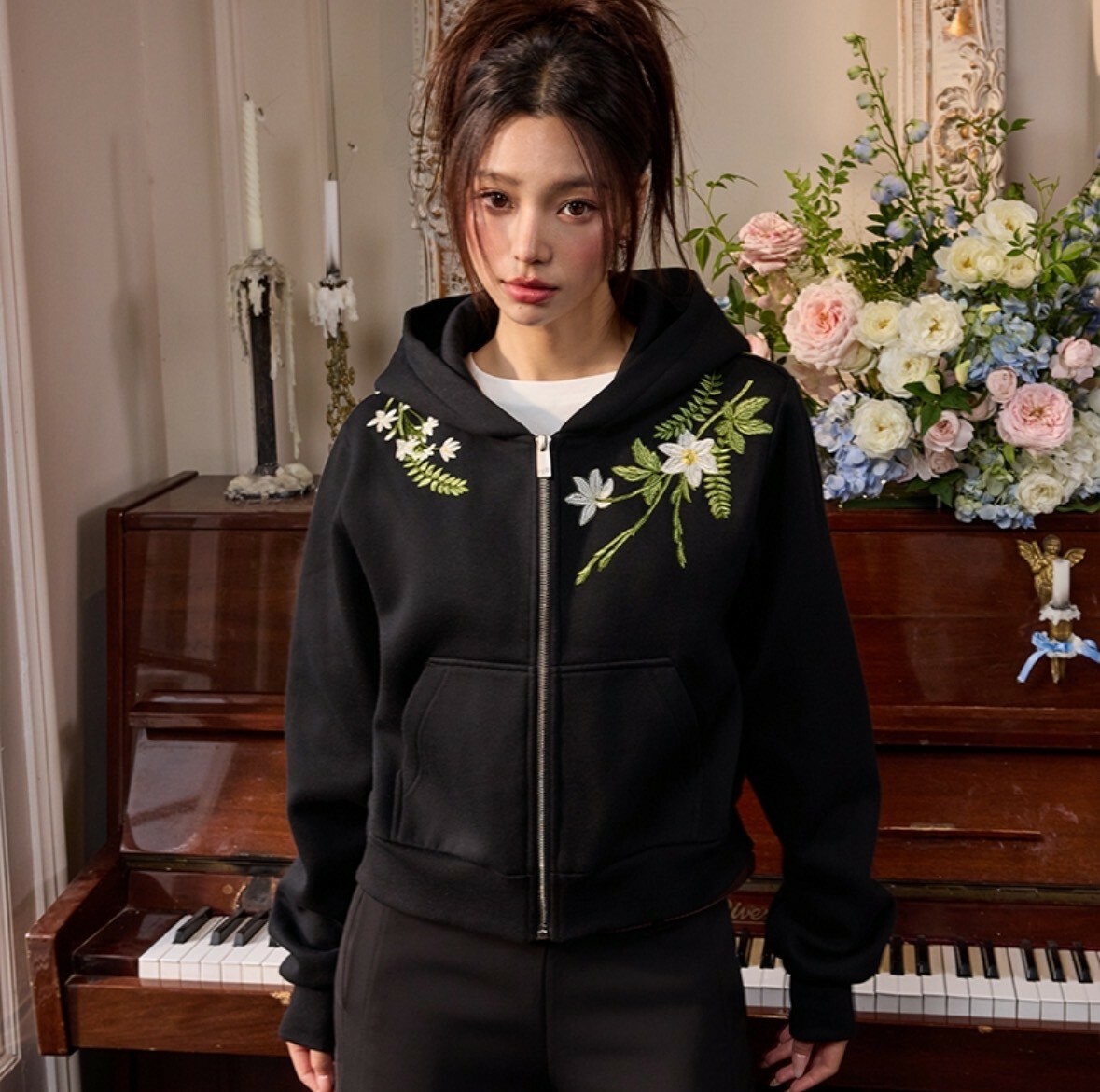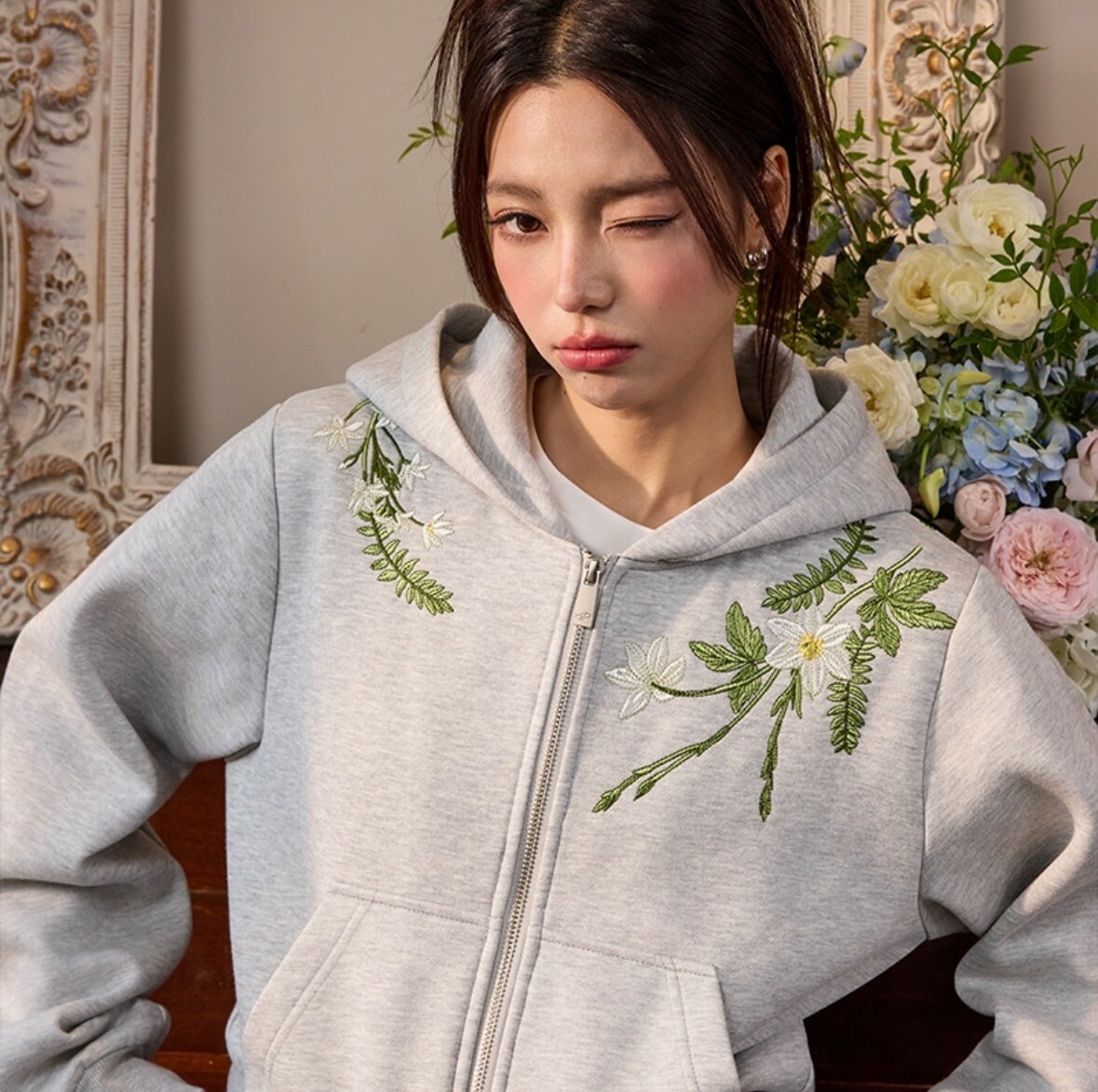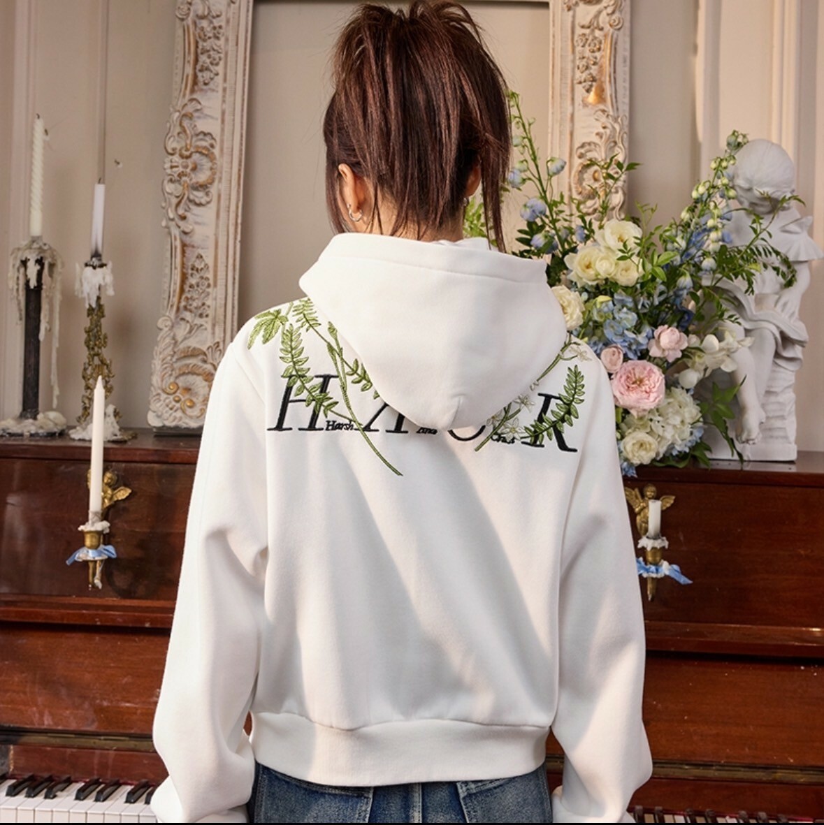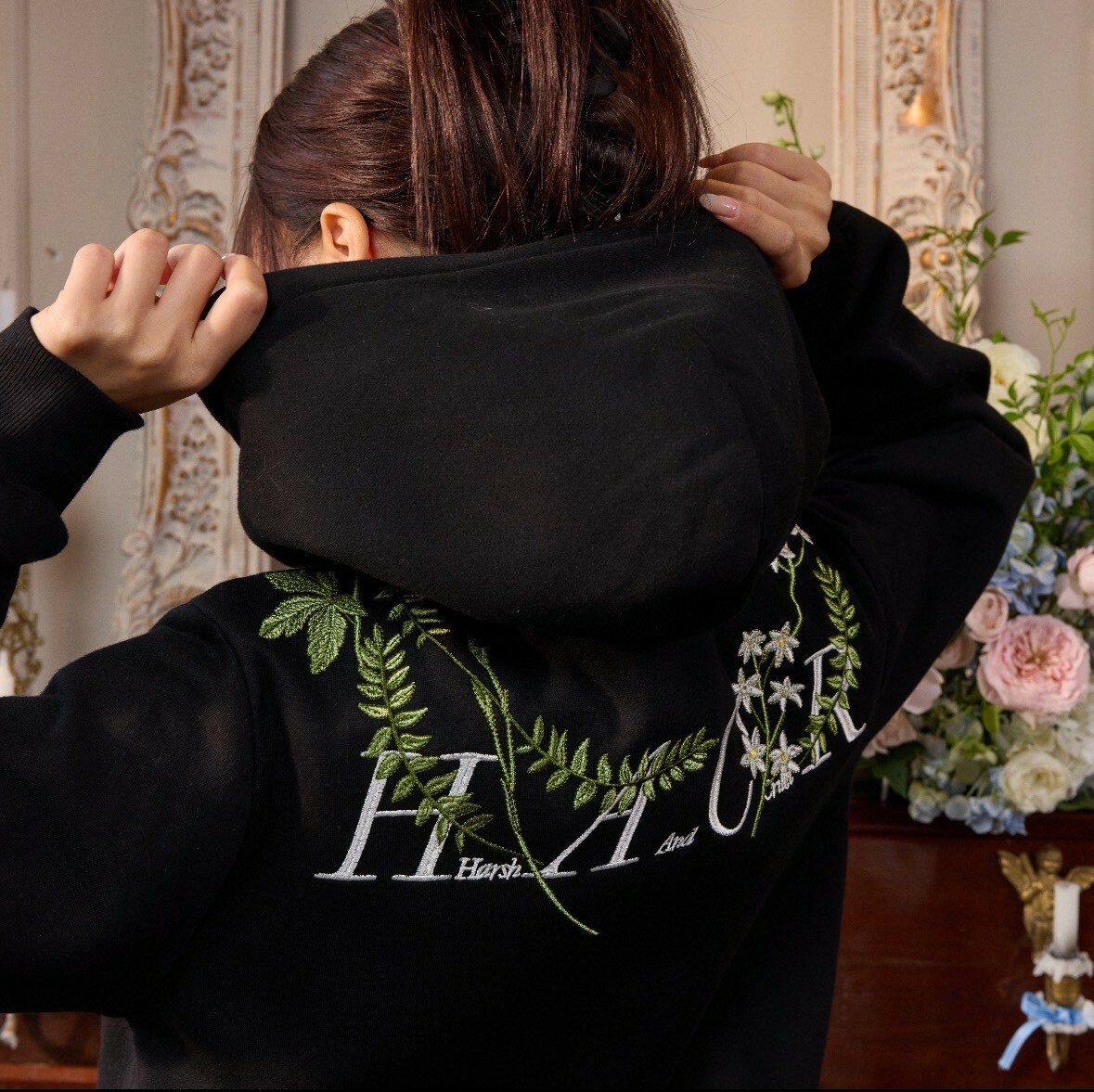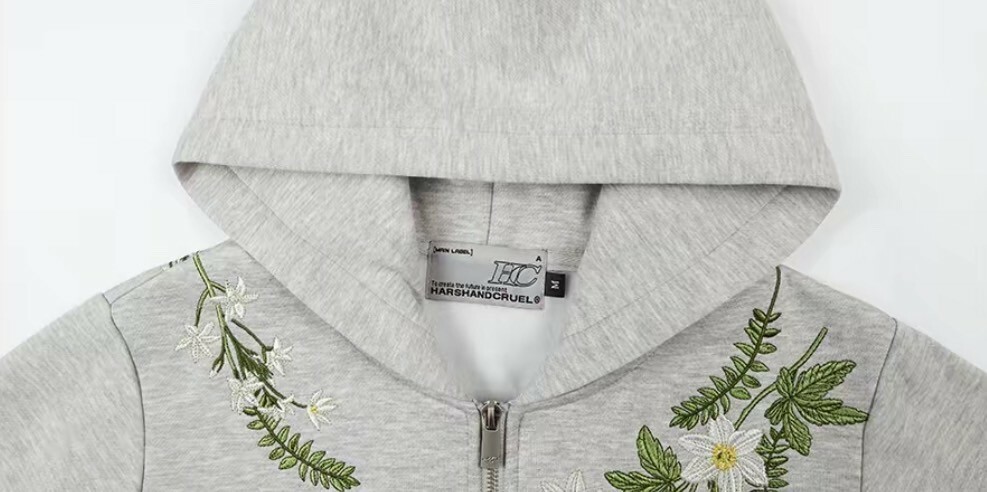 harsh and cruel 2025SS 新中式 花卉刺繡 LOGO 短版 女款 連帽外套
