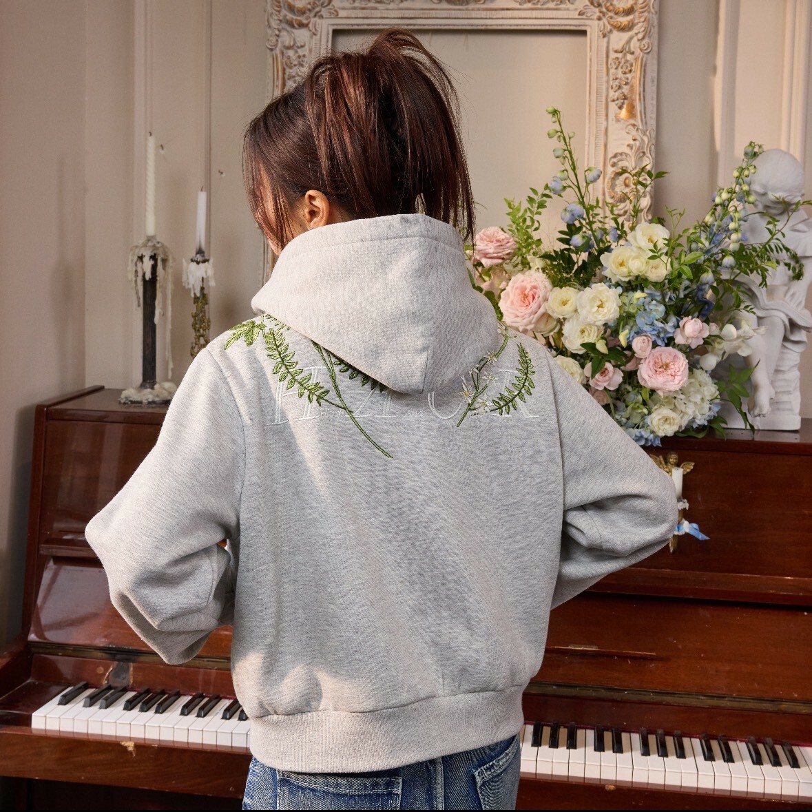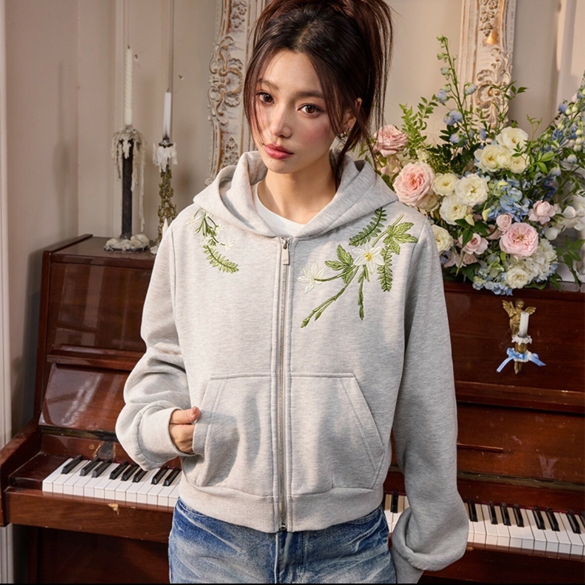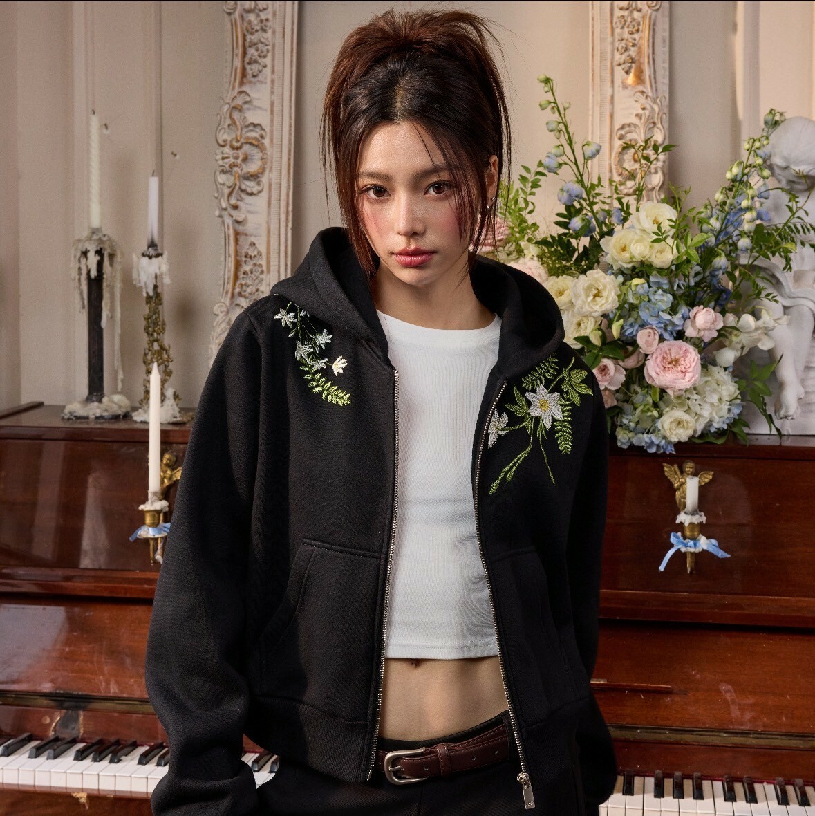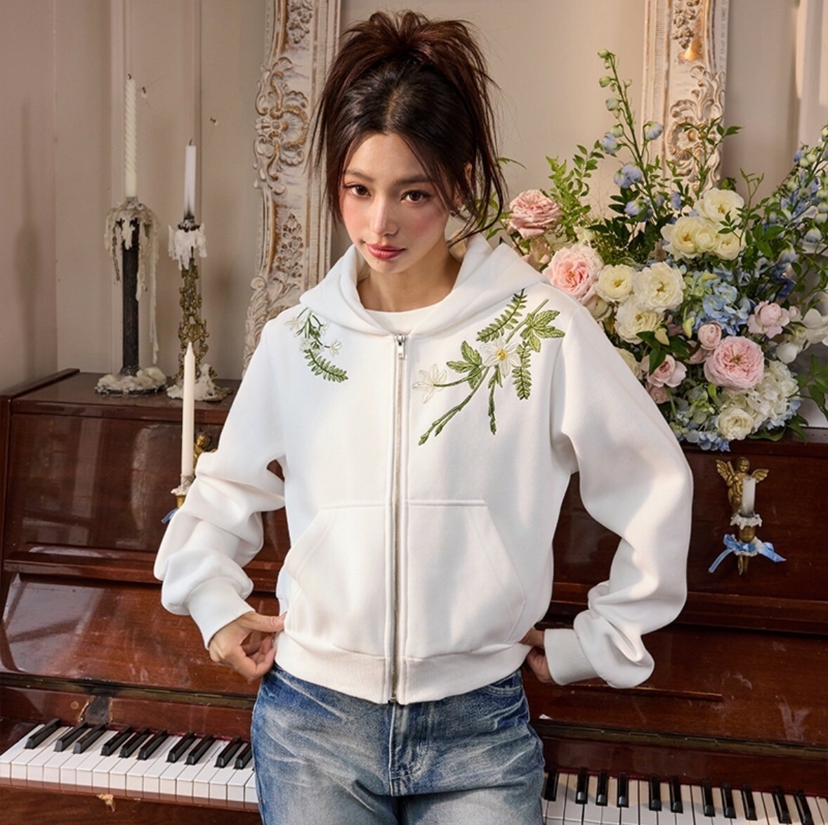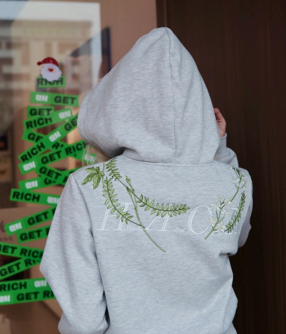 harsh and cruel 2025SS 新中式 花卉刺繡 LOGO 短版 女款 連帽外套