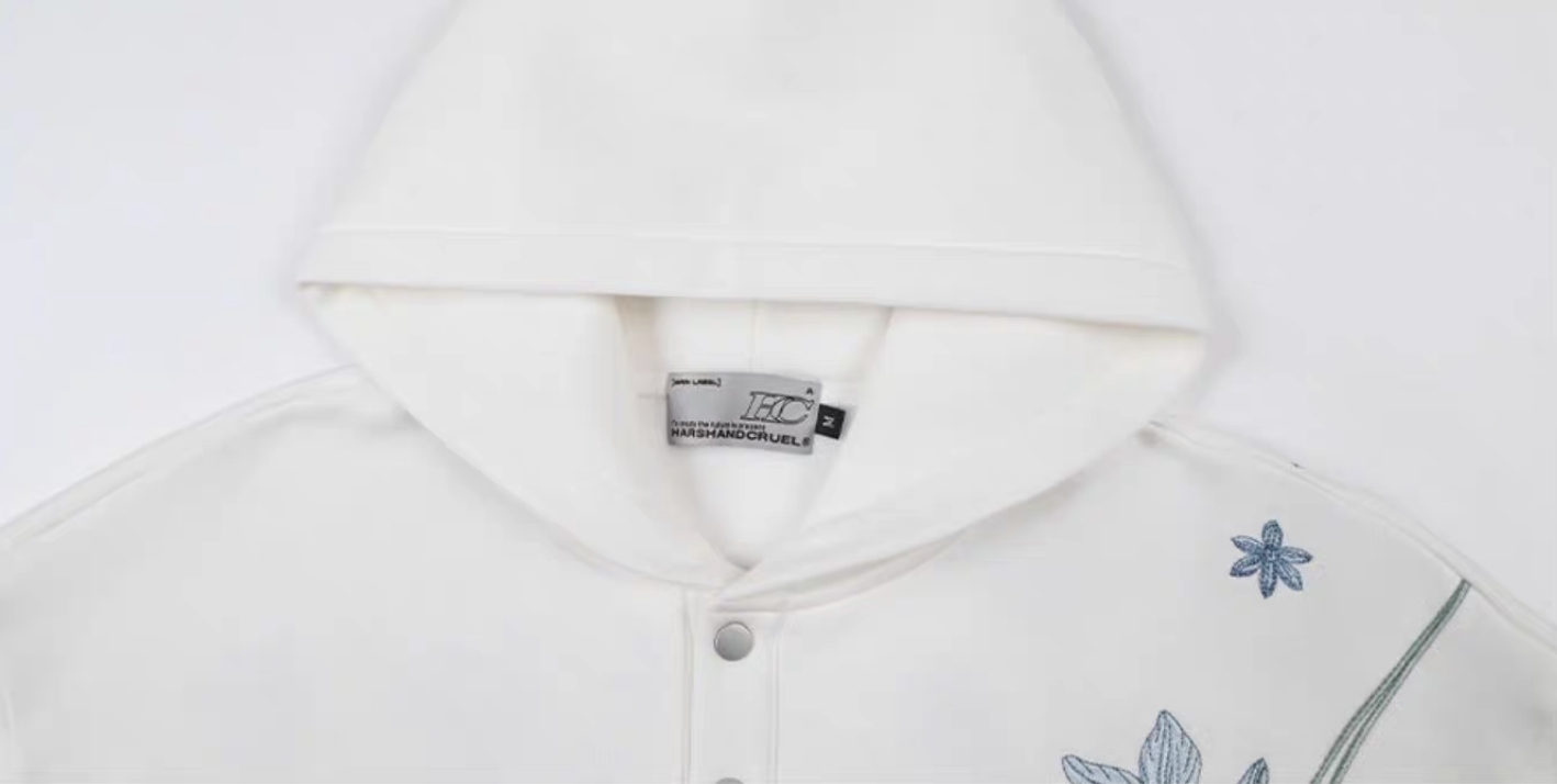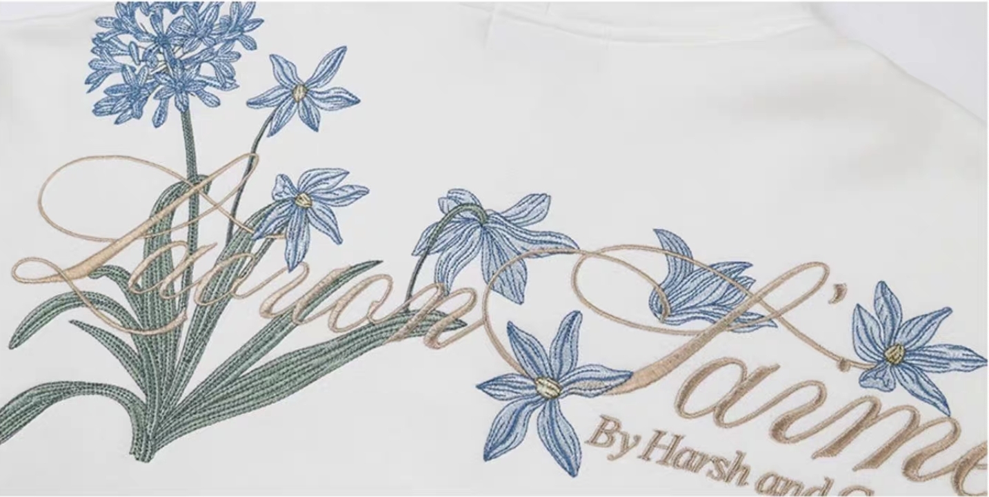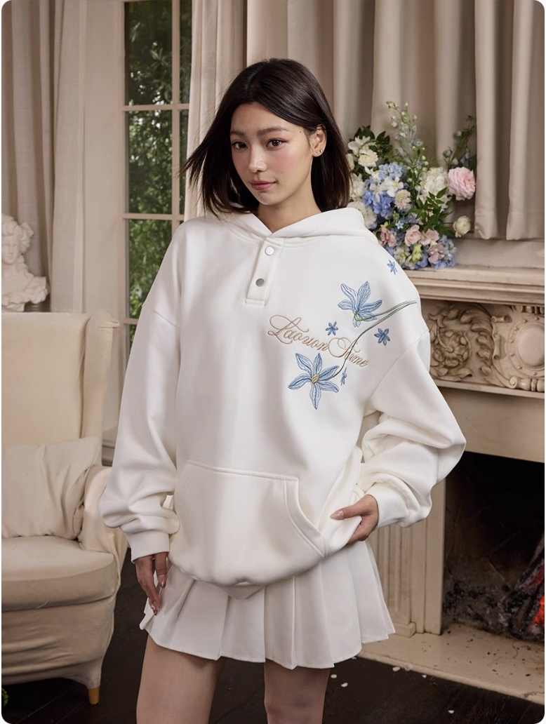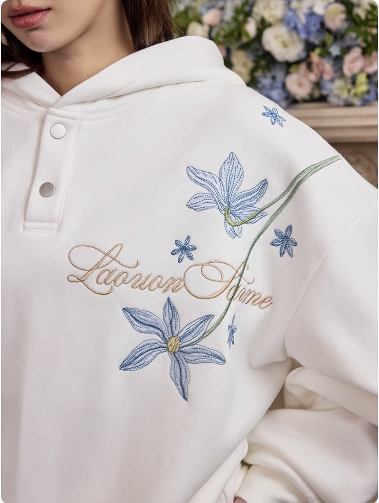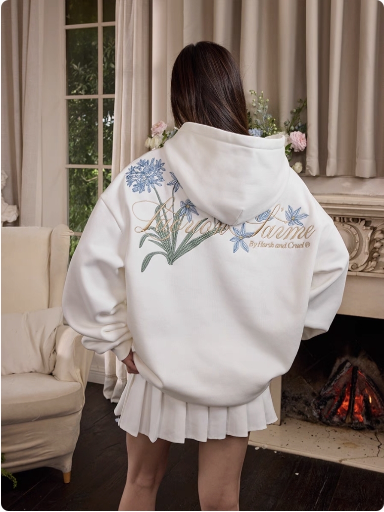 harsh and cruel 2025SS 新中式 過肩藍色花叢 花卉刺繡 帽T