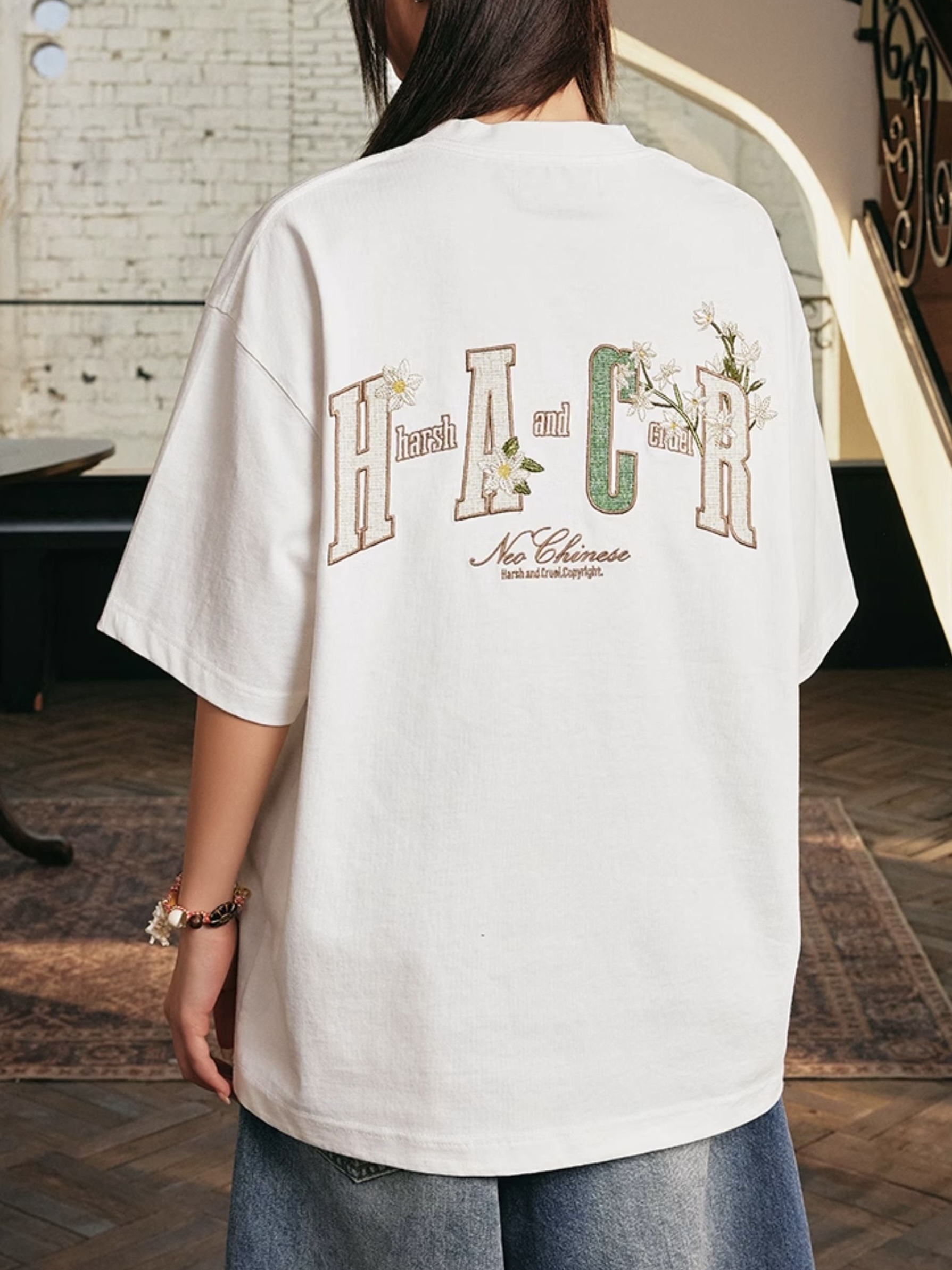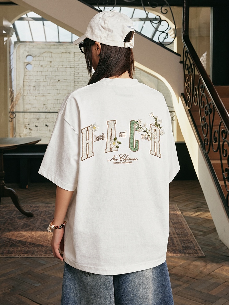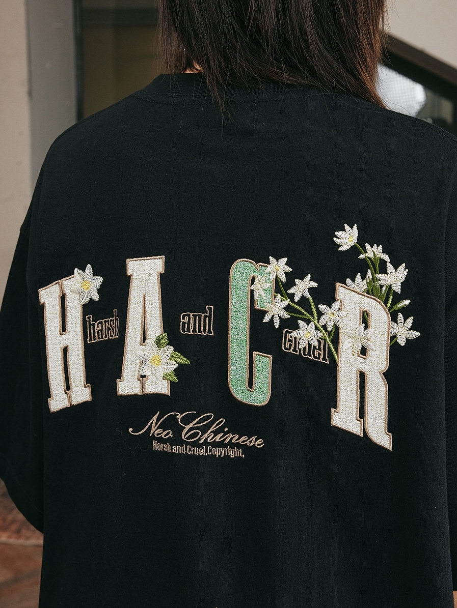 harsh and cruel 2025SS 植物花卉 刺繡貼布 寬鬆短袖