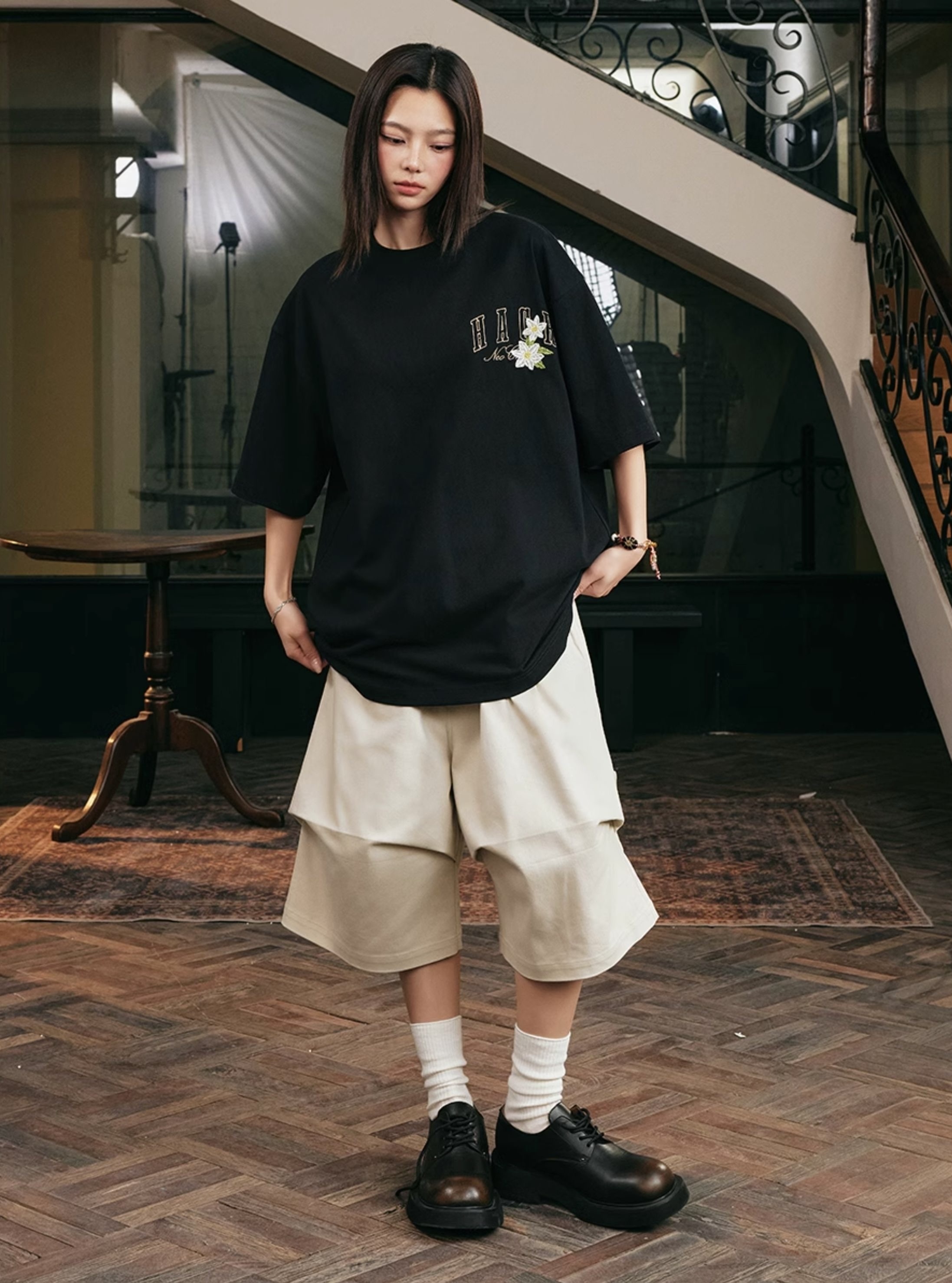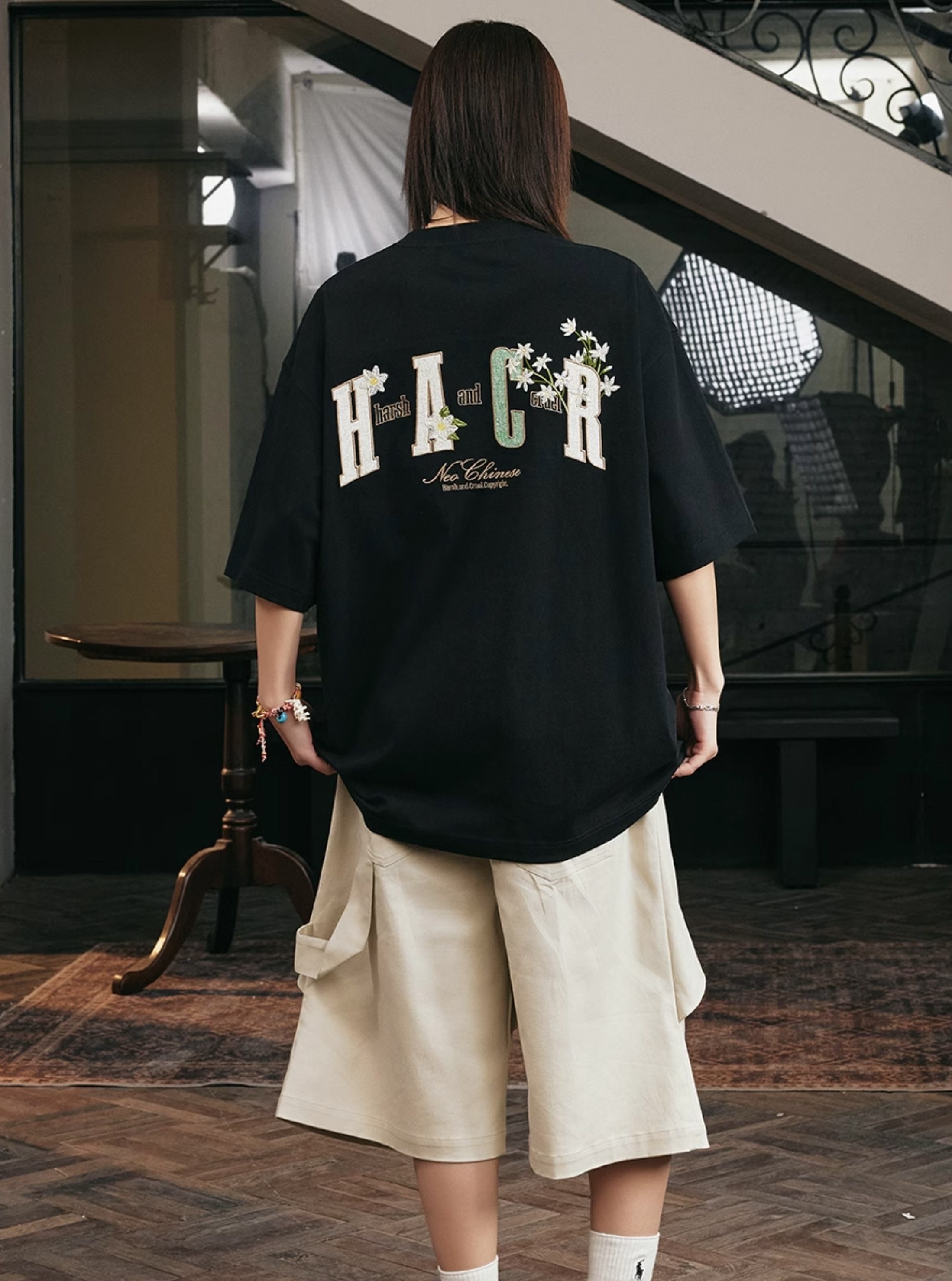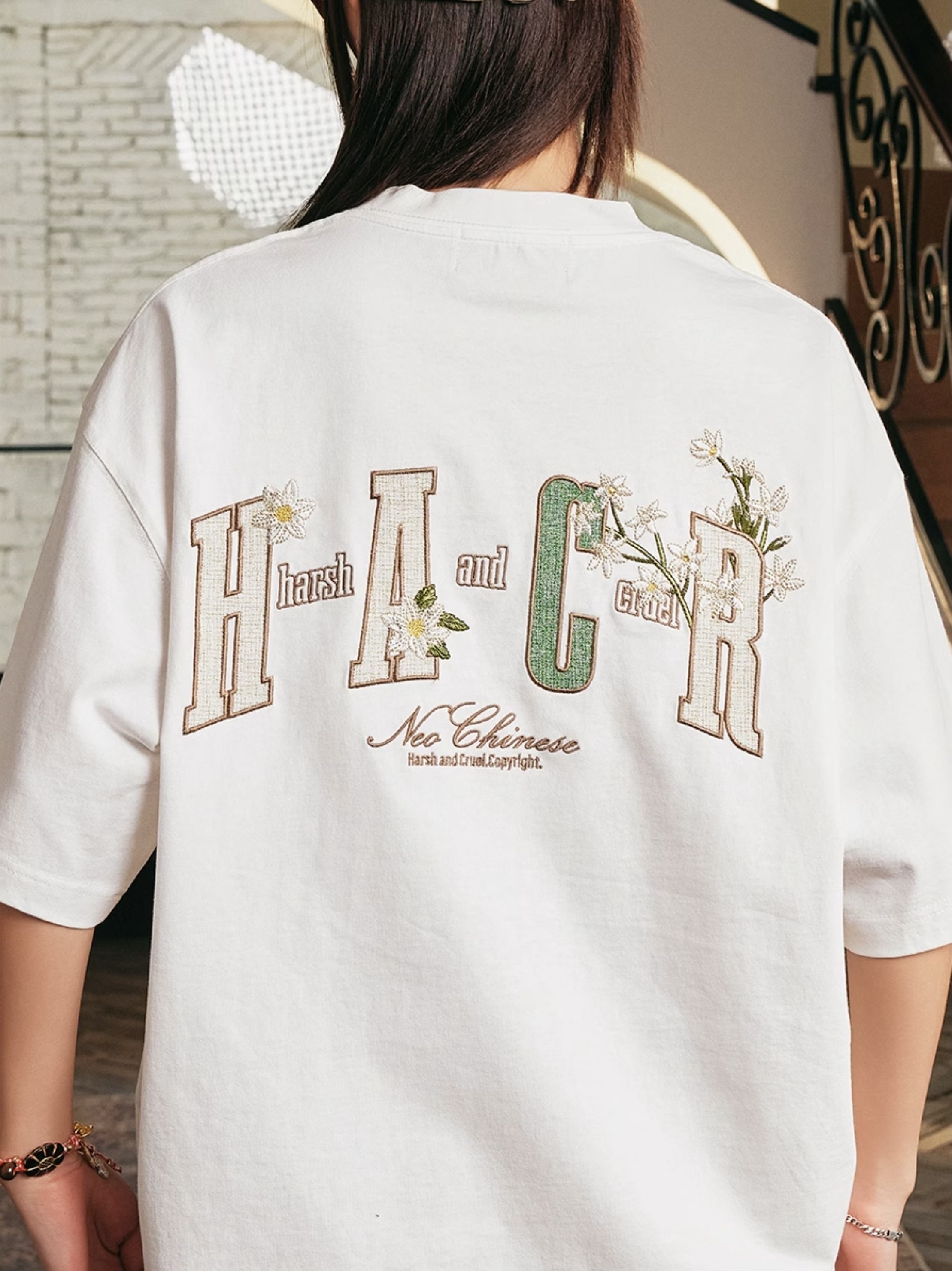 harsh and cruel 2025SS 植物花卉 刺繡貼布 寬鬆短袖