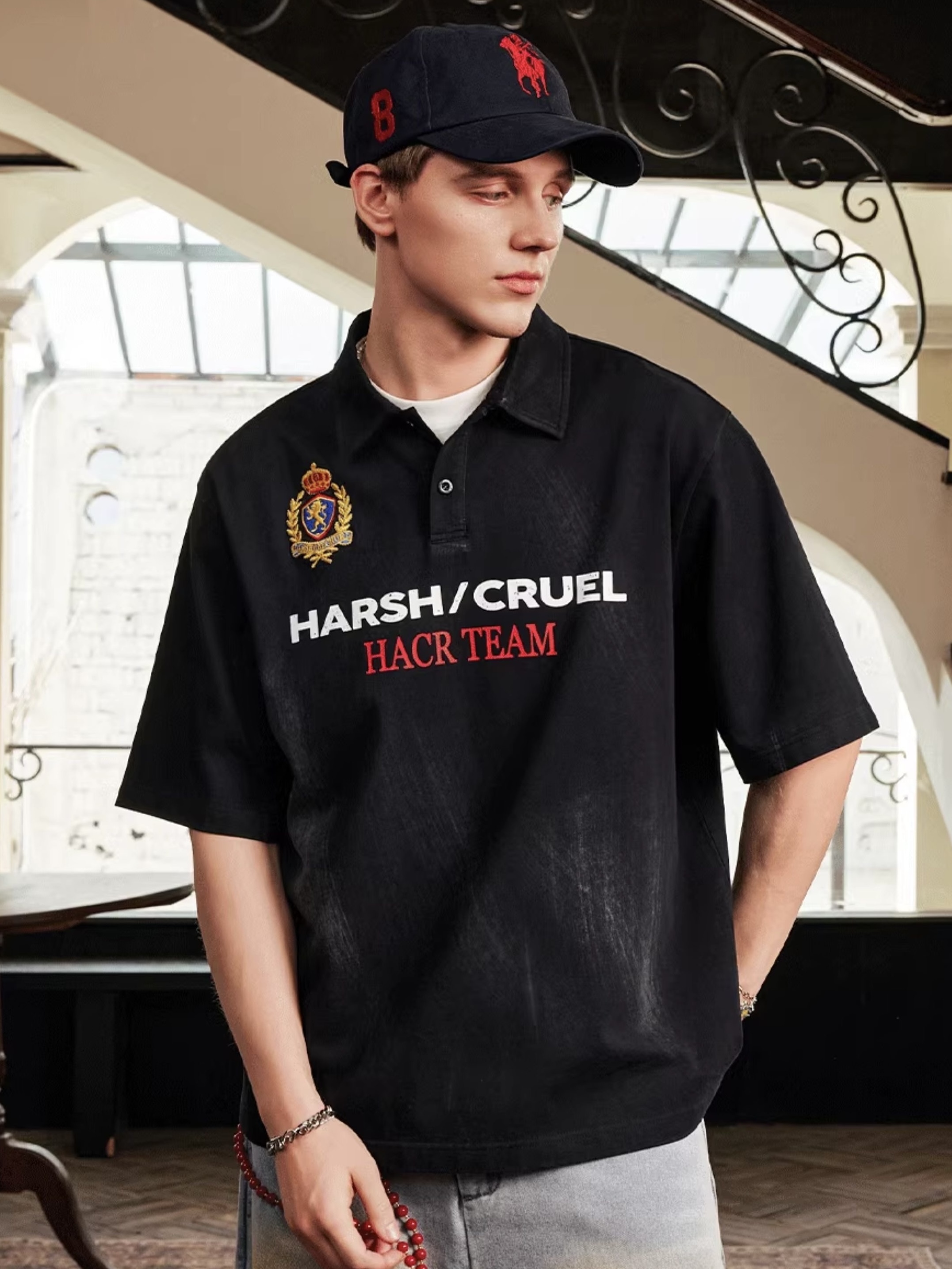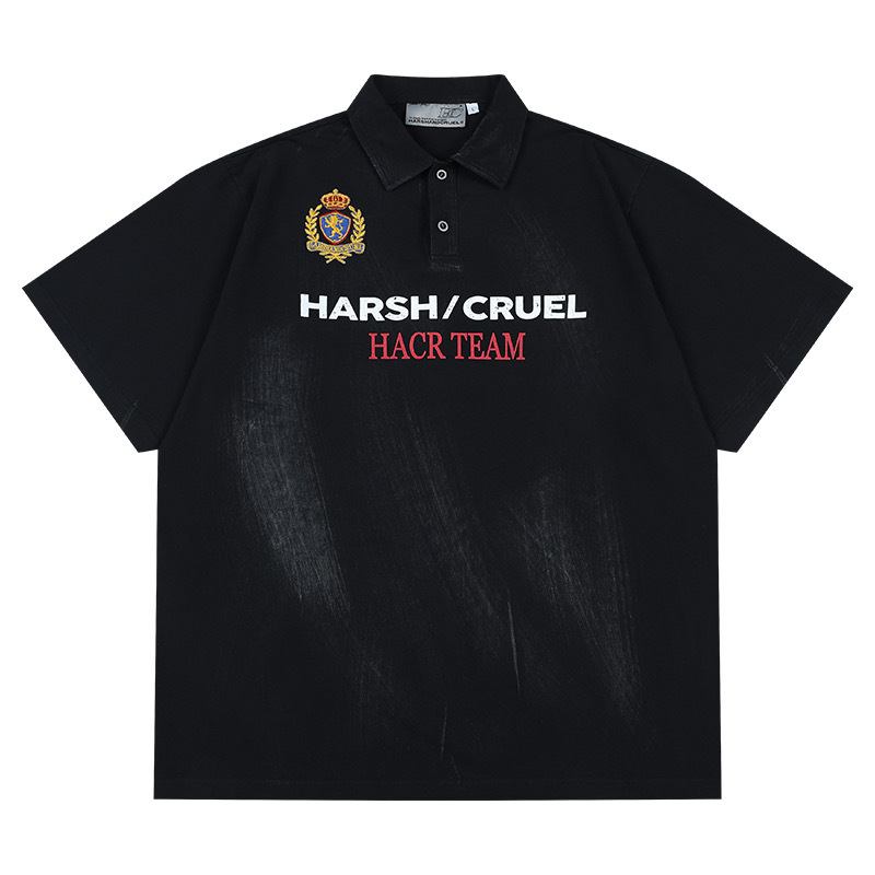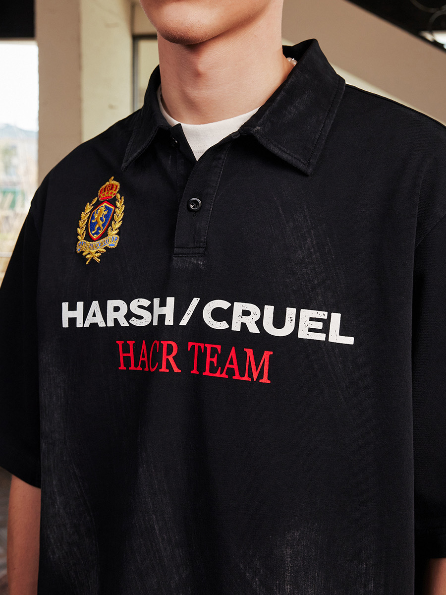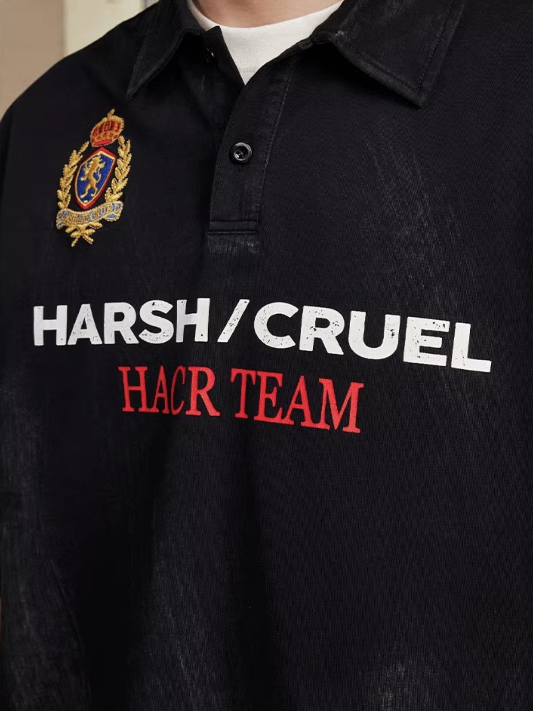 harsh and cruel 2025SS 復古運動 刺繡徽章 做舊polo衫