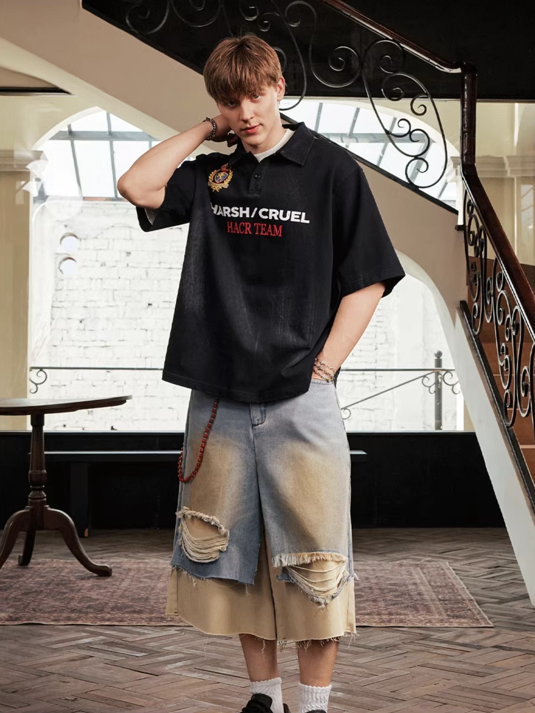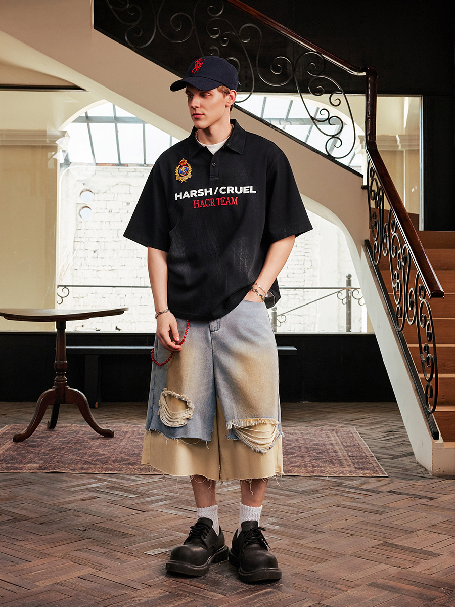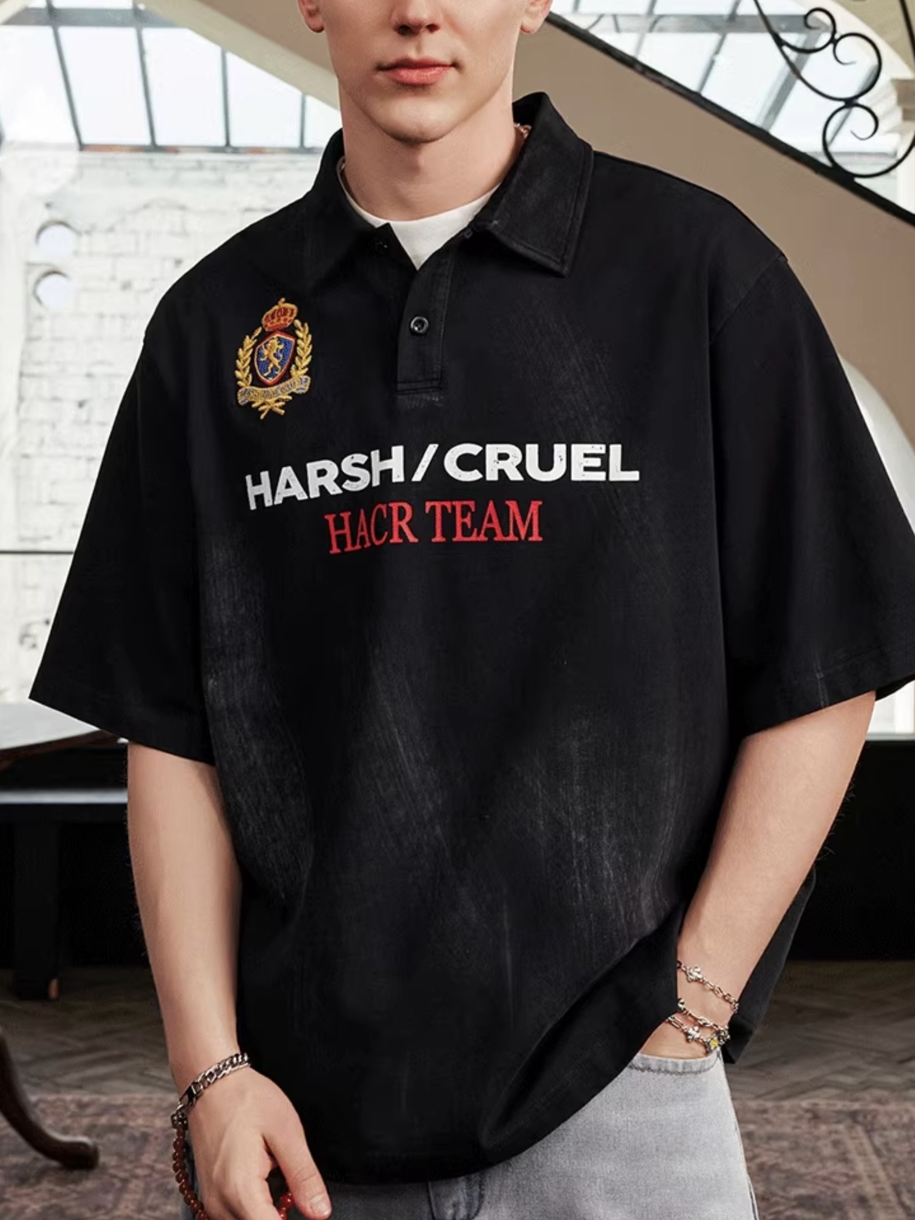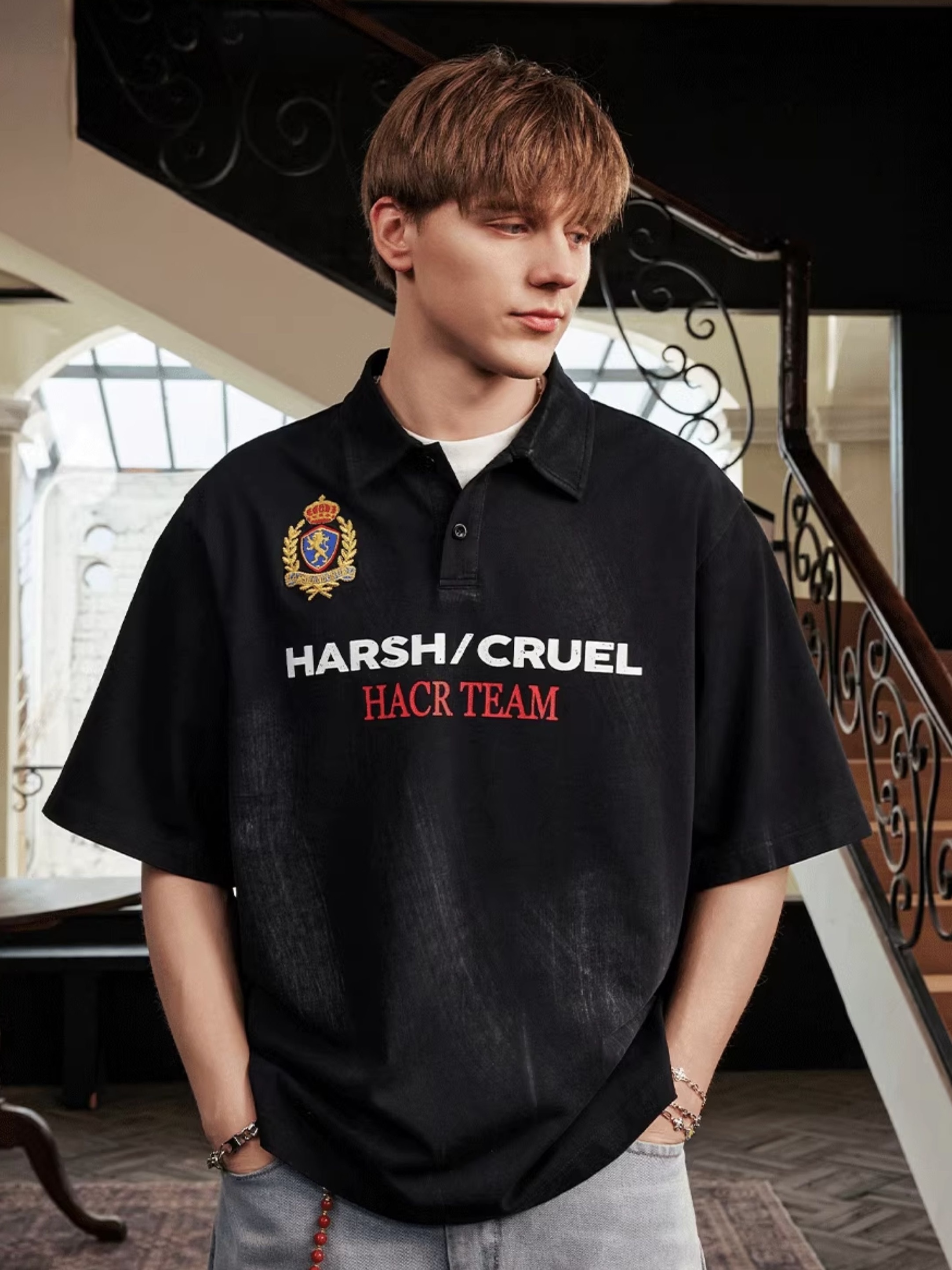 harsh and cruel 2025SS 復古運動 刺繡徽章 做舊polo衫