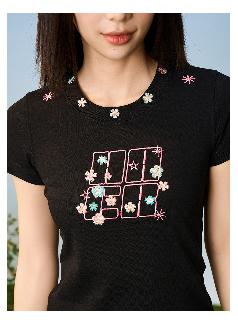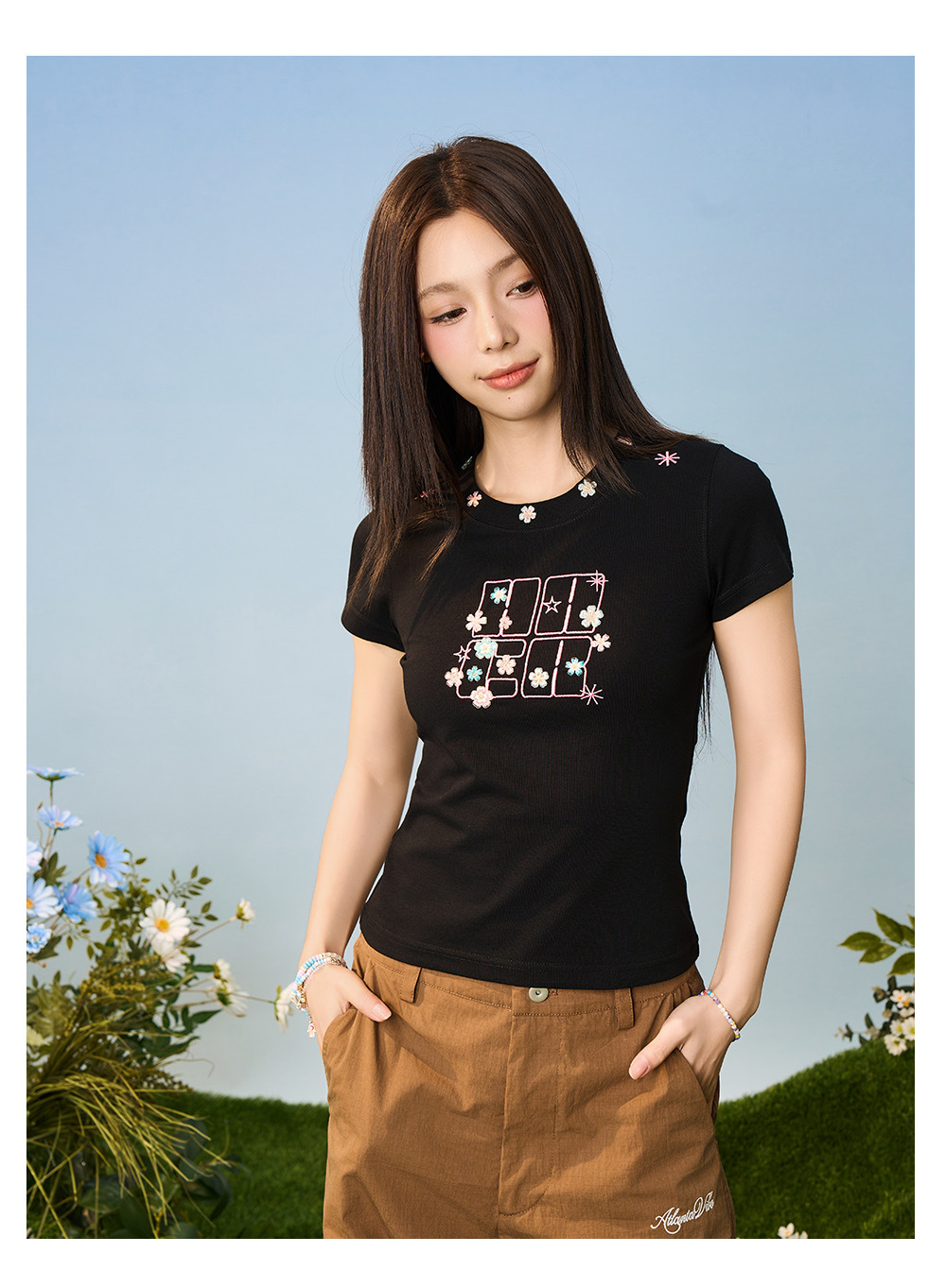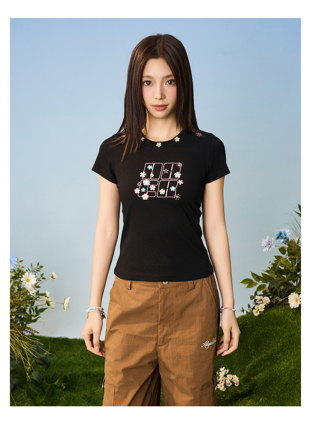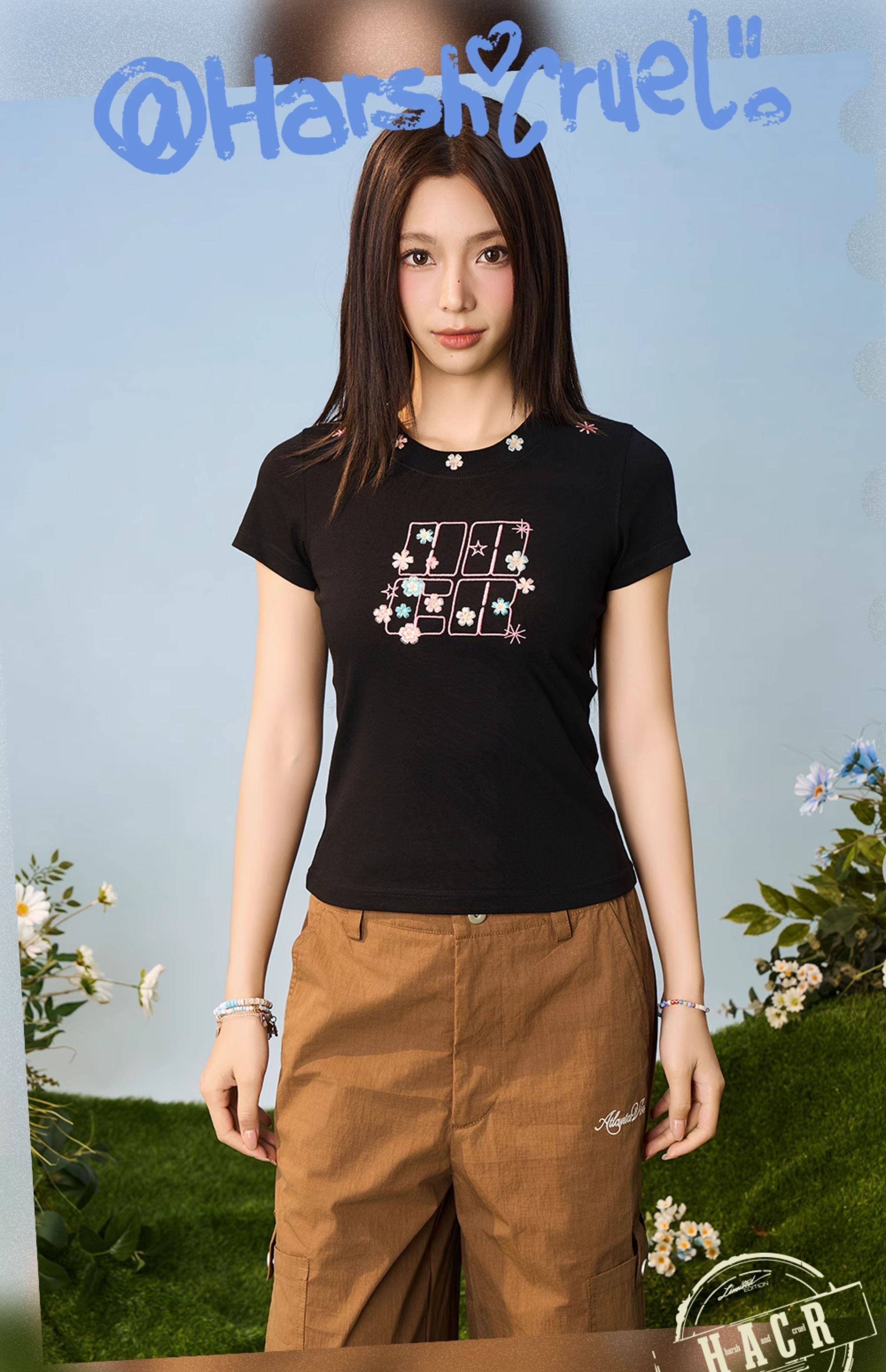 harsh and cruel 2025SS 元氣花朵刺繡 女款 修身短袖