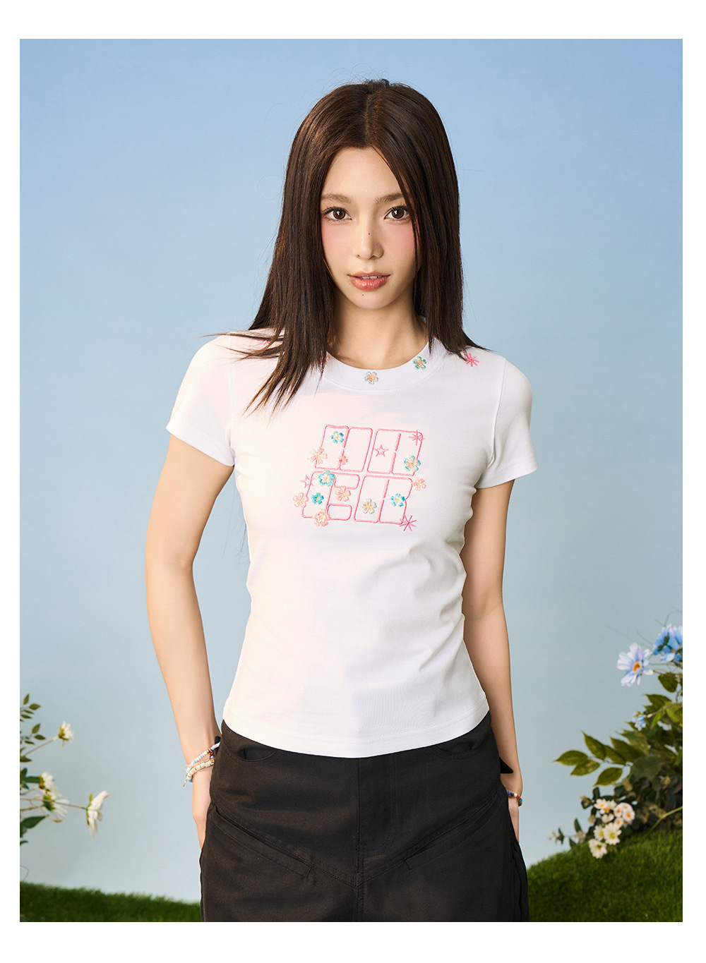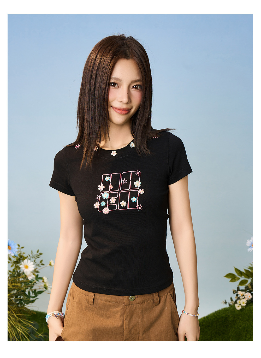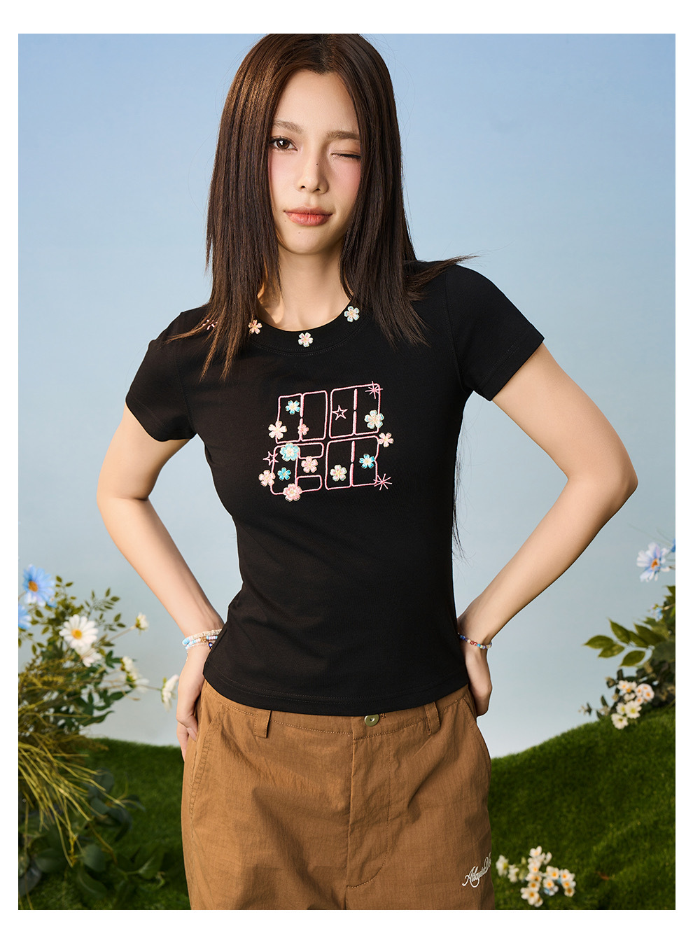 harsh and cruel 2025SS 元氣花朵刺繡 女款 修身短袖