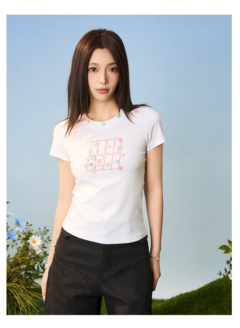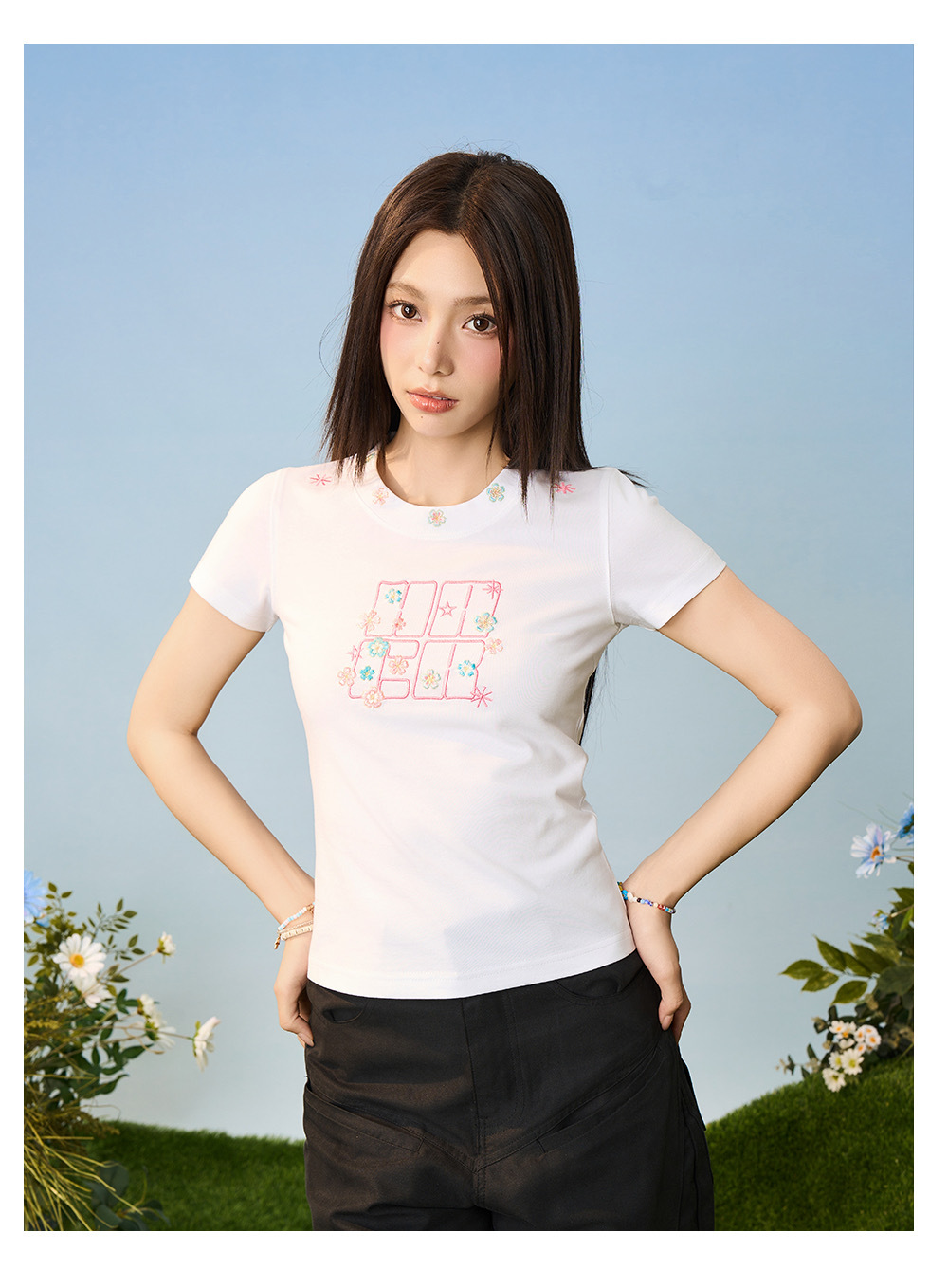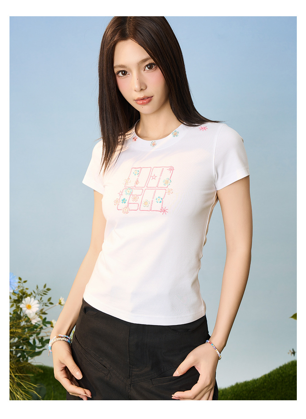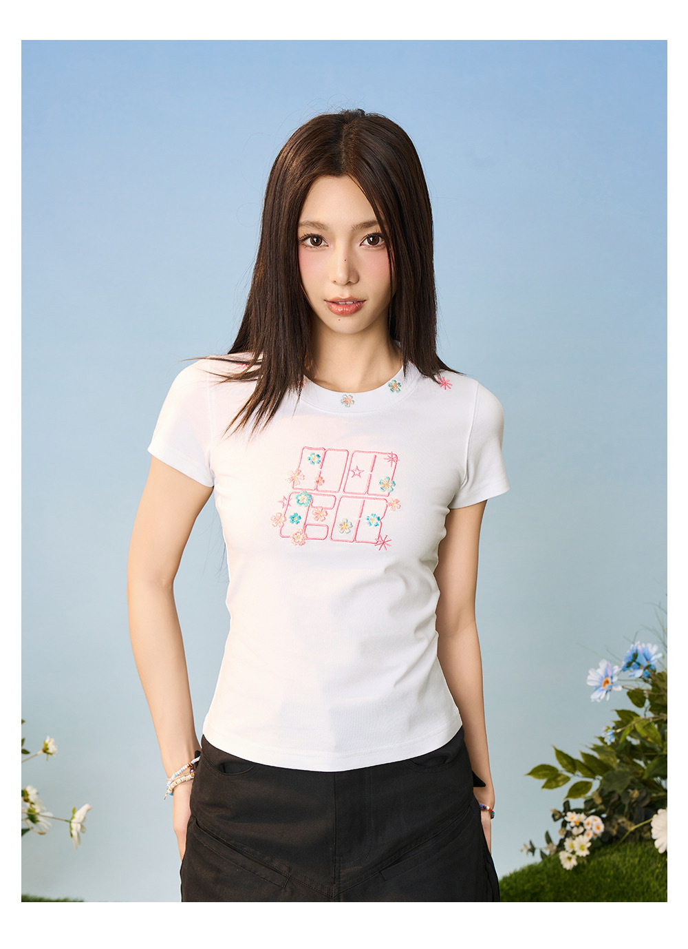 harsh and cruel 2025SS 元氣花朵刺繡 女款 修身短袖