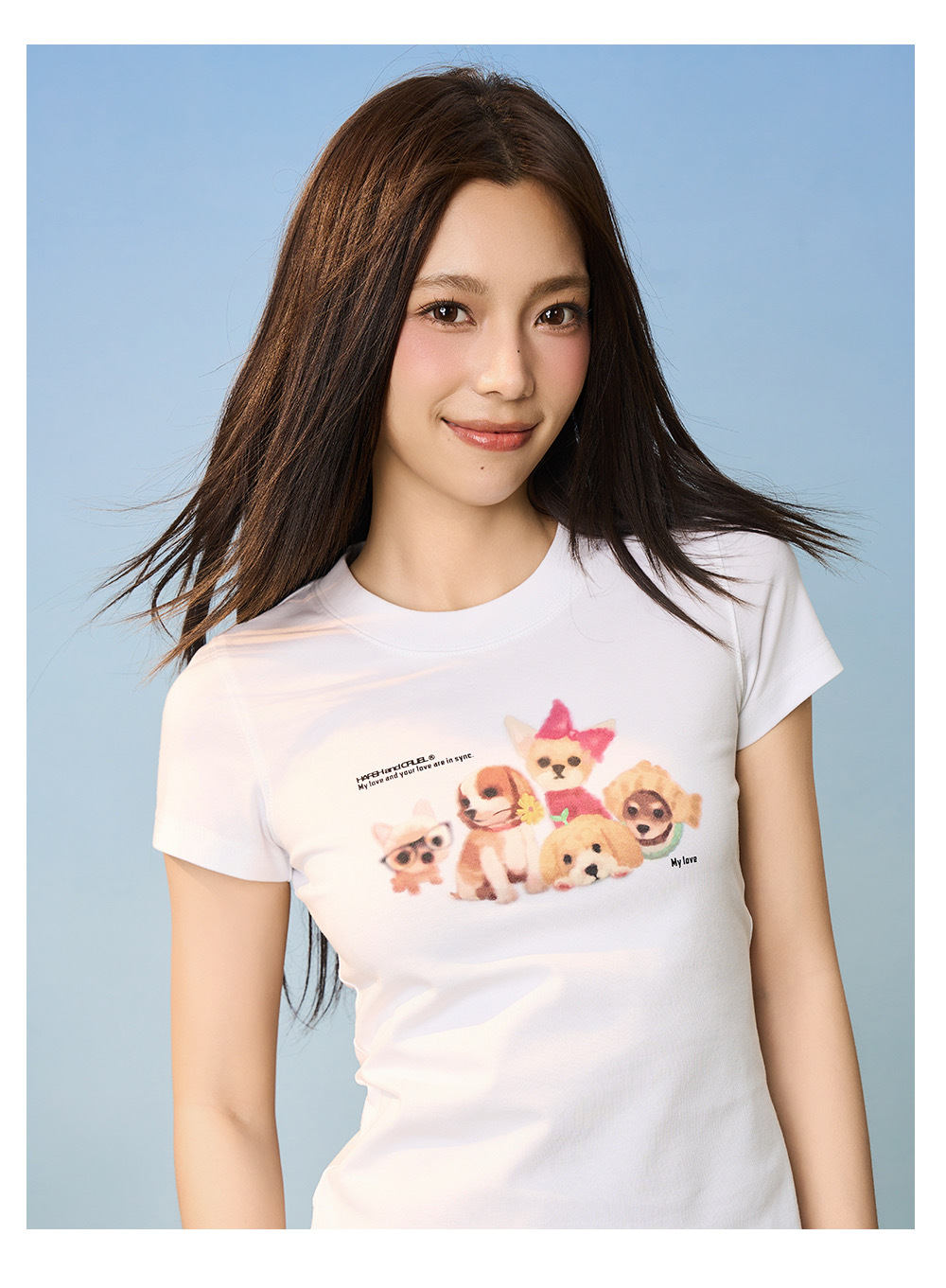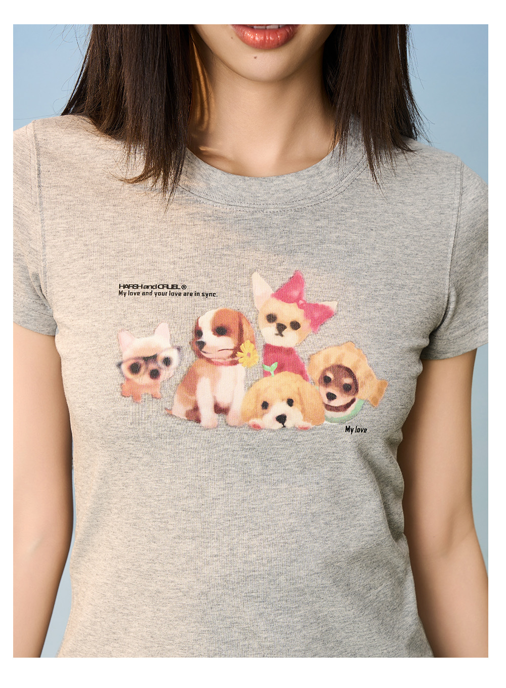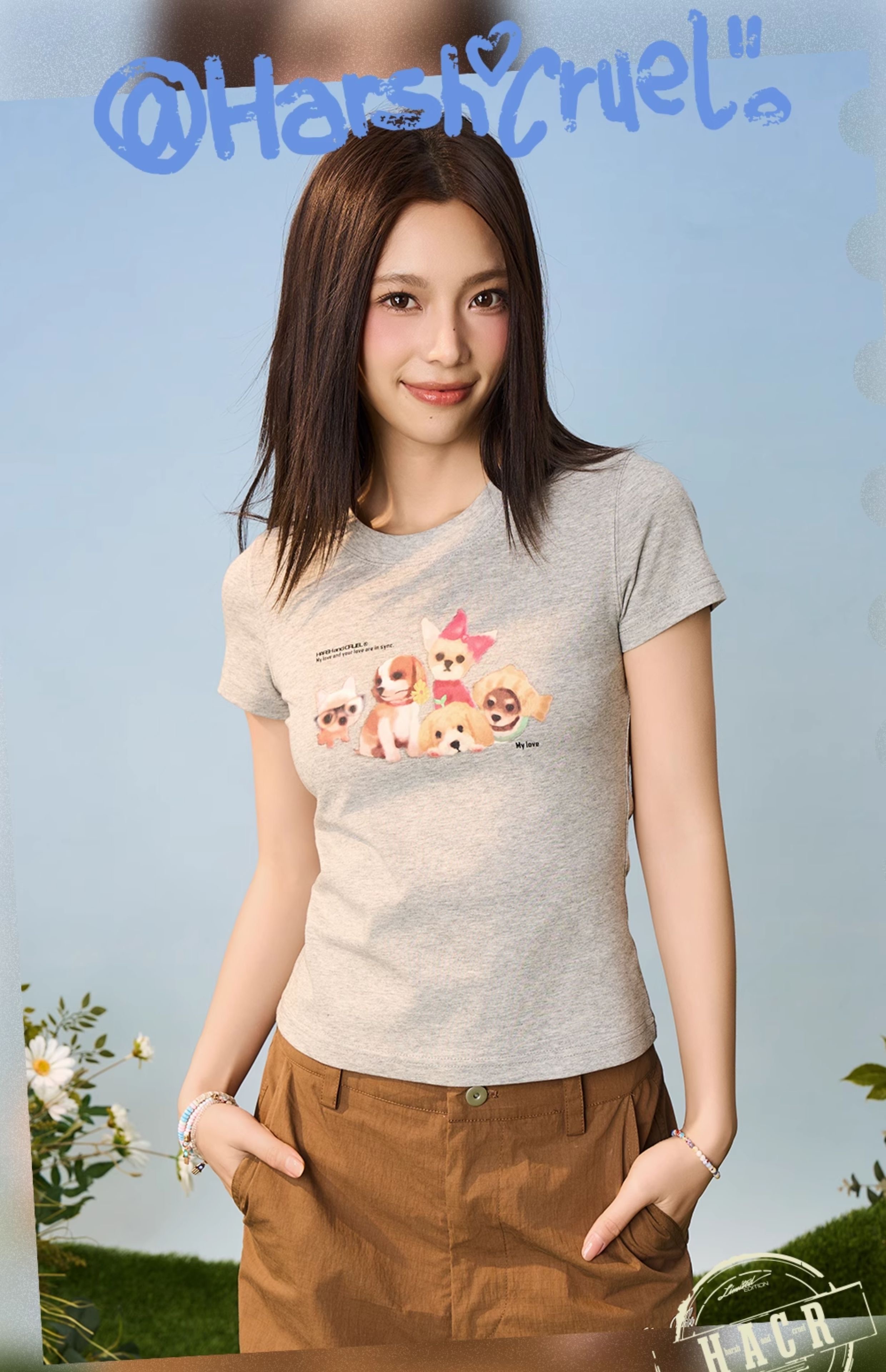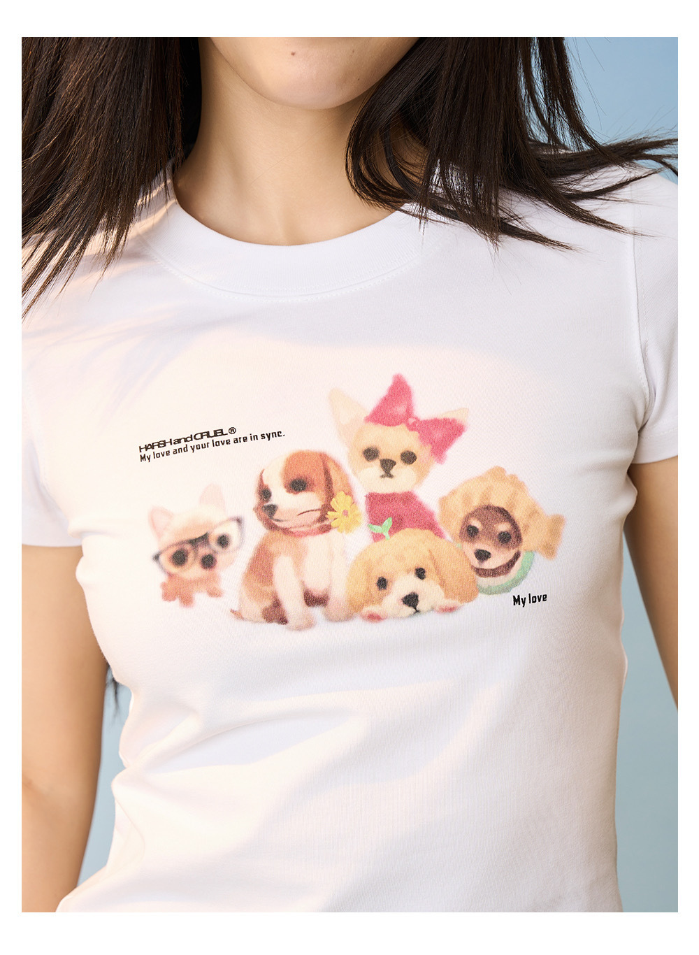 harsh and cruel 2025SS 水彩小狗 女款 修身短袖