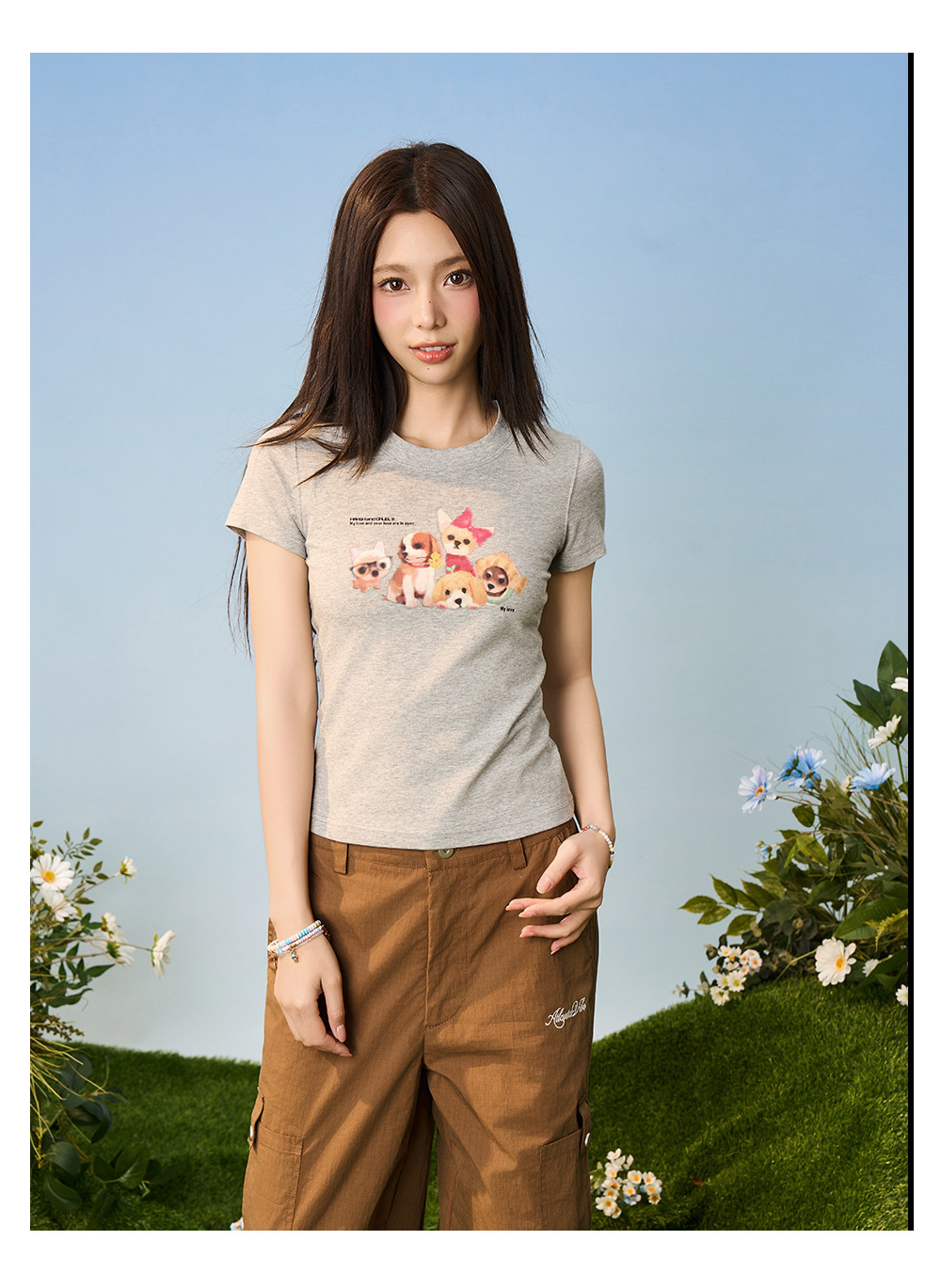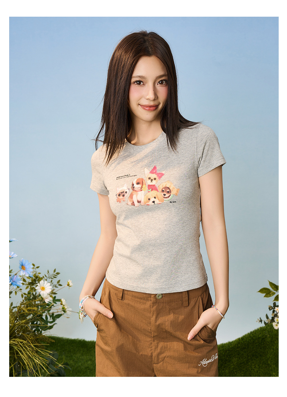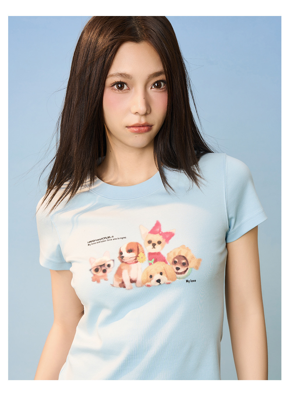 harsh and cruel 2025SS 水彩小狗 女款 修身短袖