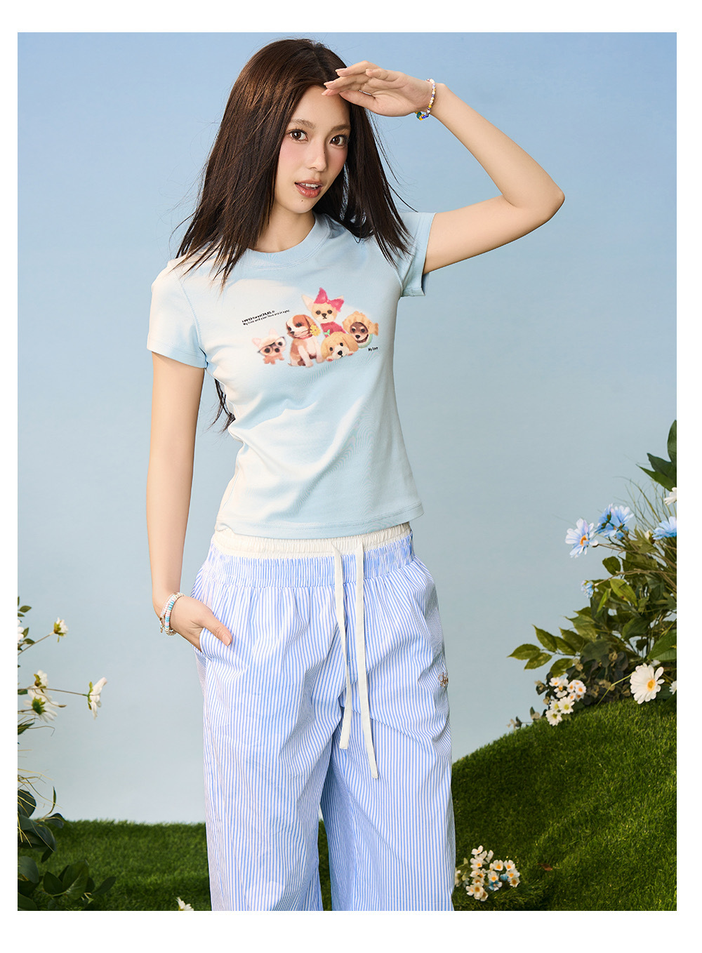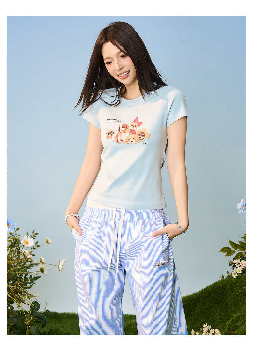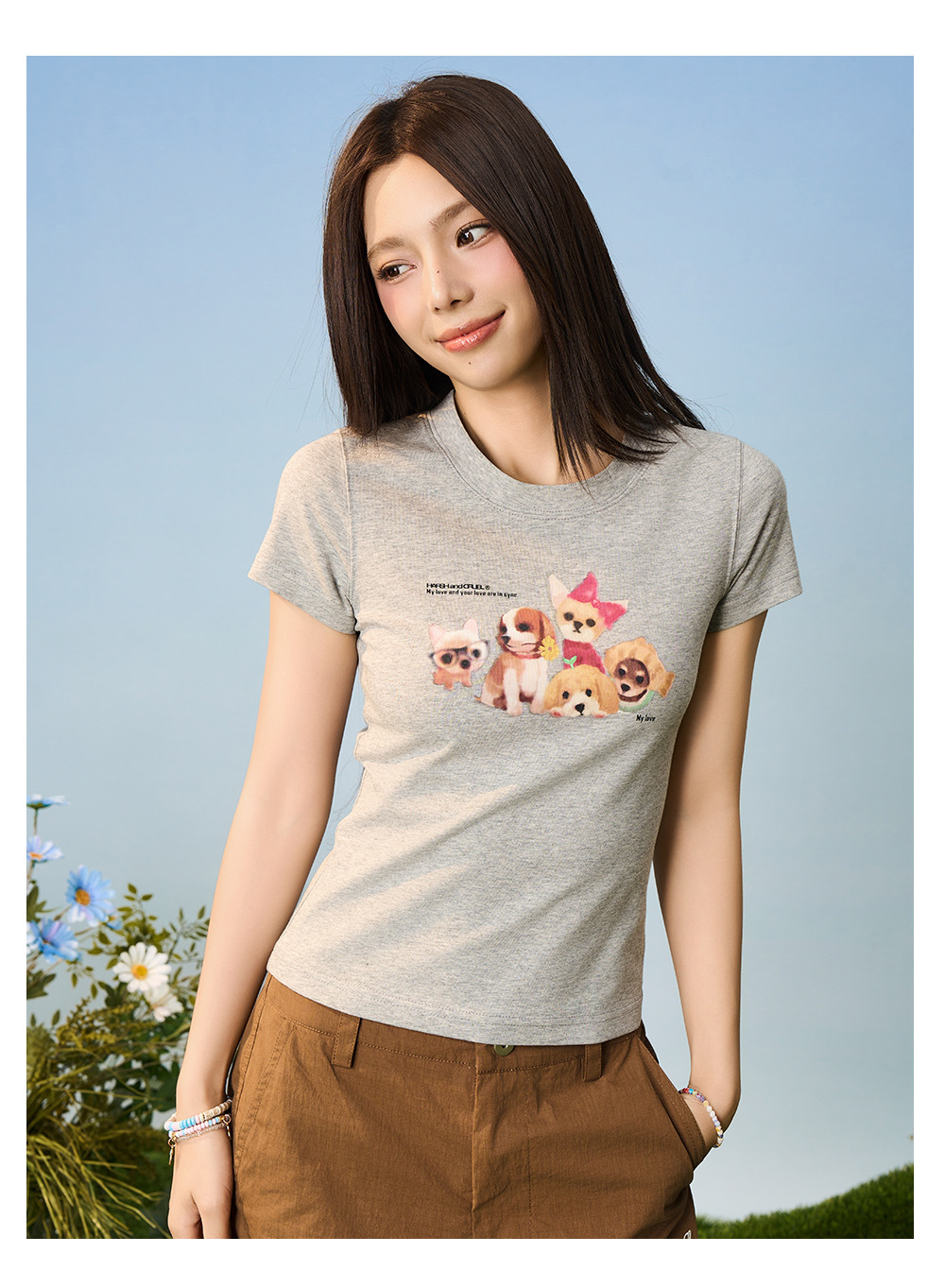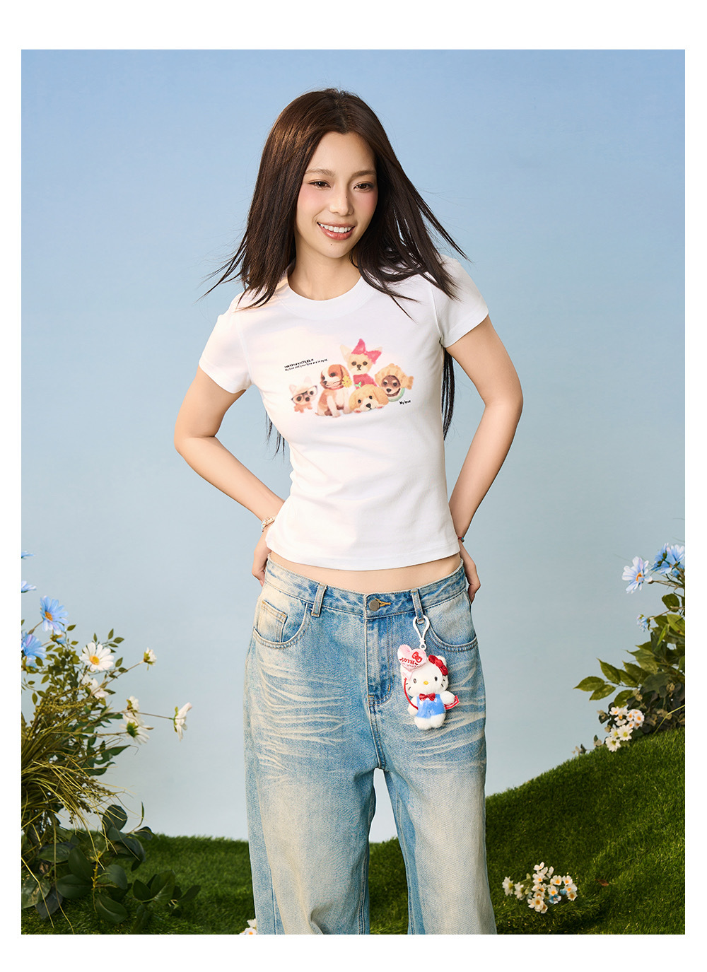 harsh and cruel 2025SS 水彩小狗 女款 修身短袖