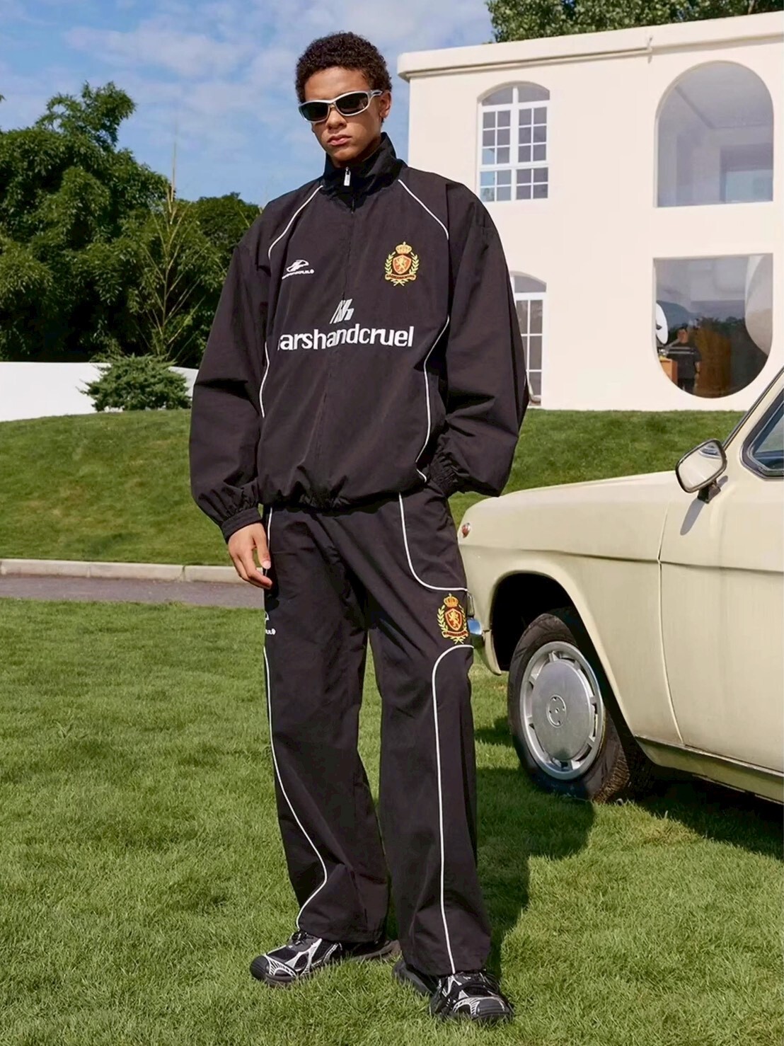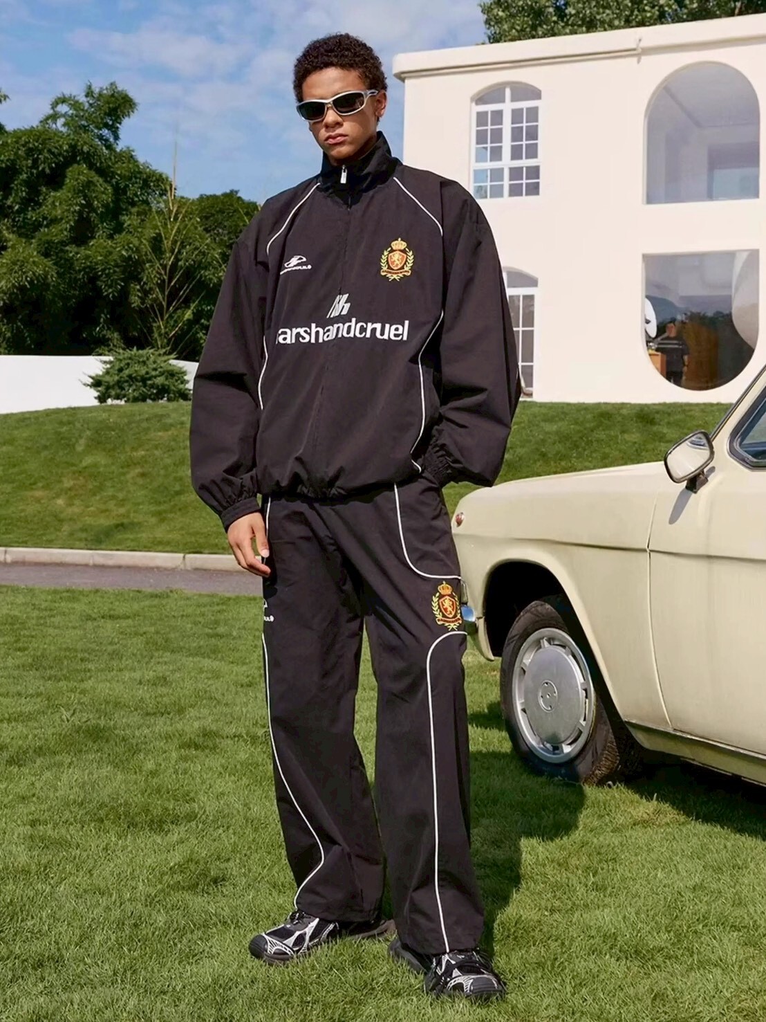 Harsh and cruel擅長運用解構、工業採樣等設計語言,從冰冷的現代化城市熾烈的街道上汲取靈感,將應該在工廠,車間,街道甚至時裝秀中出現的元素放入服裝中,找到混亂的秩序,以及不可能的可能性。