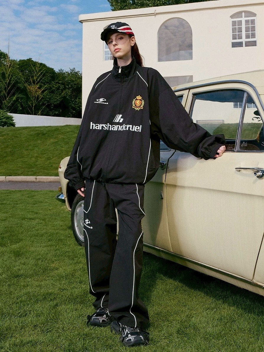 harsh and cruel 復古運動拼接刺繡夾克