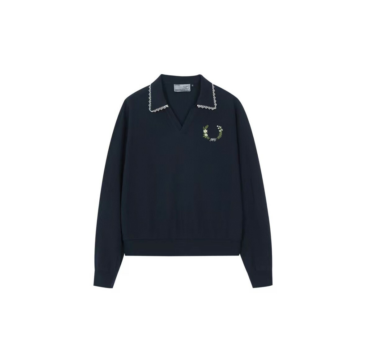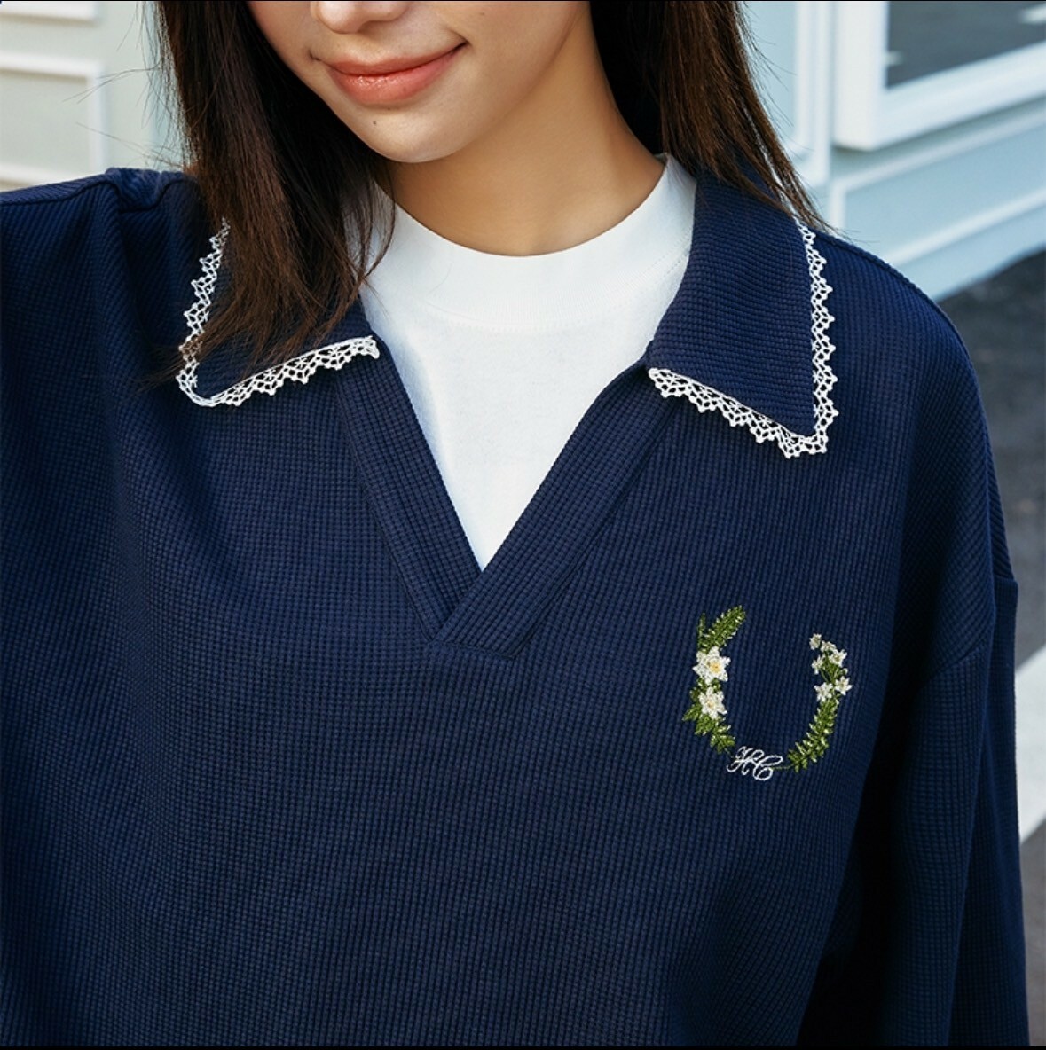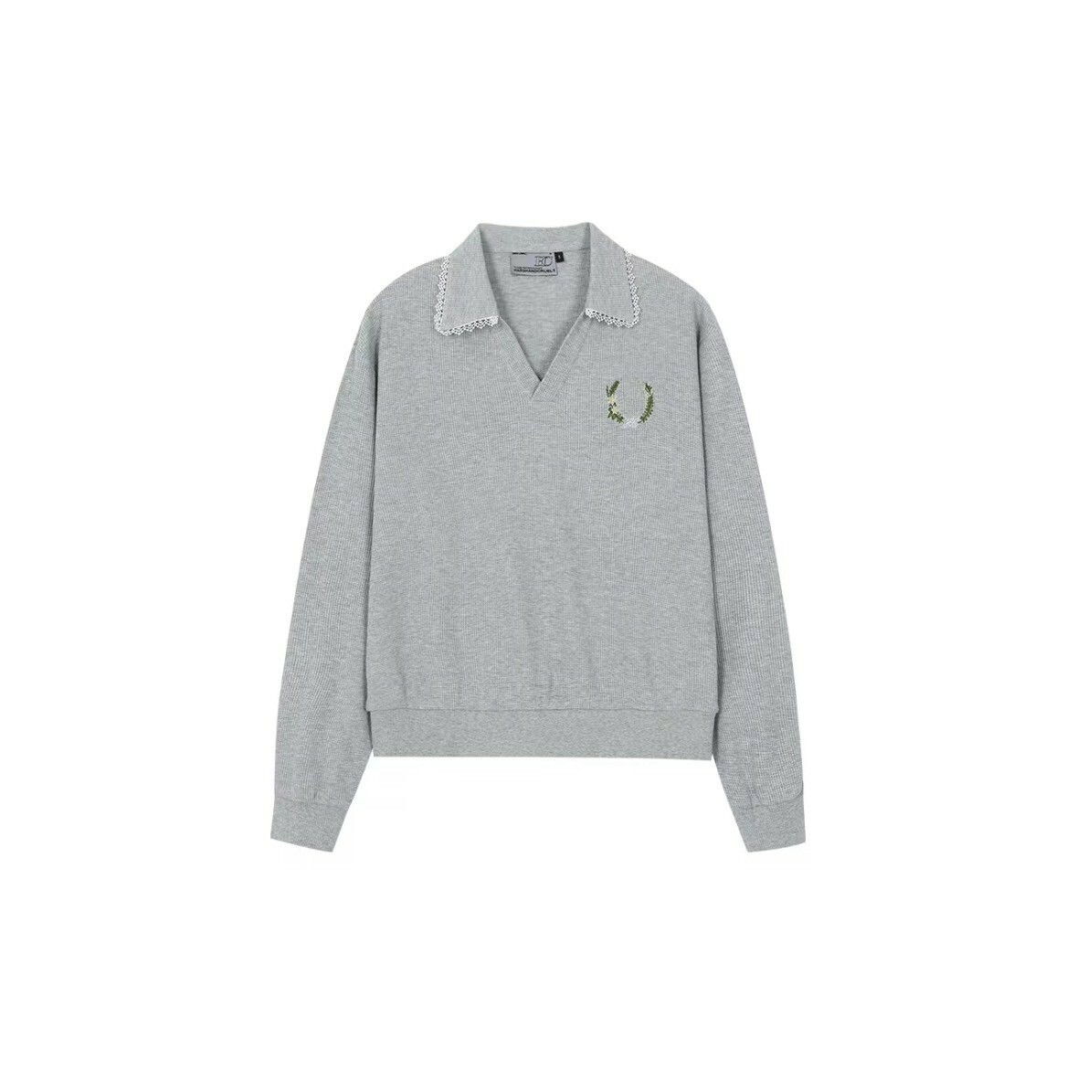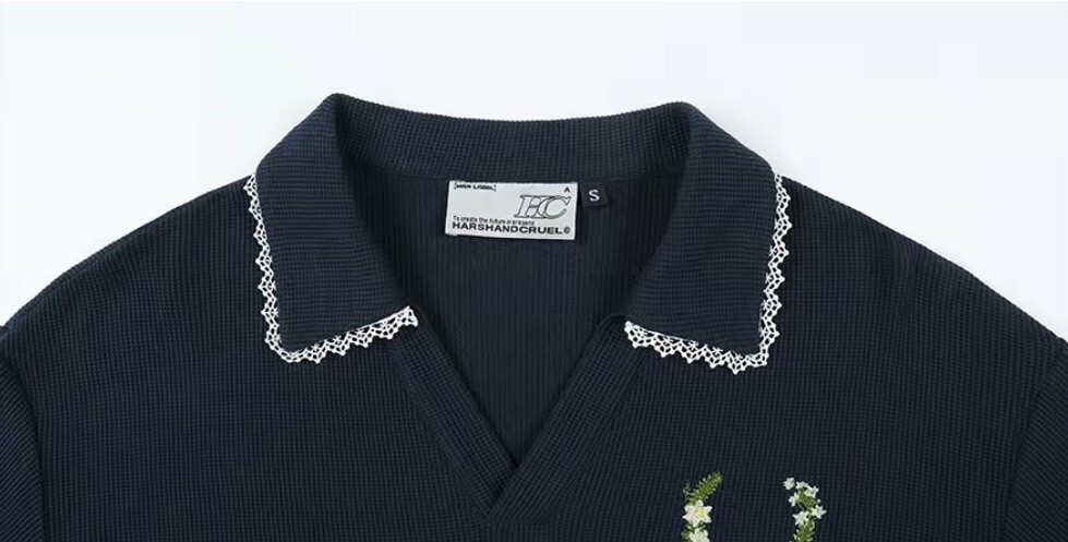 harsh and cruel 2025SS 華夫格 V領 蕾絲邊 刺繡 女款 polo衫