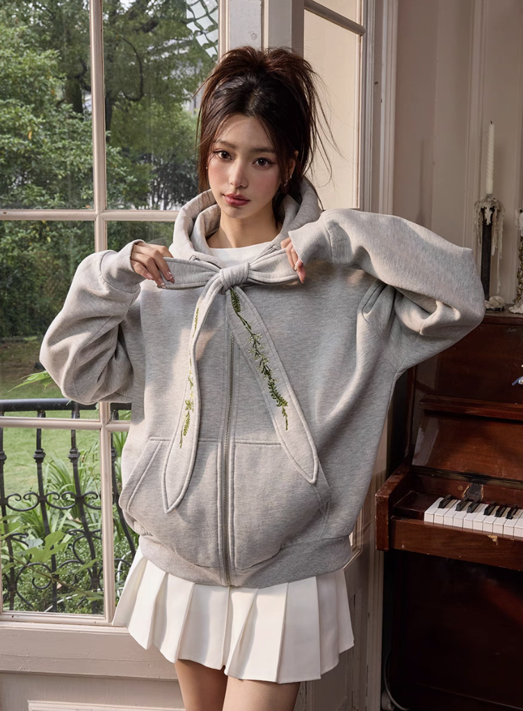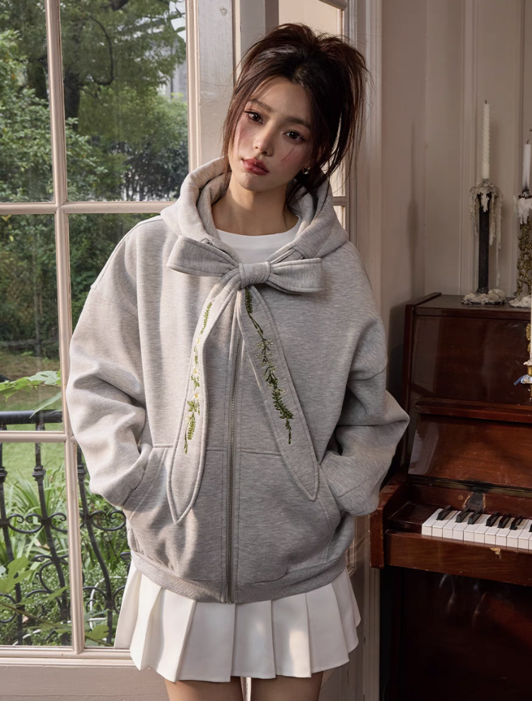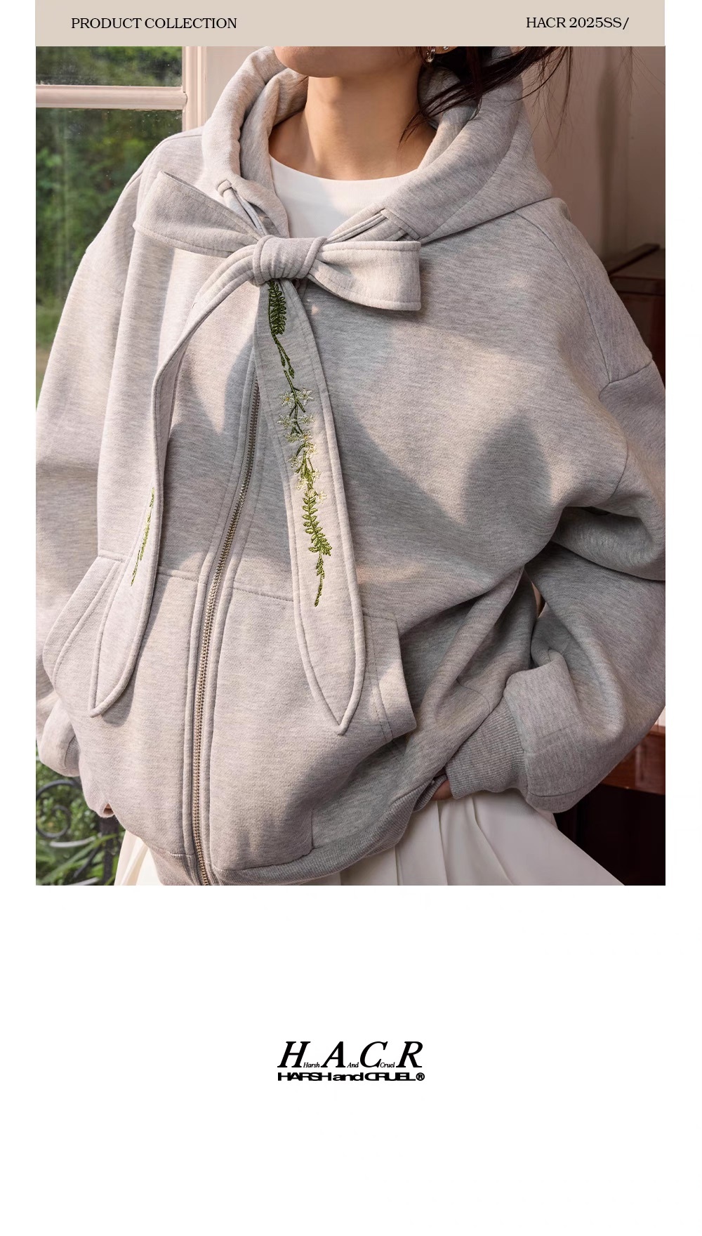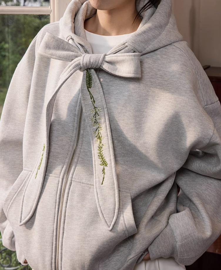 harsh and cruel 2025SS 可拆卸 花卉 刺繡蝴蝶結 飄帶 連帽外套