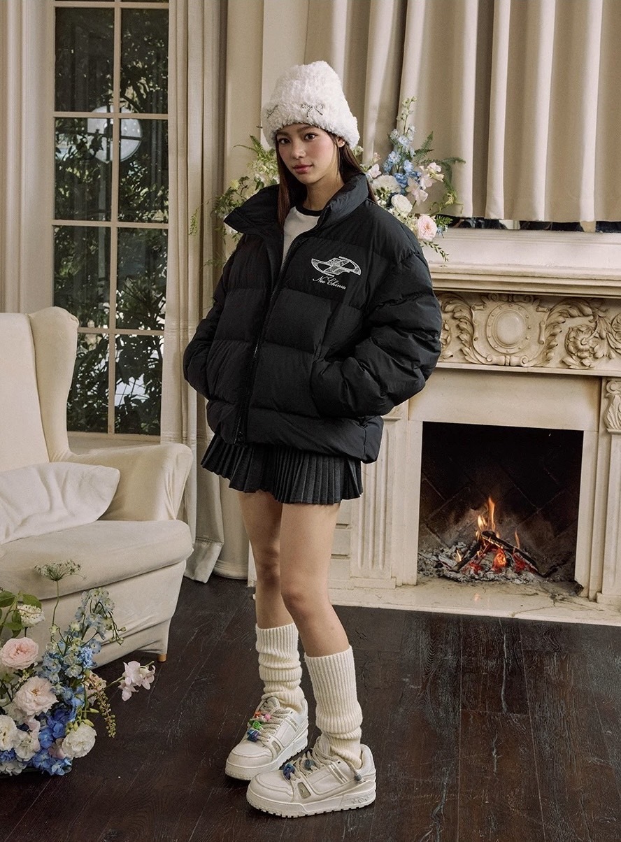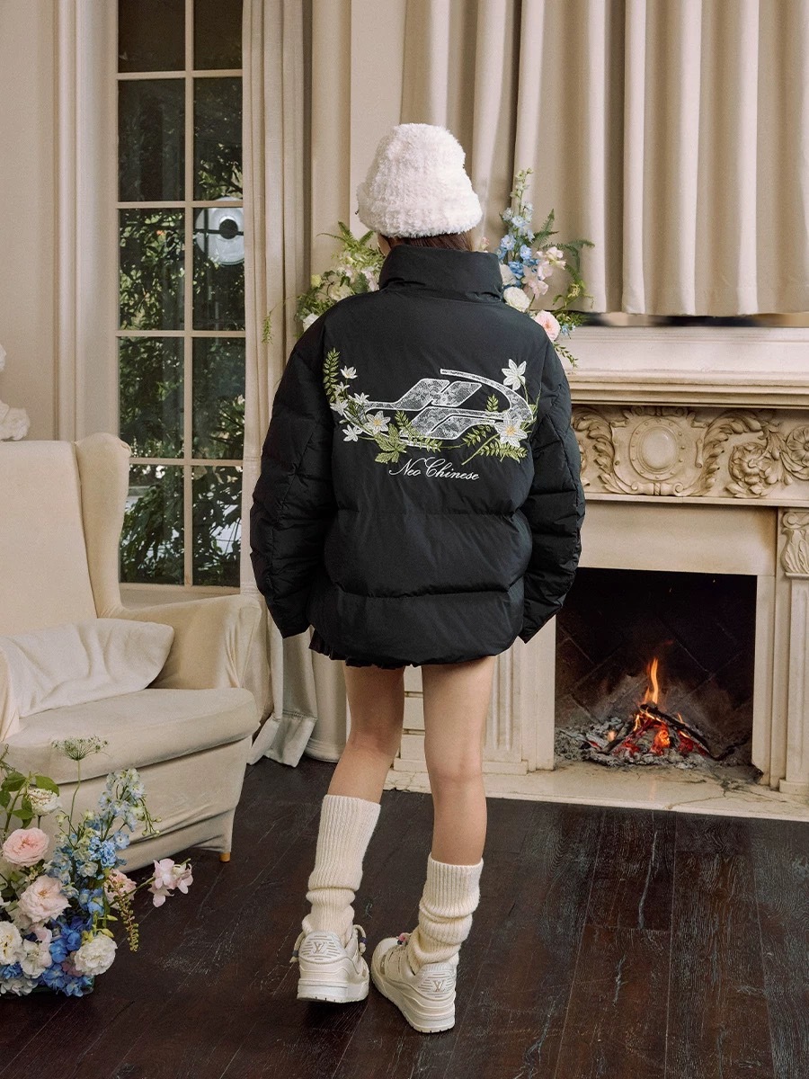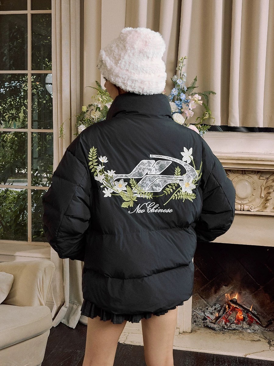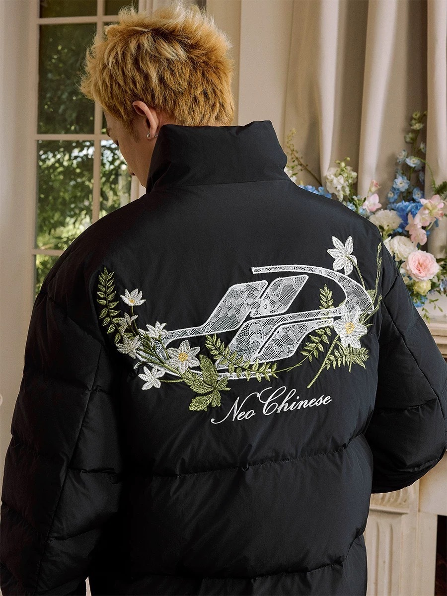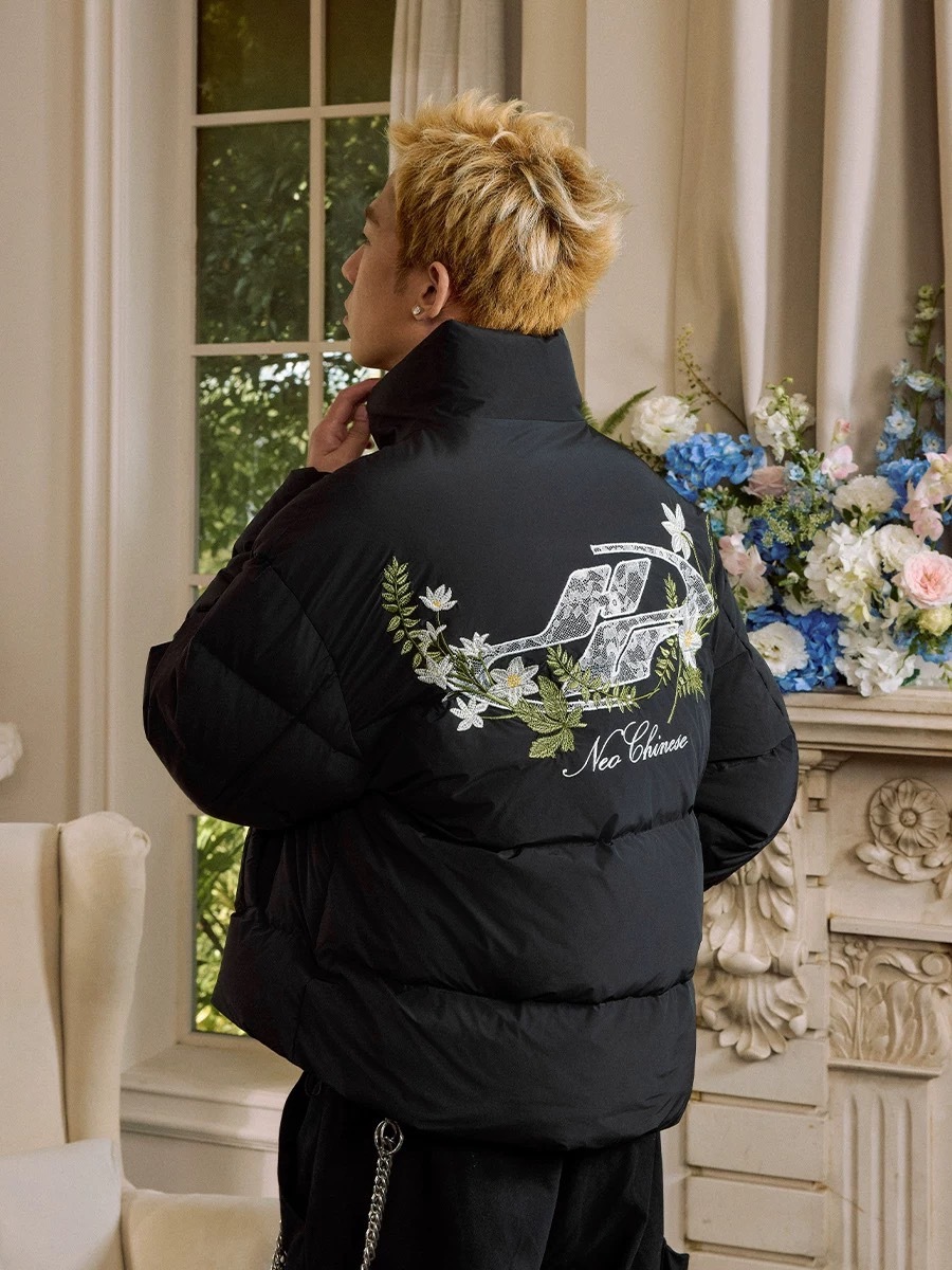 harsh and cruel 蕾絲logo貼布繡綠花環花卉刺繡植物系廓形hacr棉服