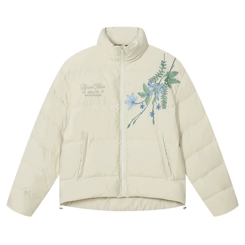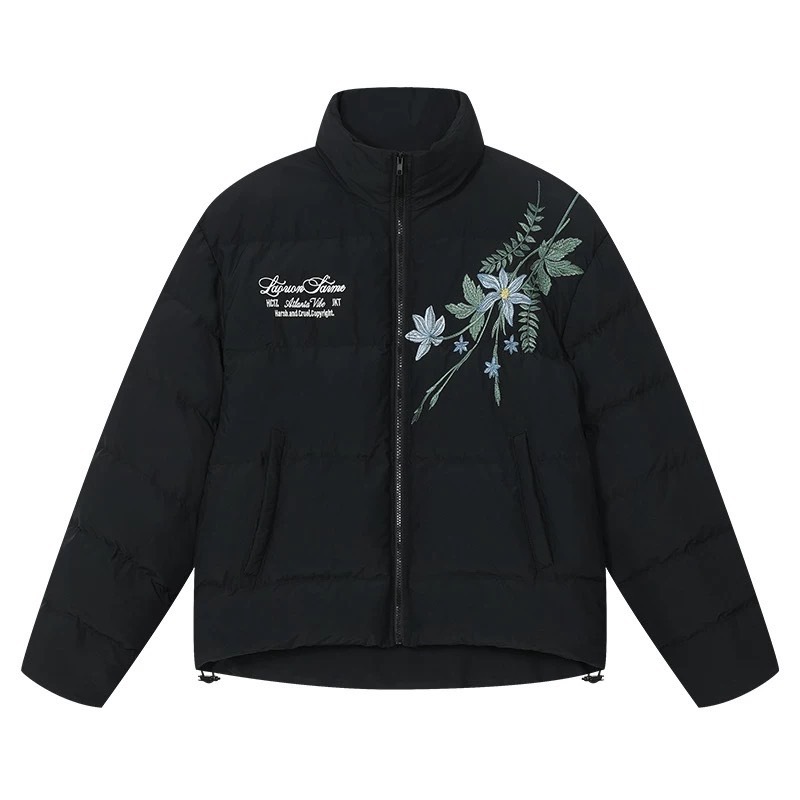 harsh and cruel 新中式過肩藍色花叢花卉刺繡石墨烯天保暖棉服