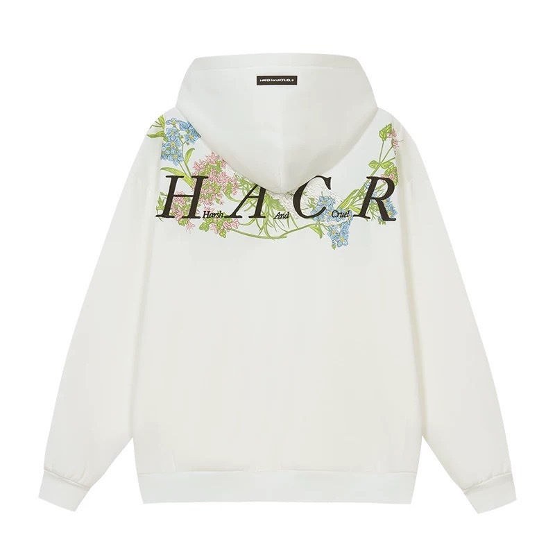 harsh and cruel 經典繁花過肩環繞刺繡配色植物系​​hacr連帽衛衣
