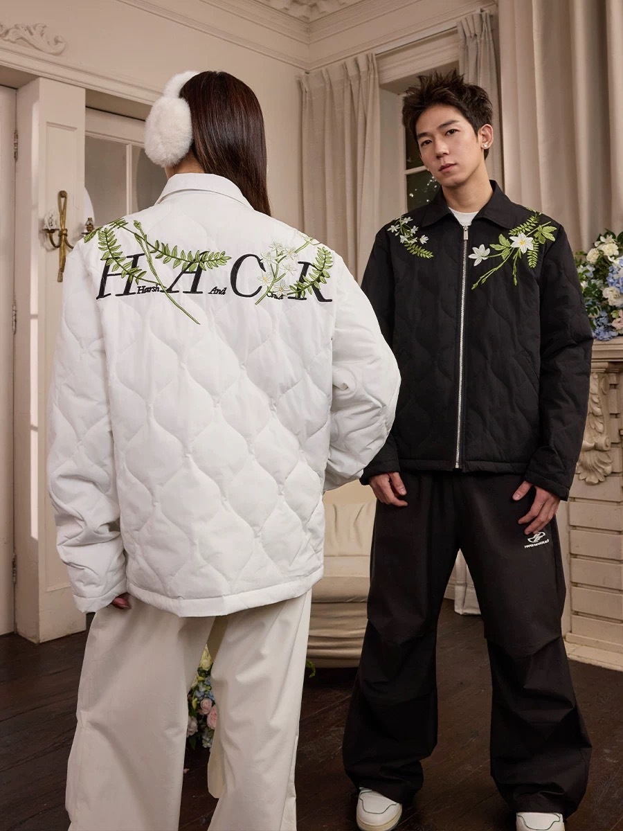 harsh and cruel 全新中式實穿感花卉花環刺繡葫蘆絎縫保暖棉服