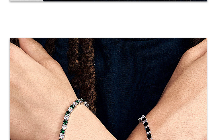 撞色方鑽的設計,打破了傳統手鍊的單一色調,將色彩與閃耀 完美結合,極具視覺衝擊力,賦予更多的時尚感與個性,讓人過目難忘。