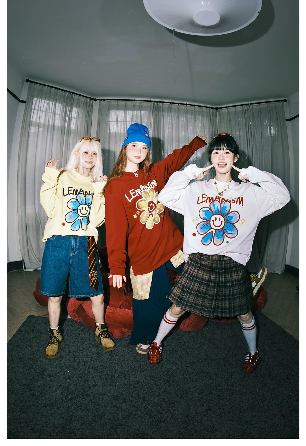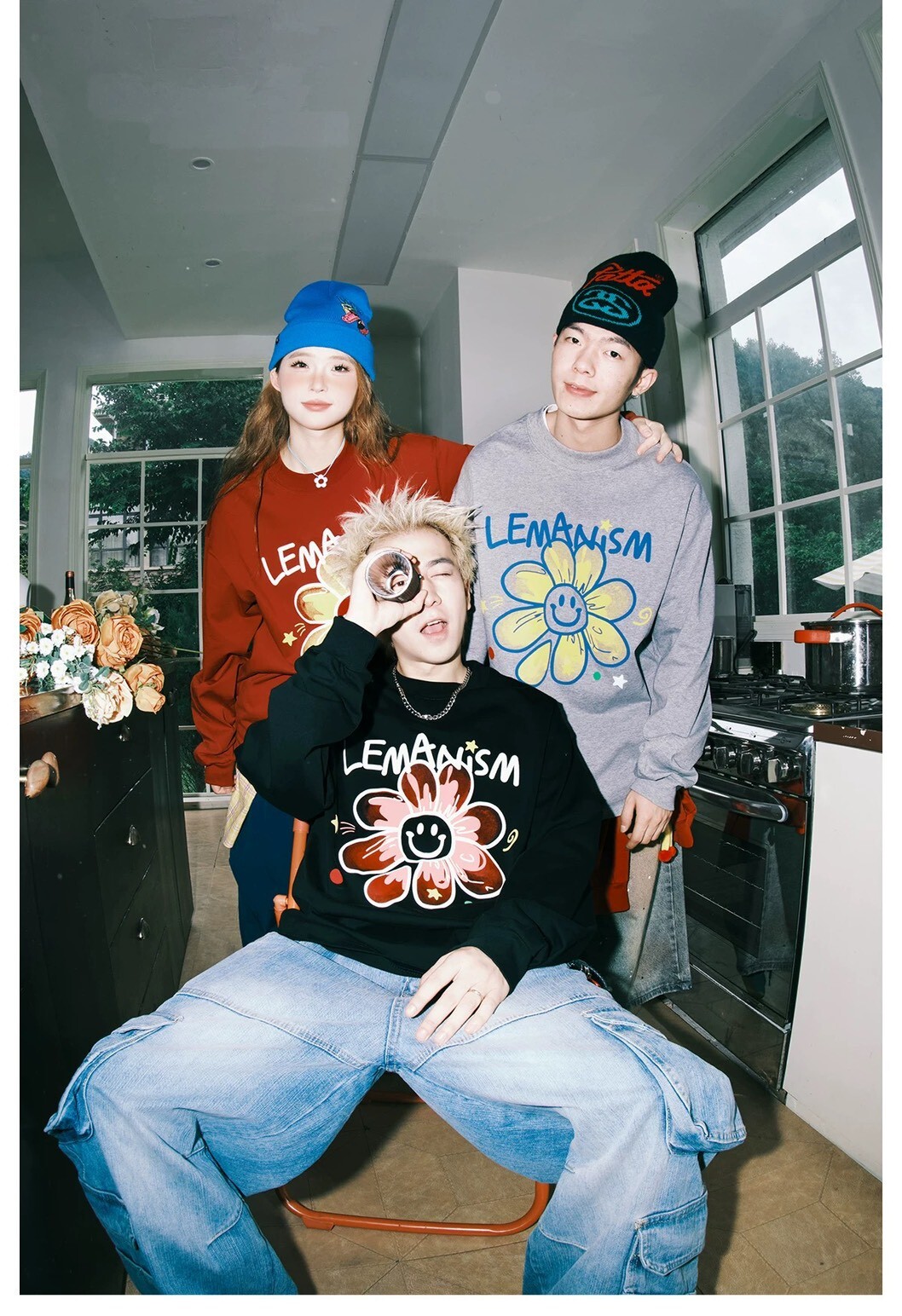LEMANISM 美式塗鴉 笑臉小花 衛衣