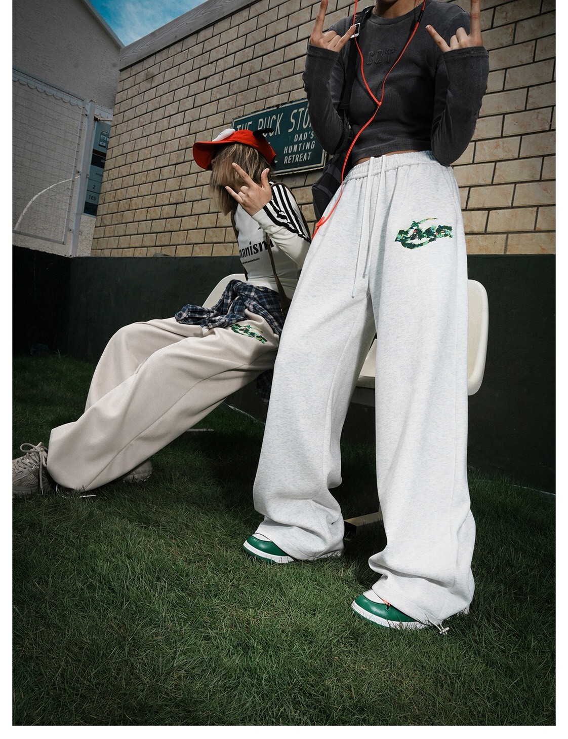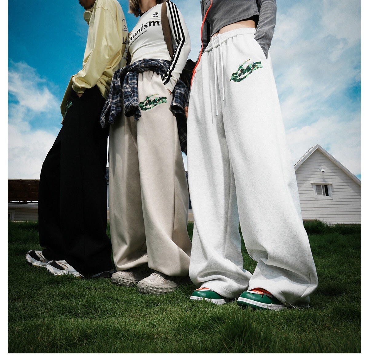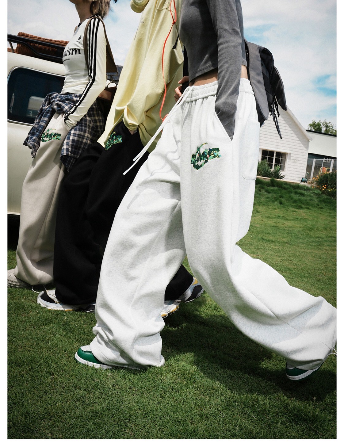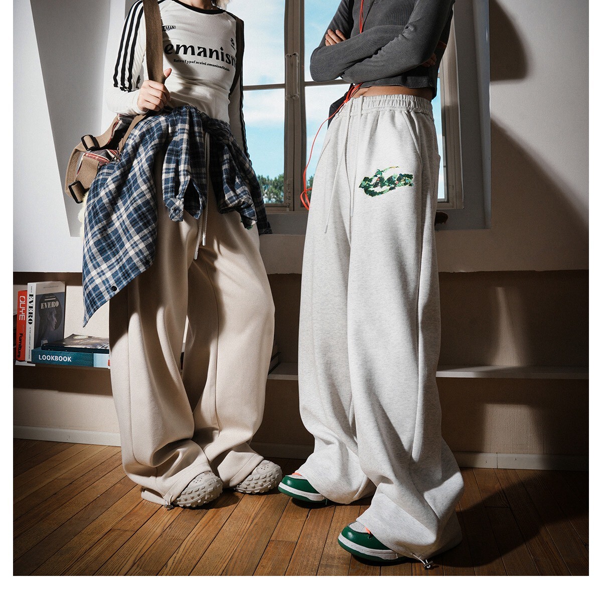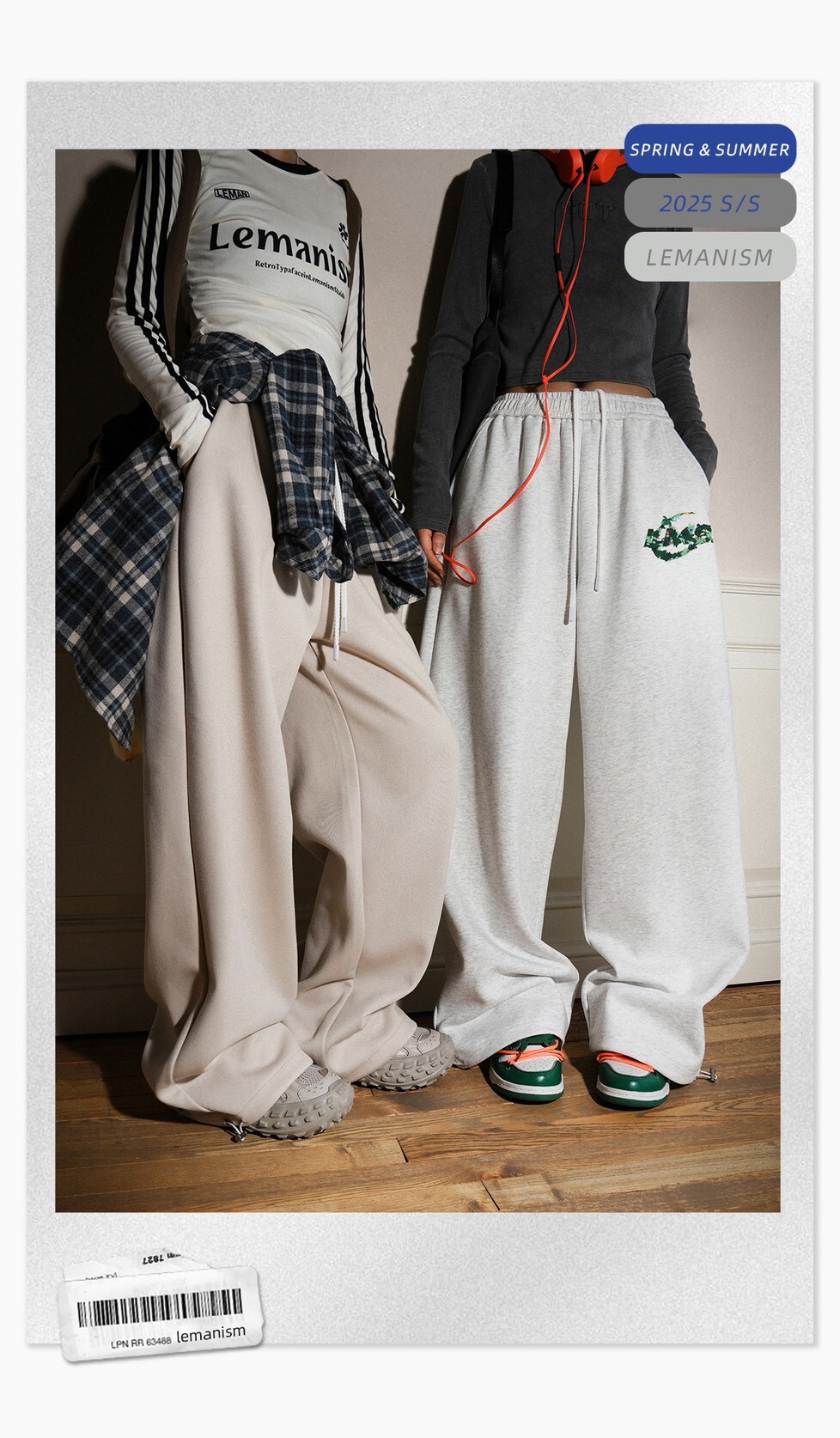 LEMANISM 美式字母刺繡 寬鬆棉褲