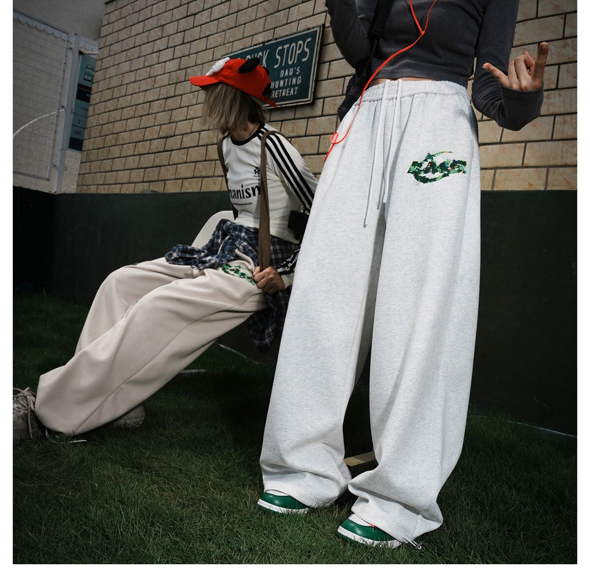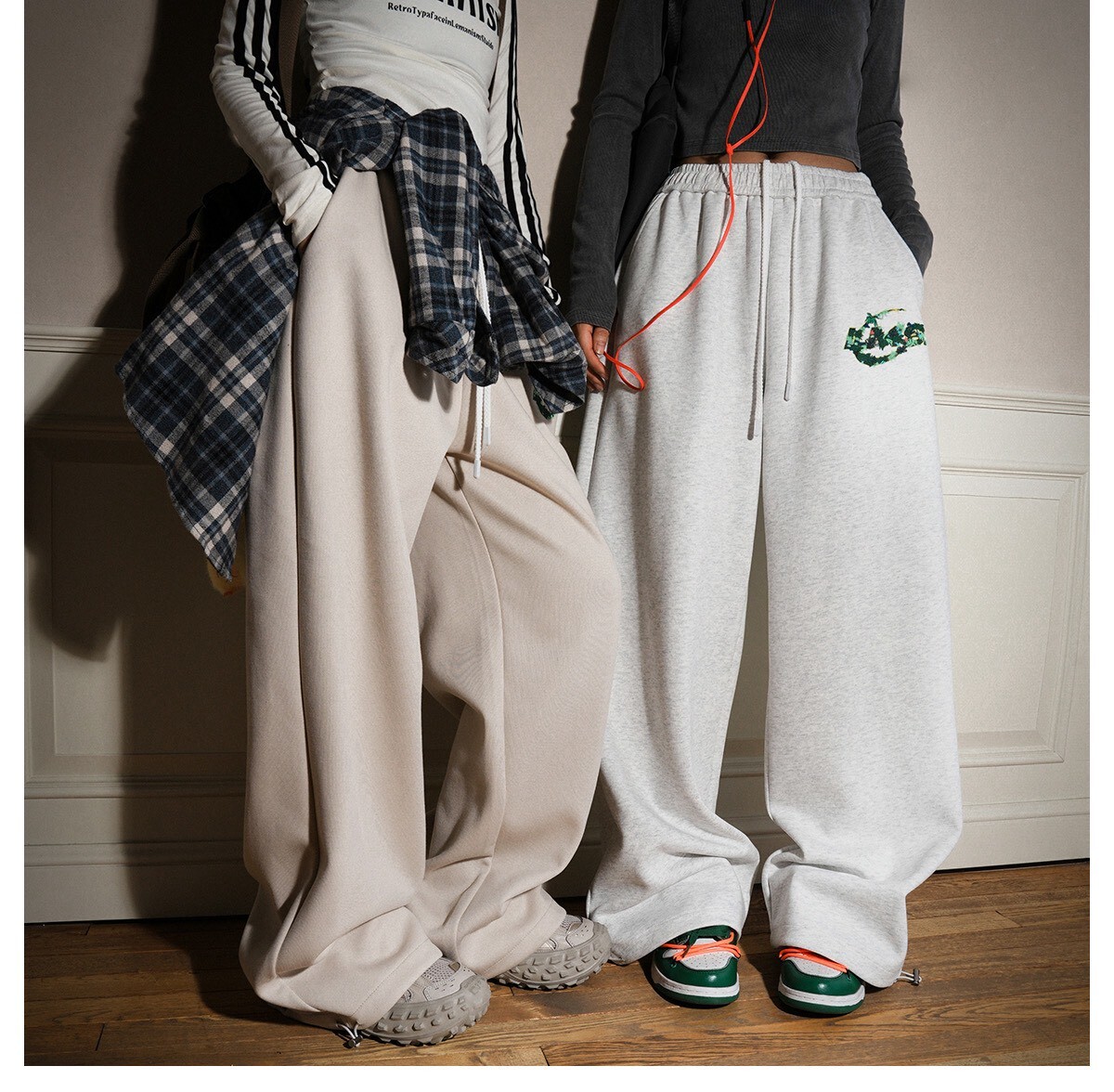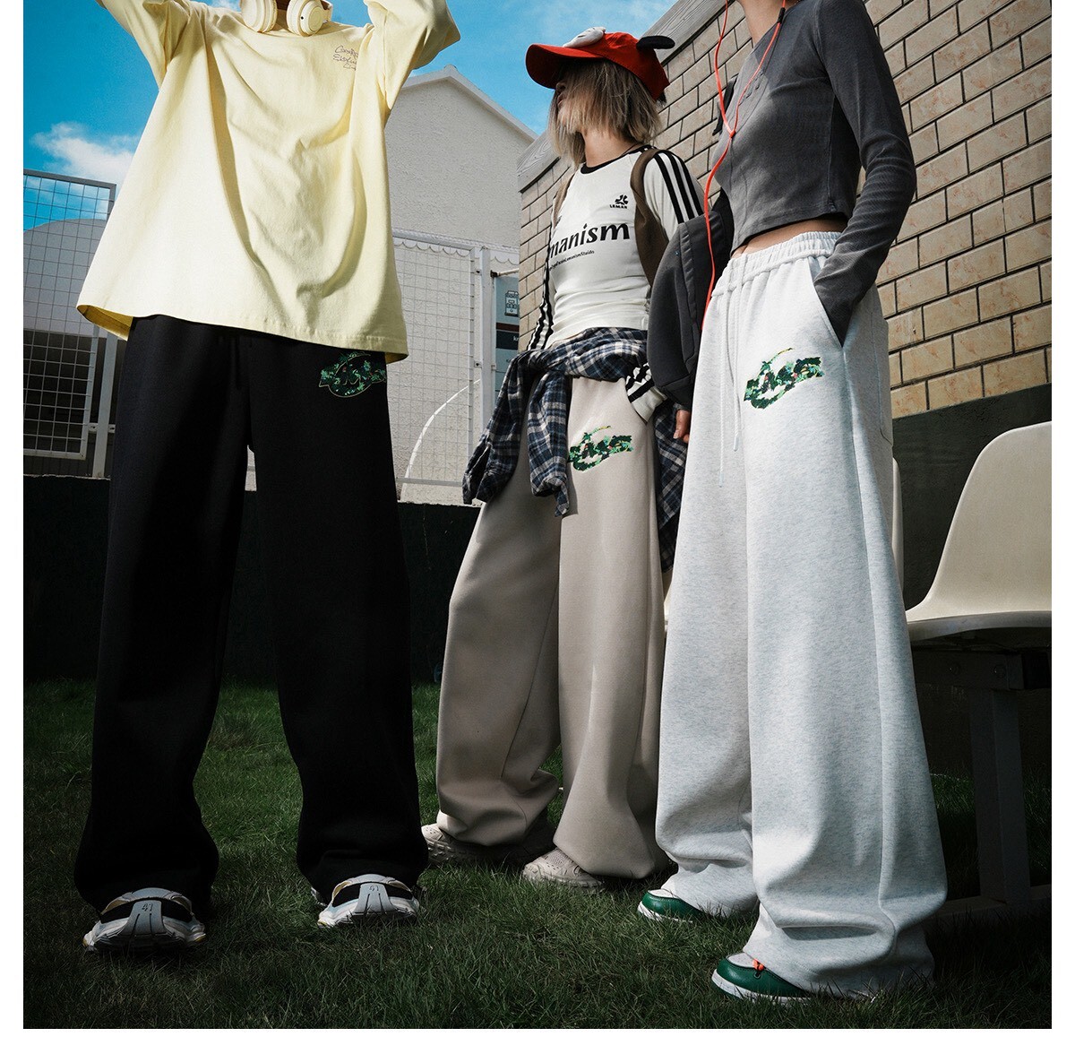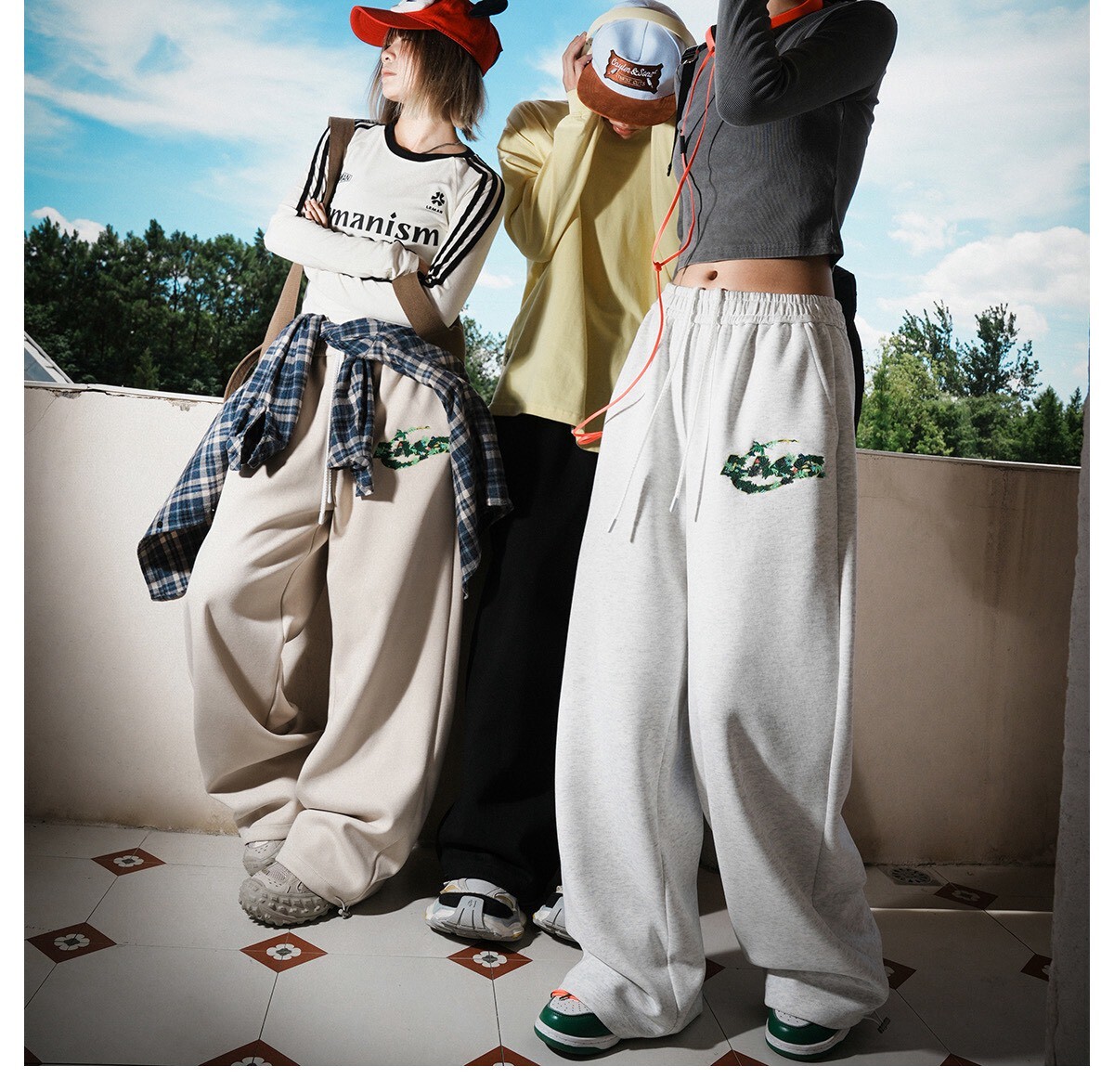 LEMANISM 美式字母刺繡 寬鬆棉褲