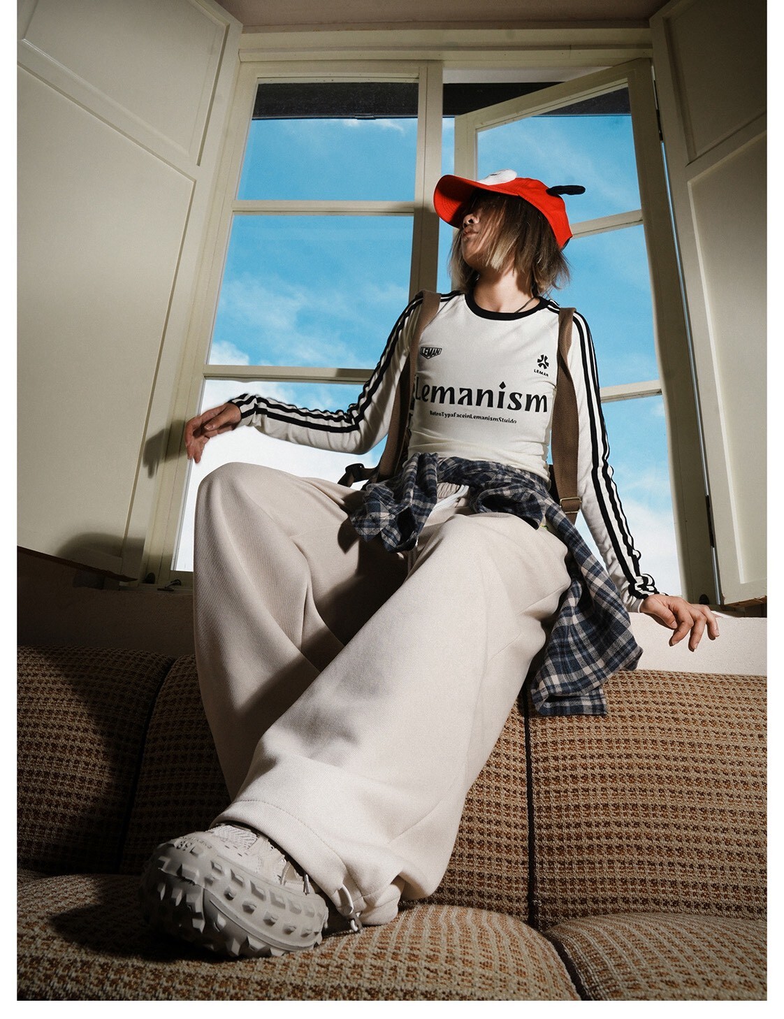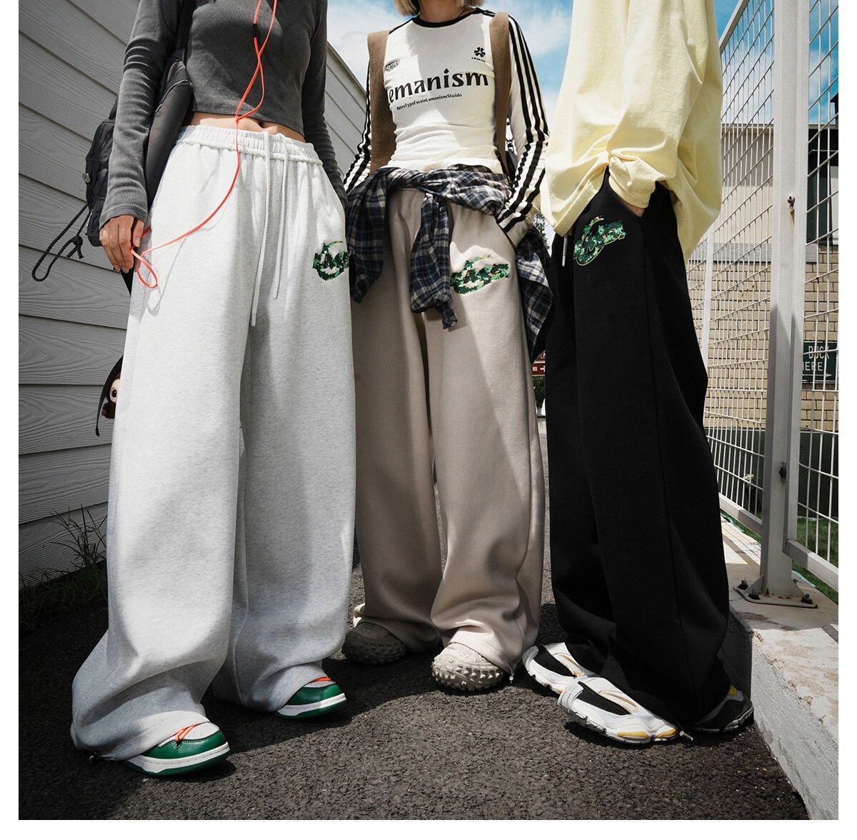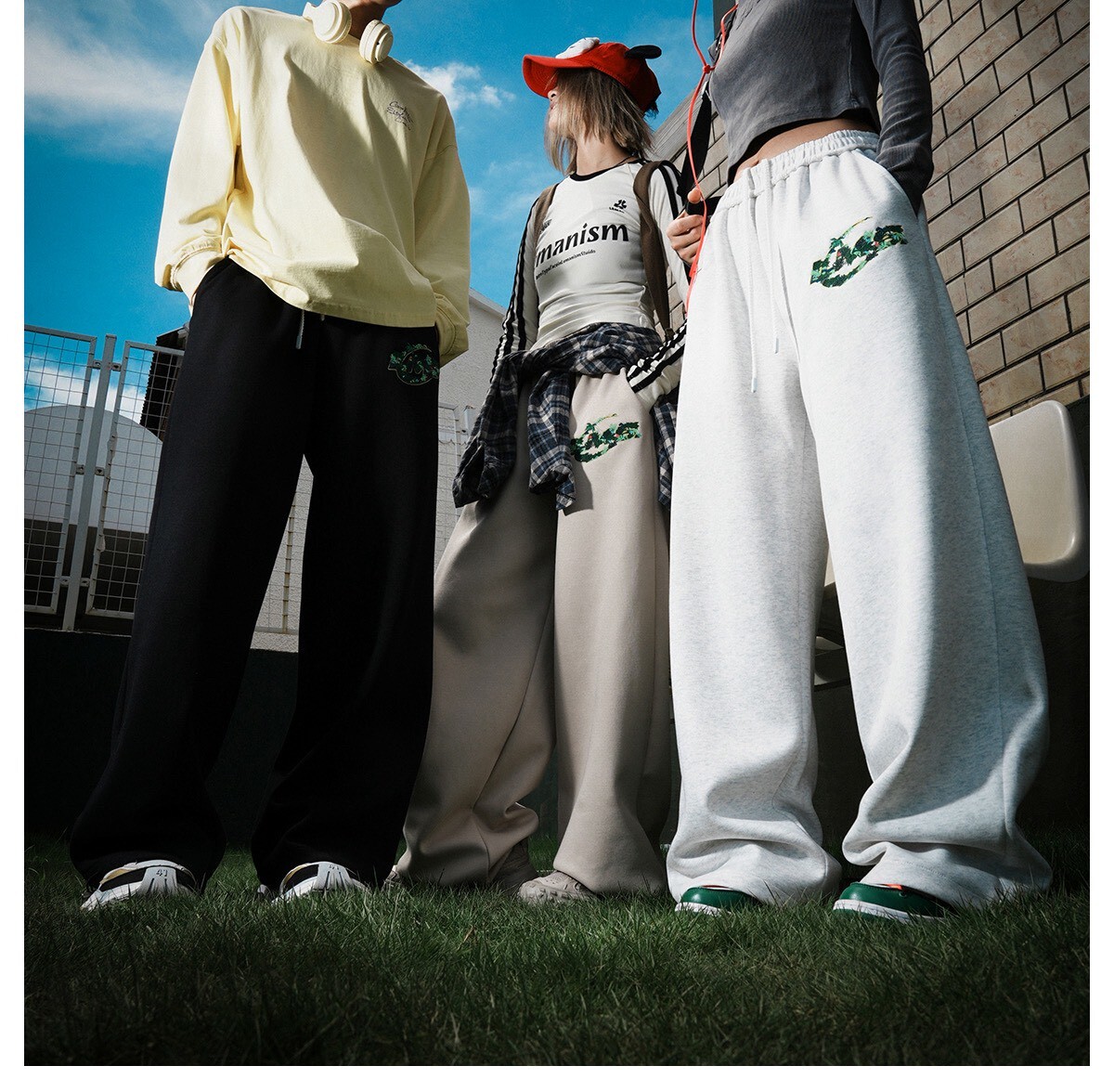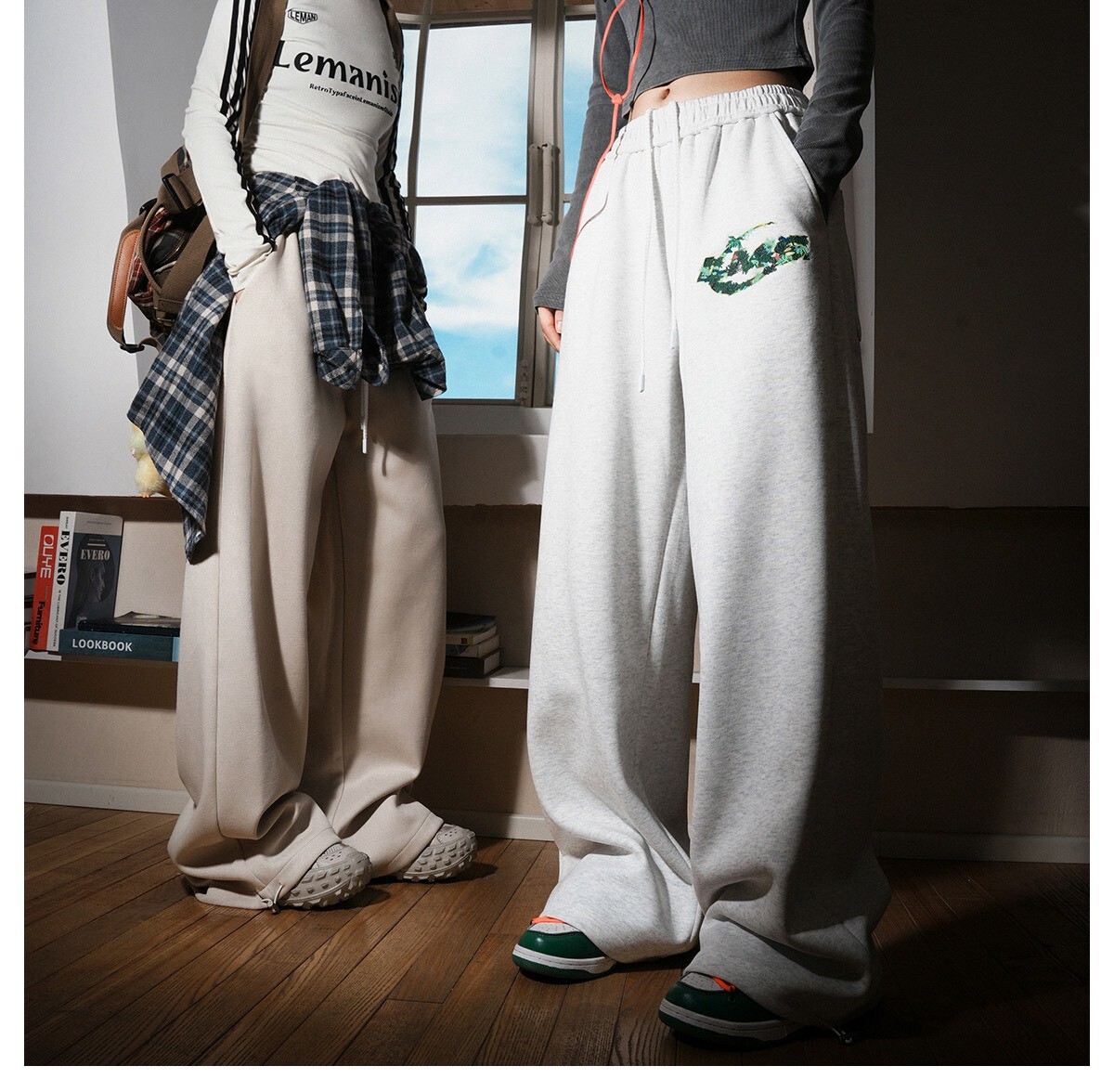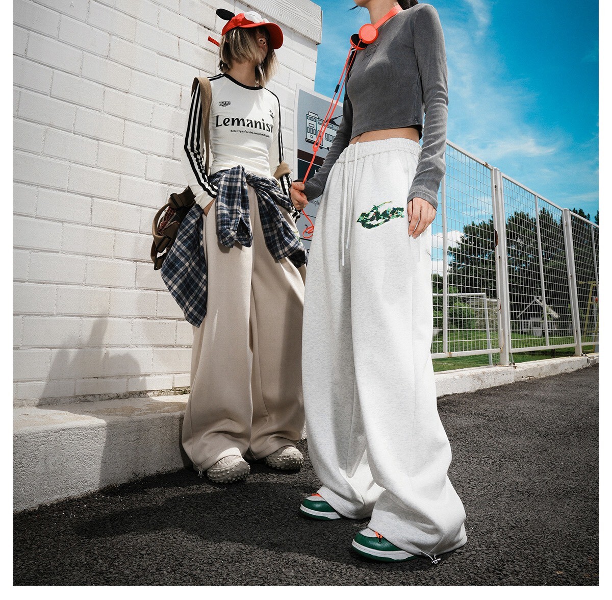 LEMANISM 美式字母刺繡 寬鬆棉褲