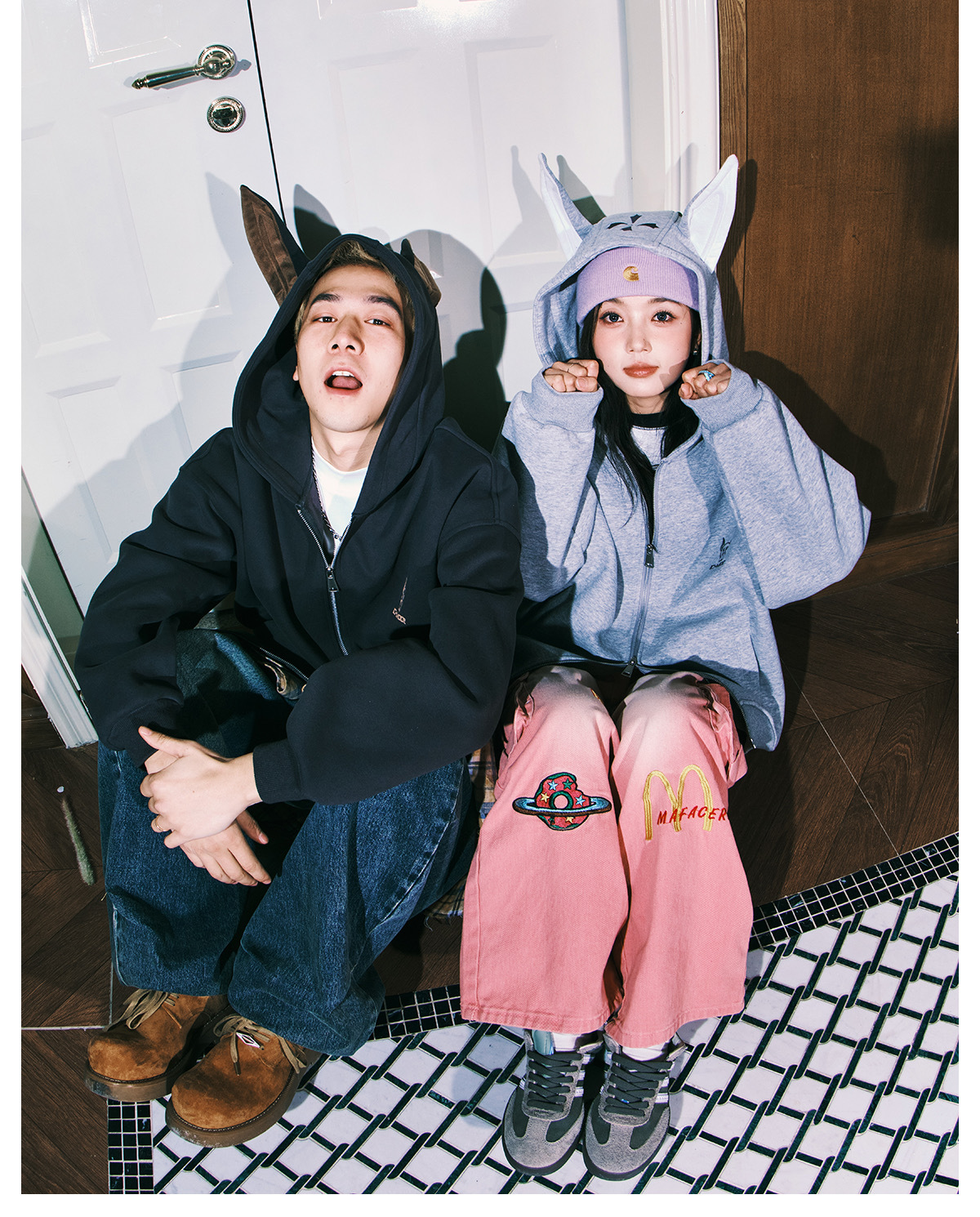LEMANISM 卡通杜賓狗 耳朵帽子 連帽外套