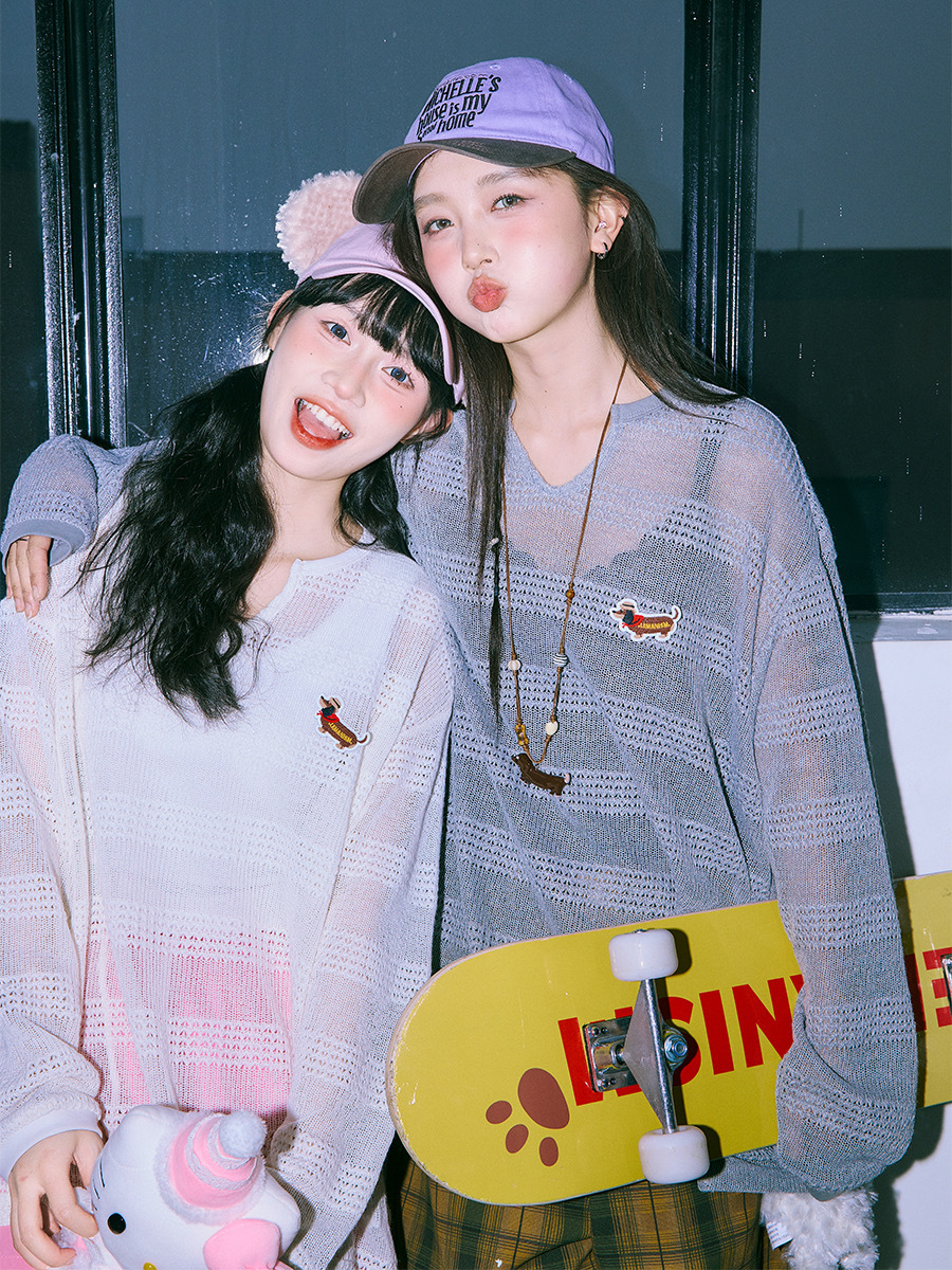 LEMANISM 臘腸狗刺繡 簍空罩衫