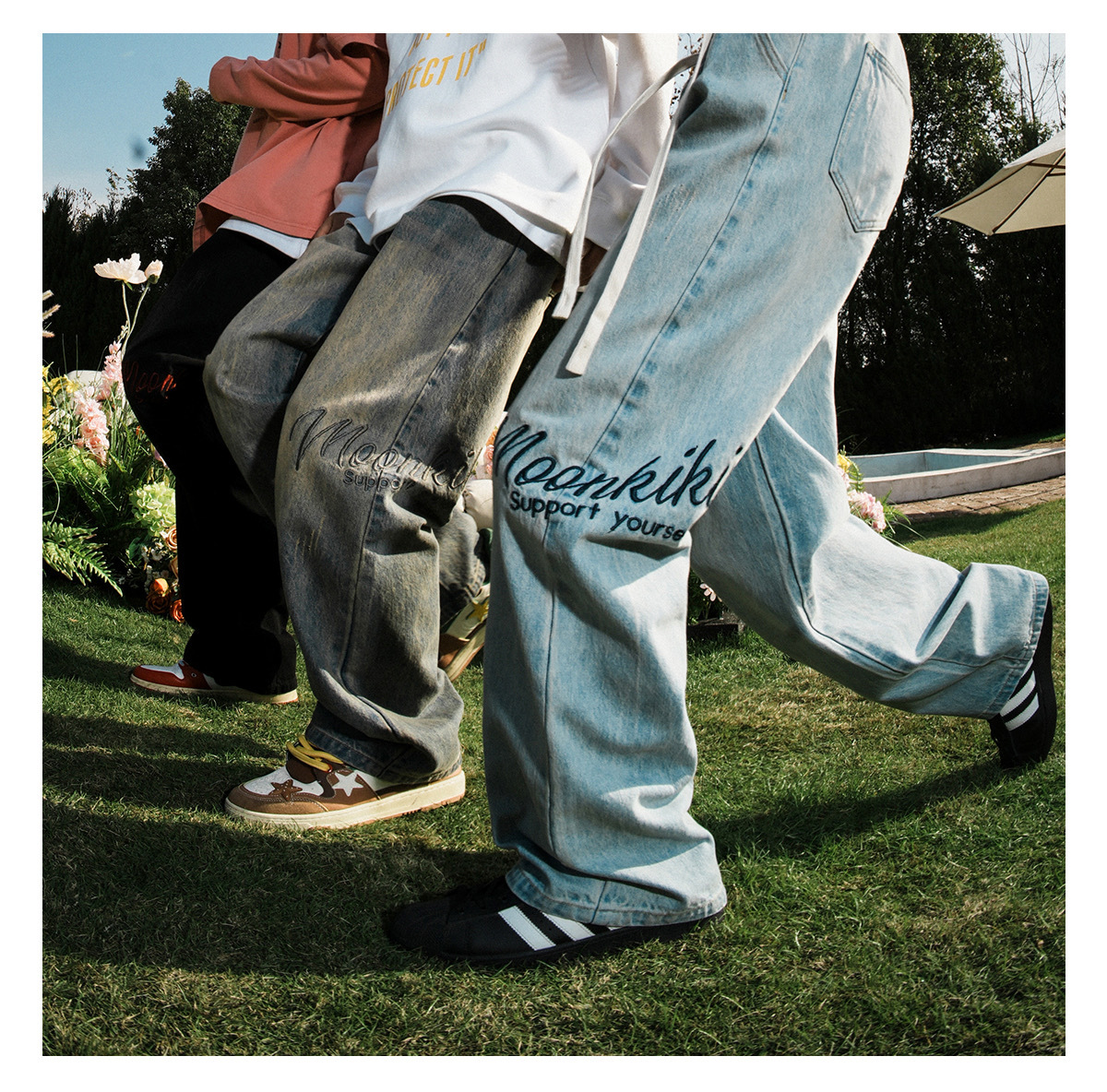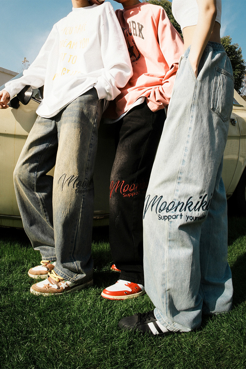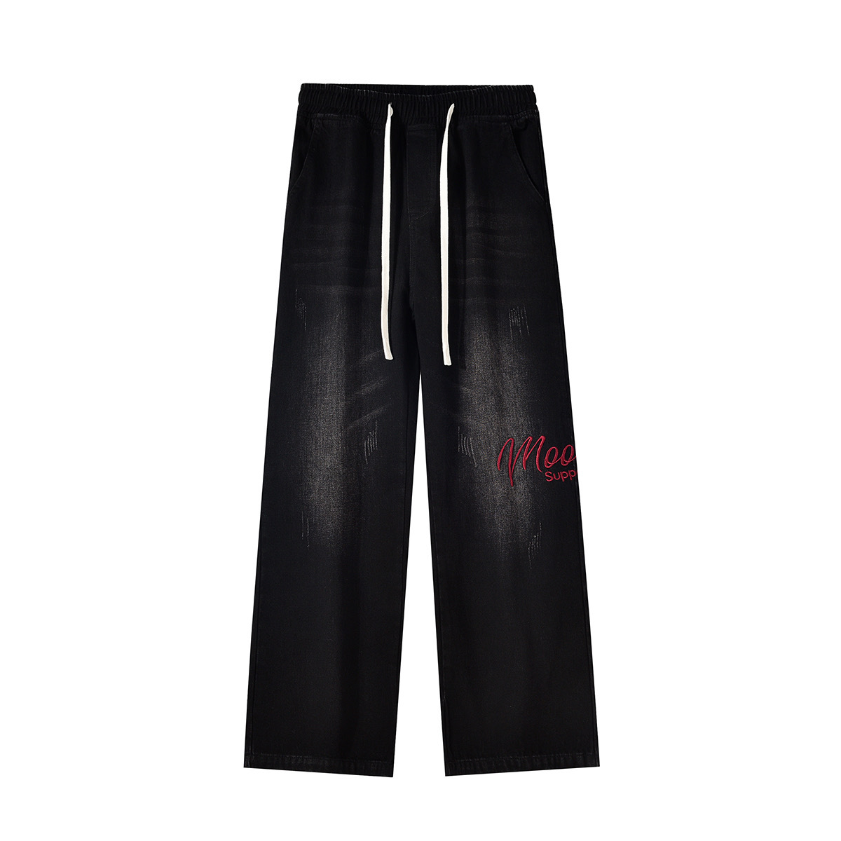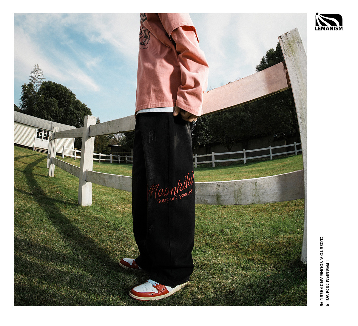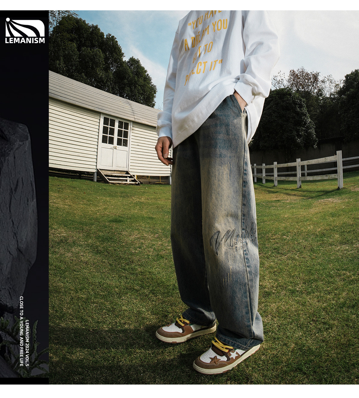 LEMANISM 刺繡字母 刷色 牛仔褲