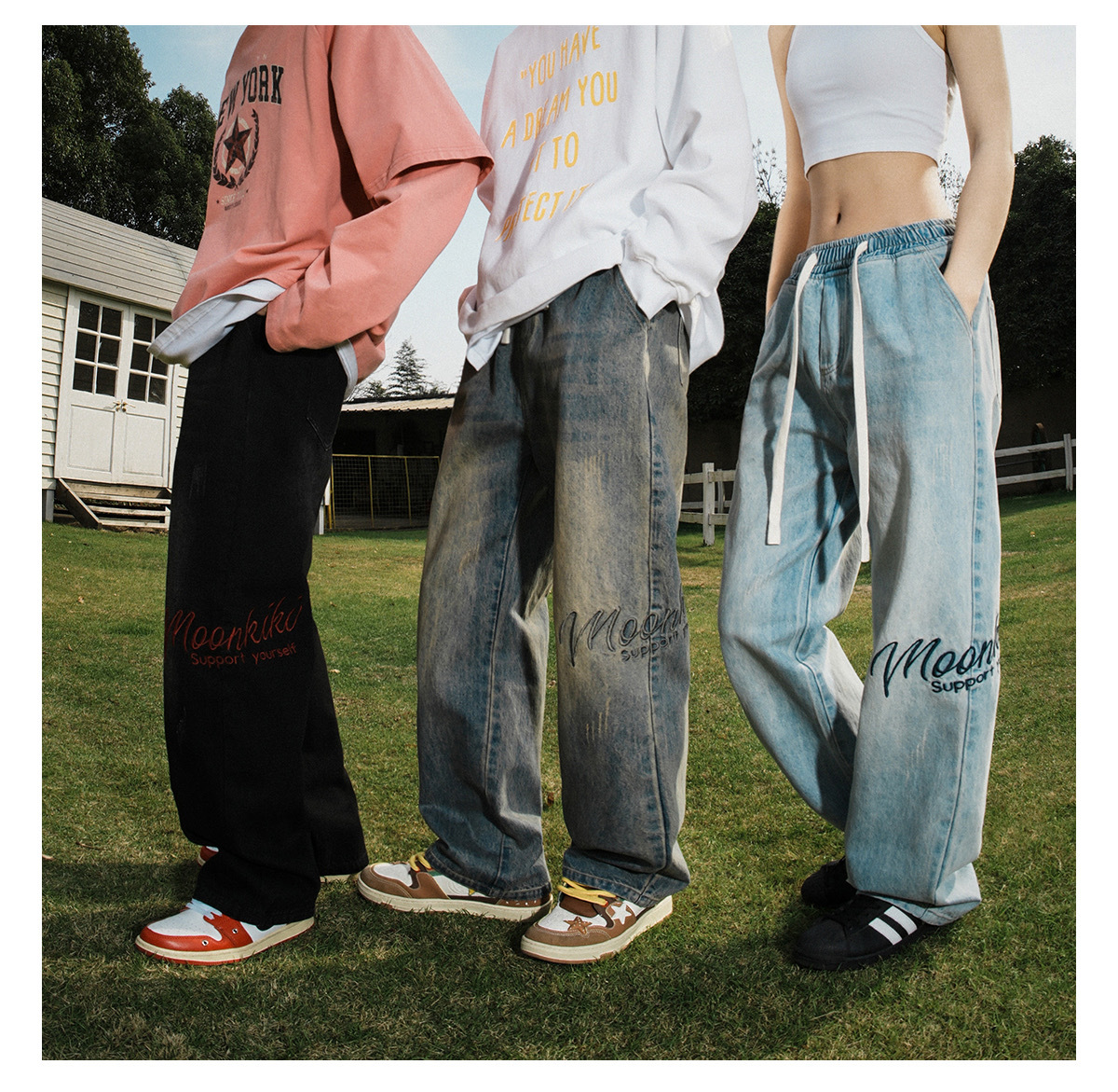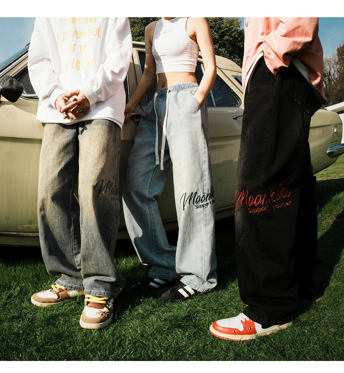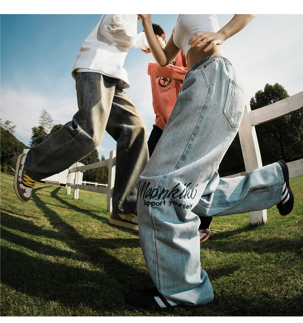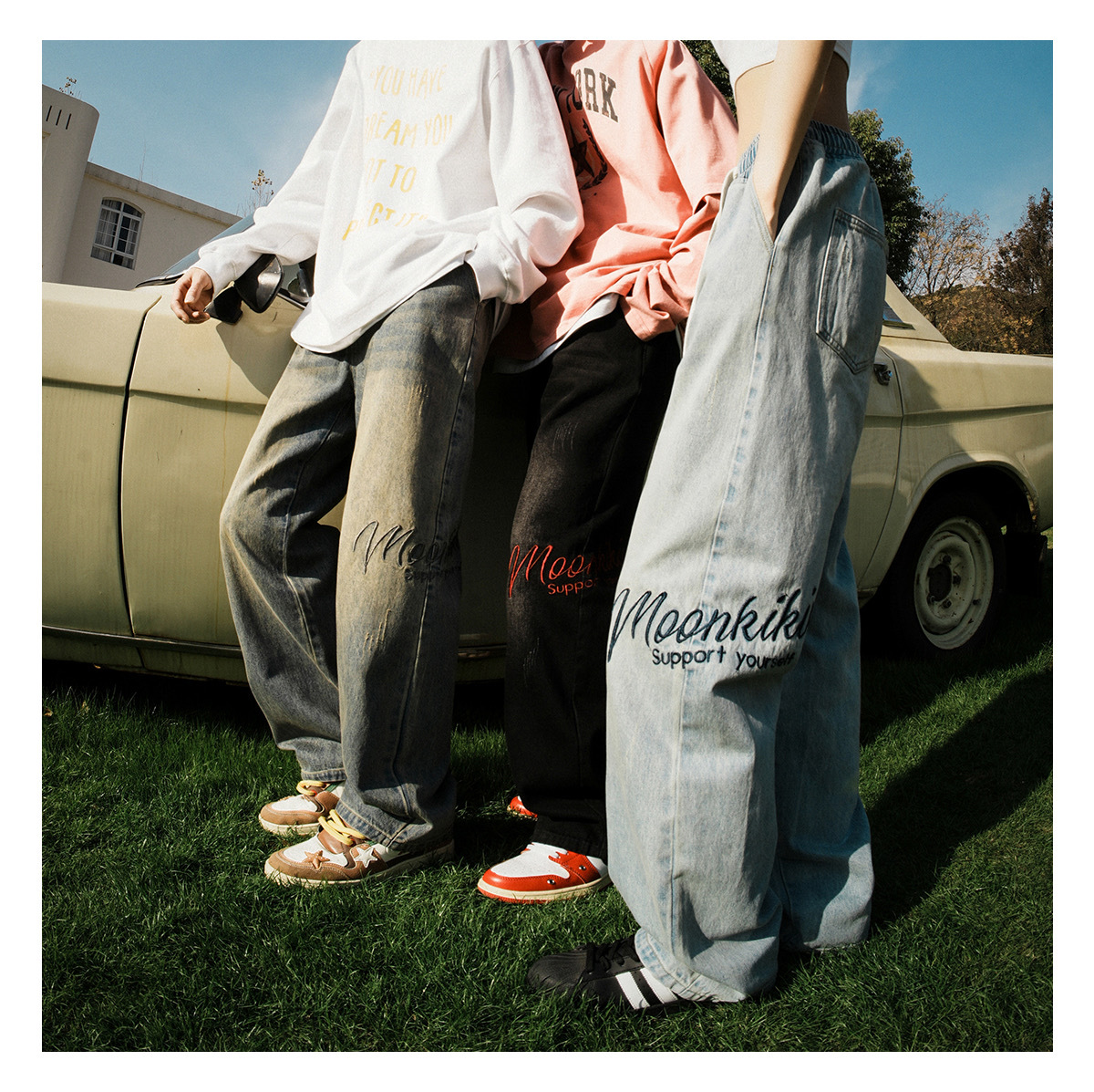 LEMANISM 刺繡字母 刷色 牛仔褲