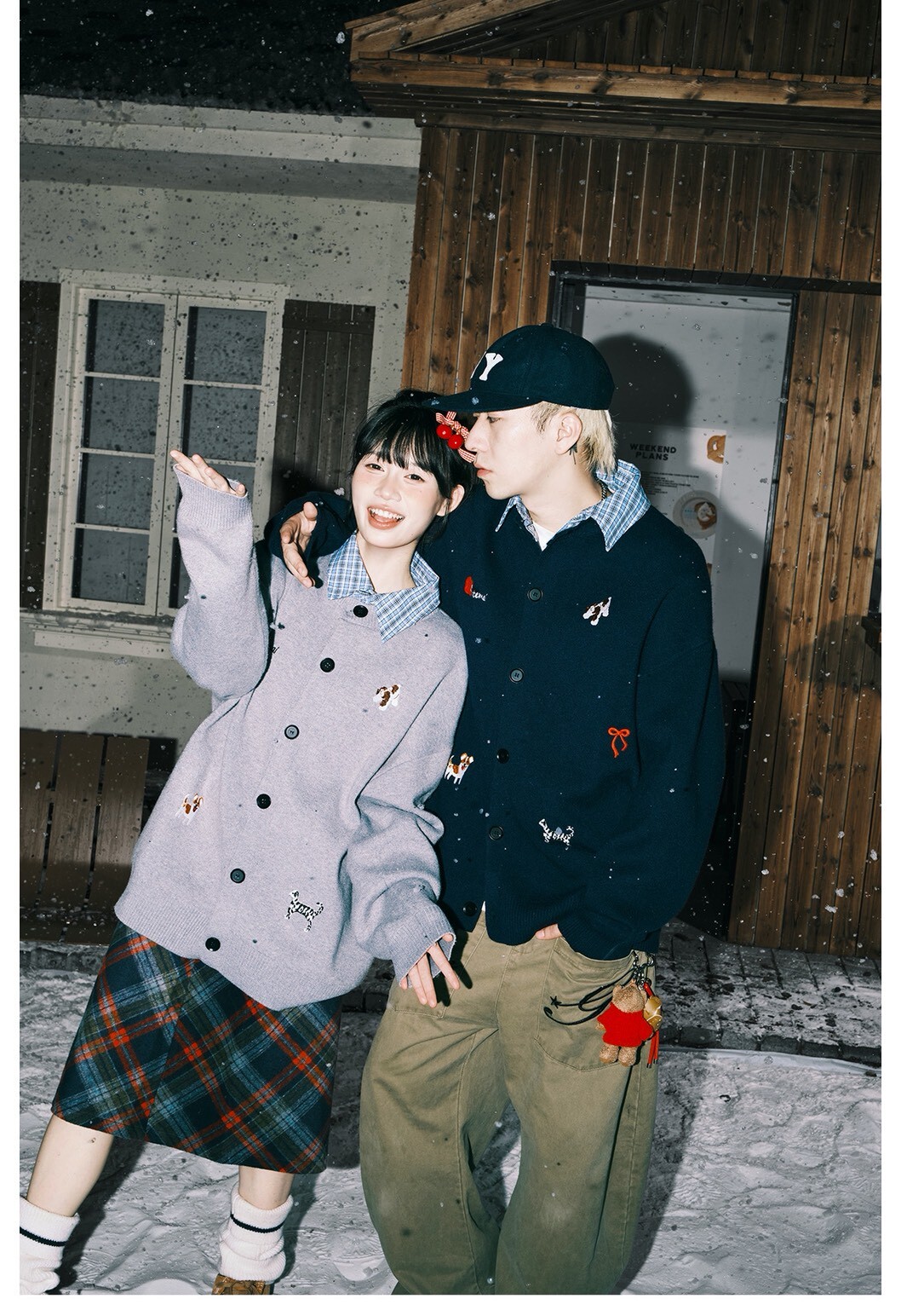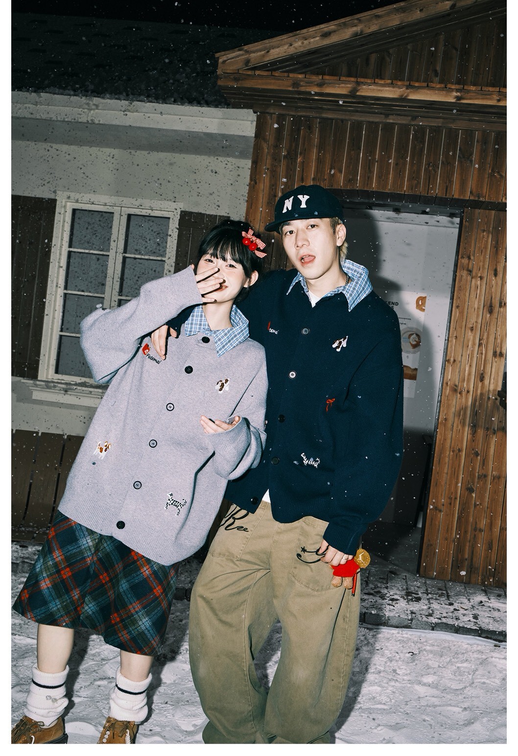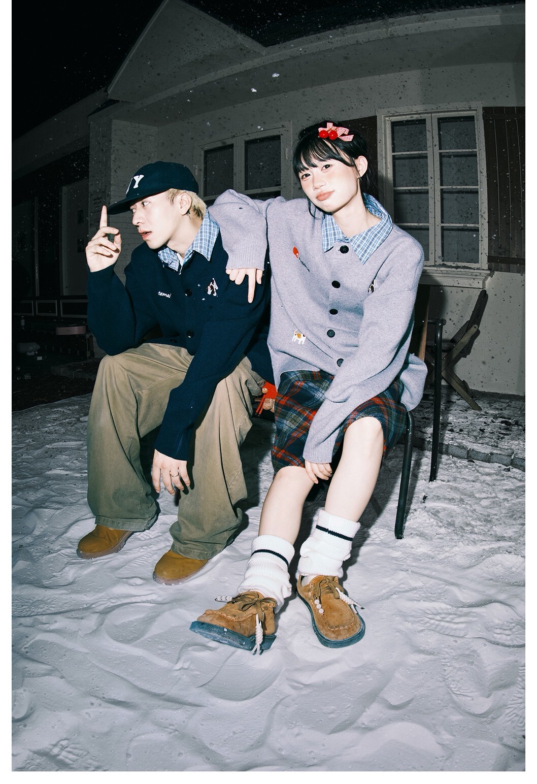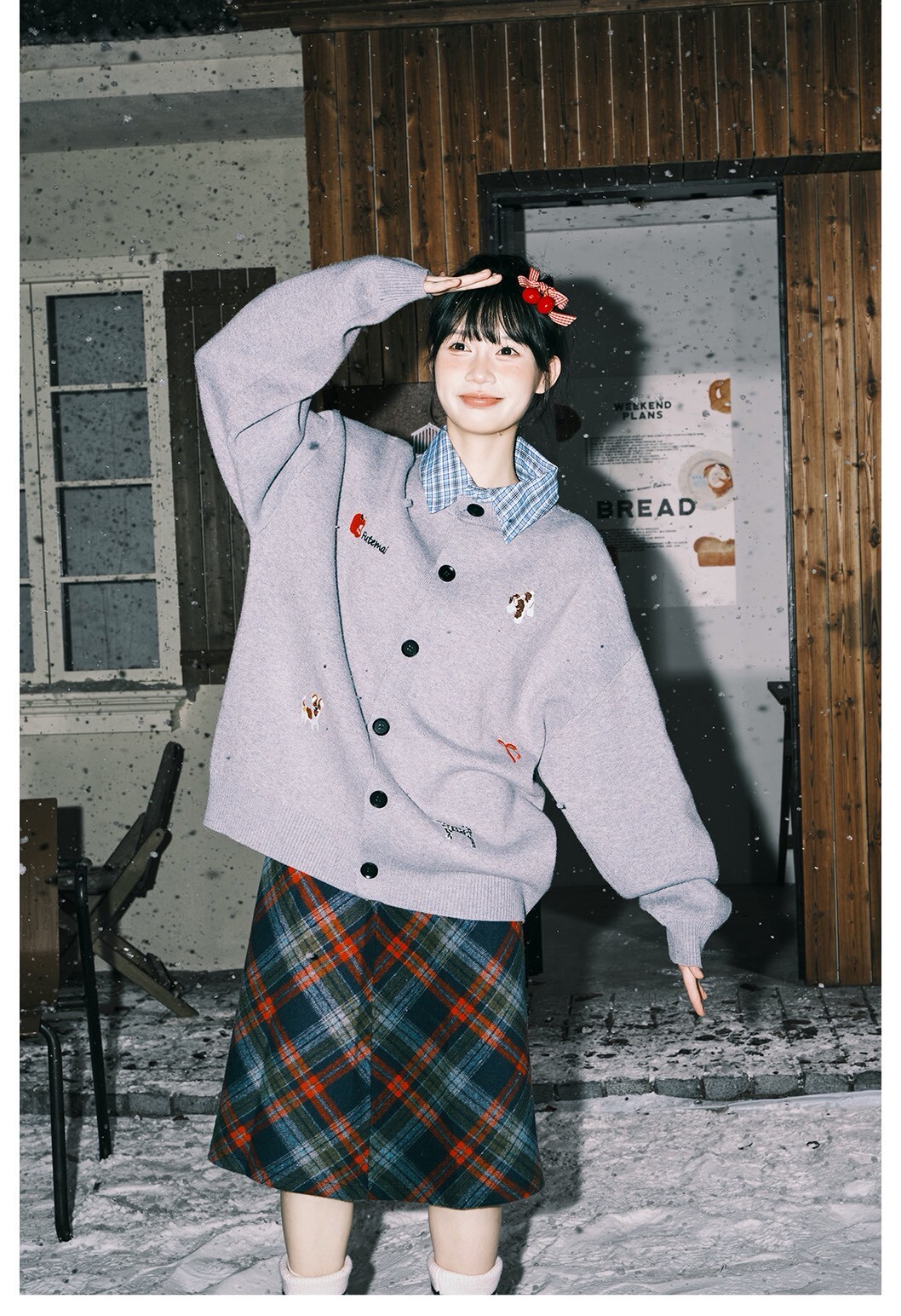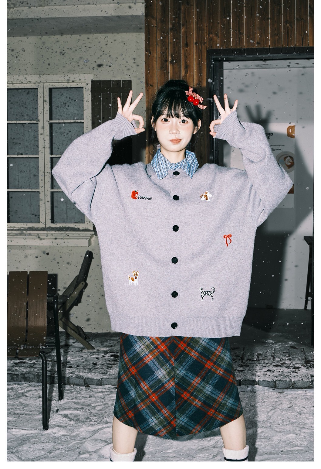 LEMANISM 假兩件 格子拼接 開襟衫